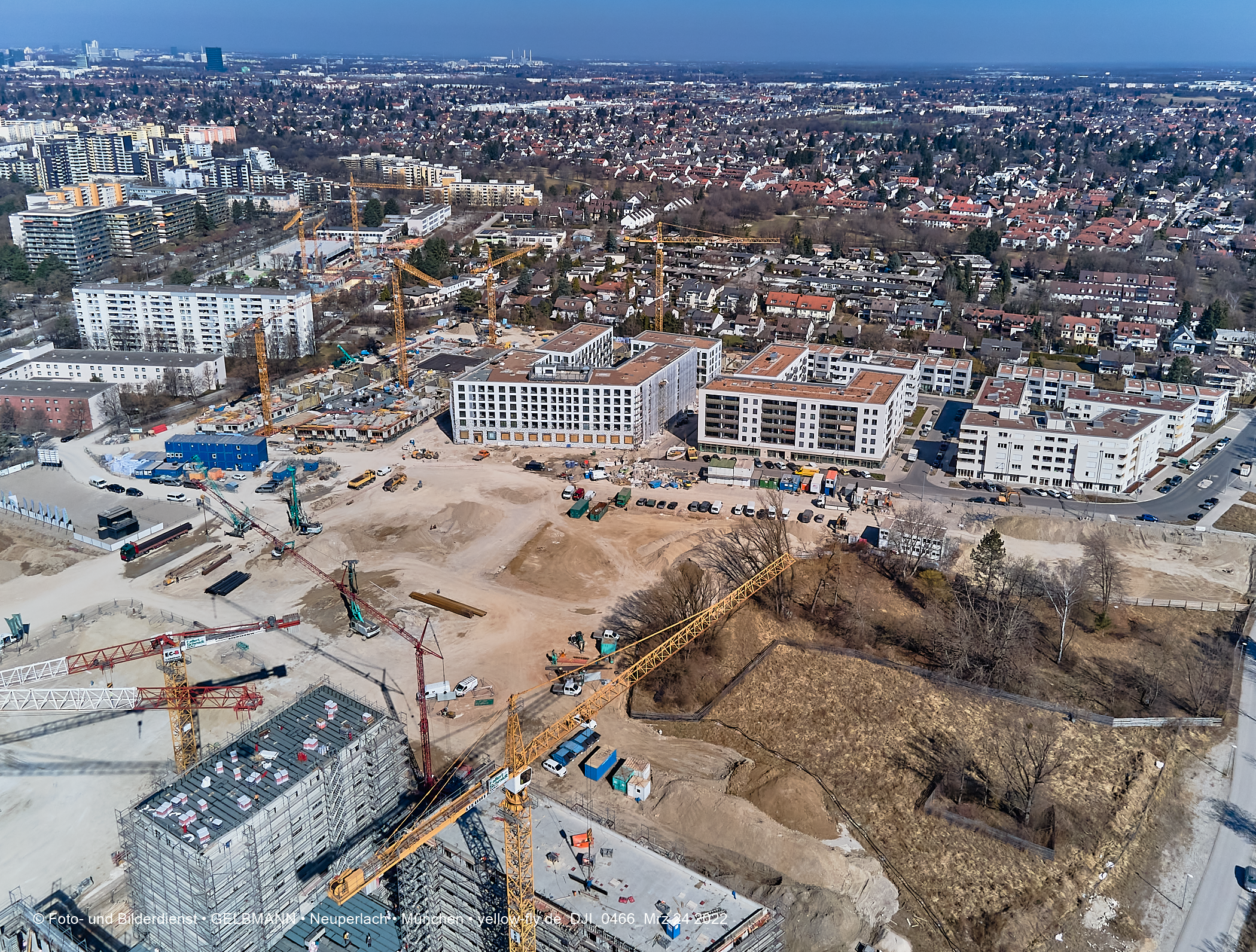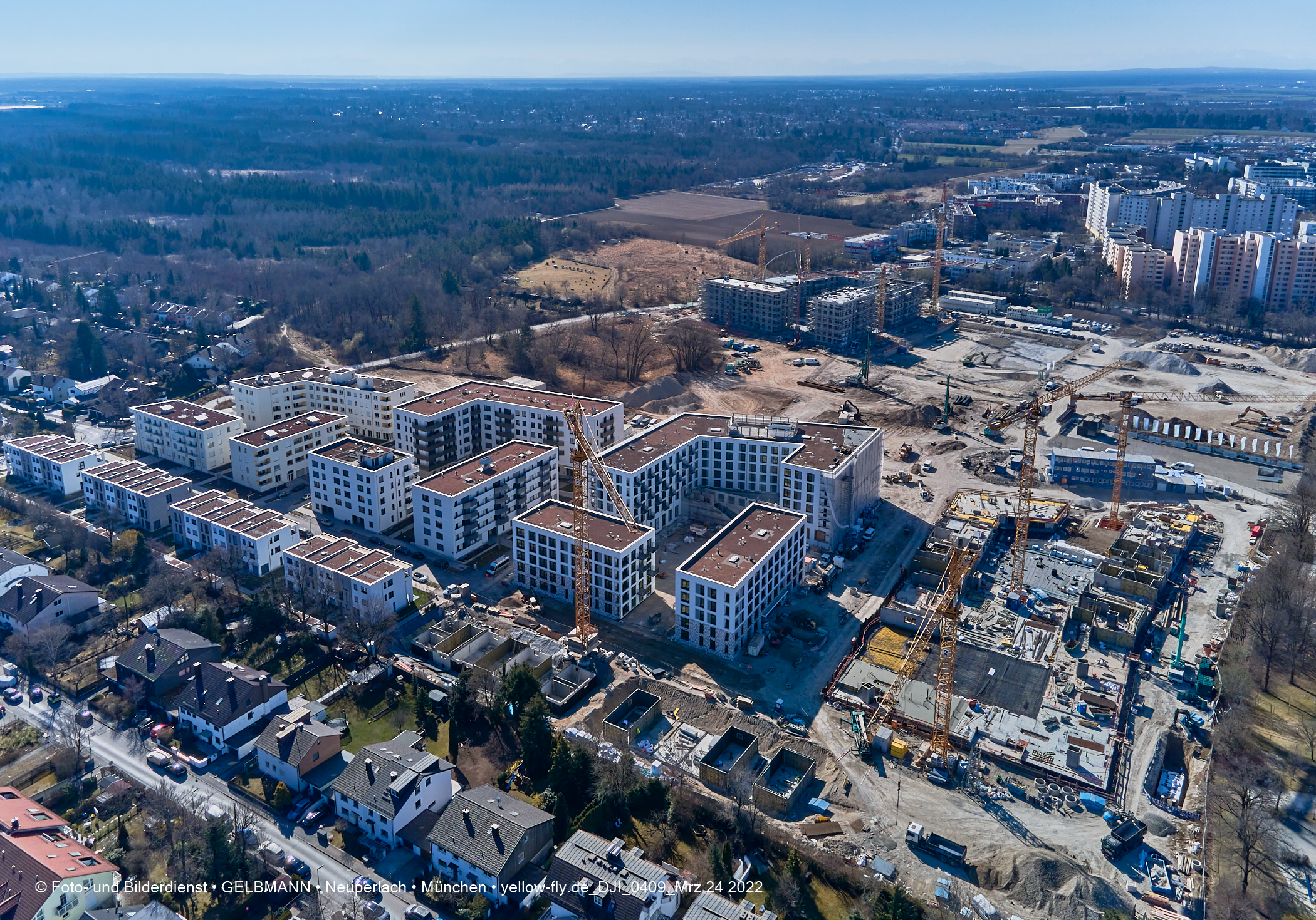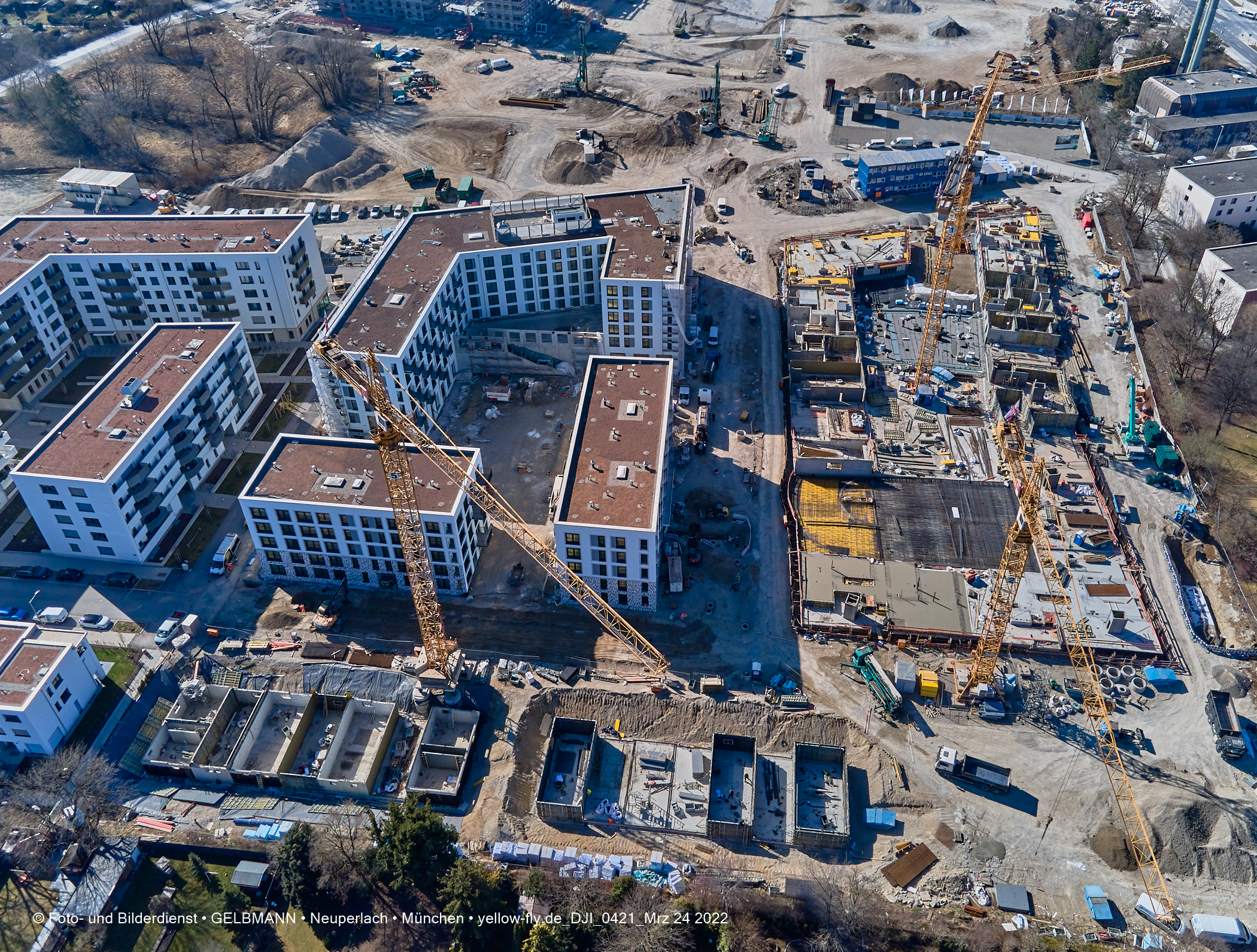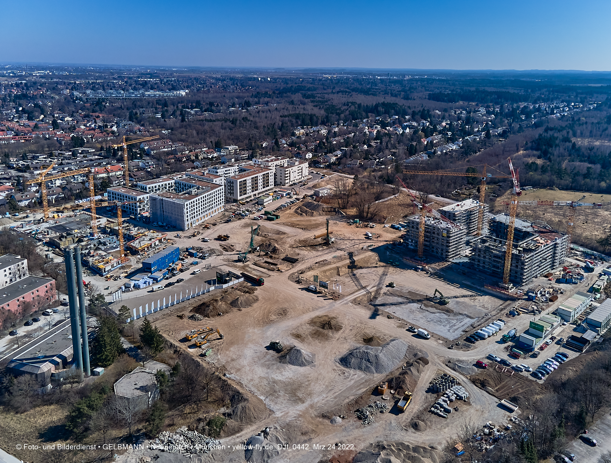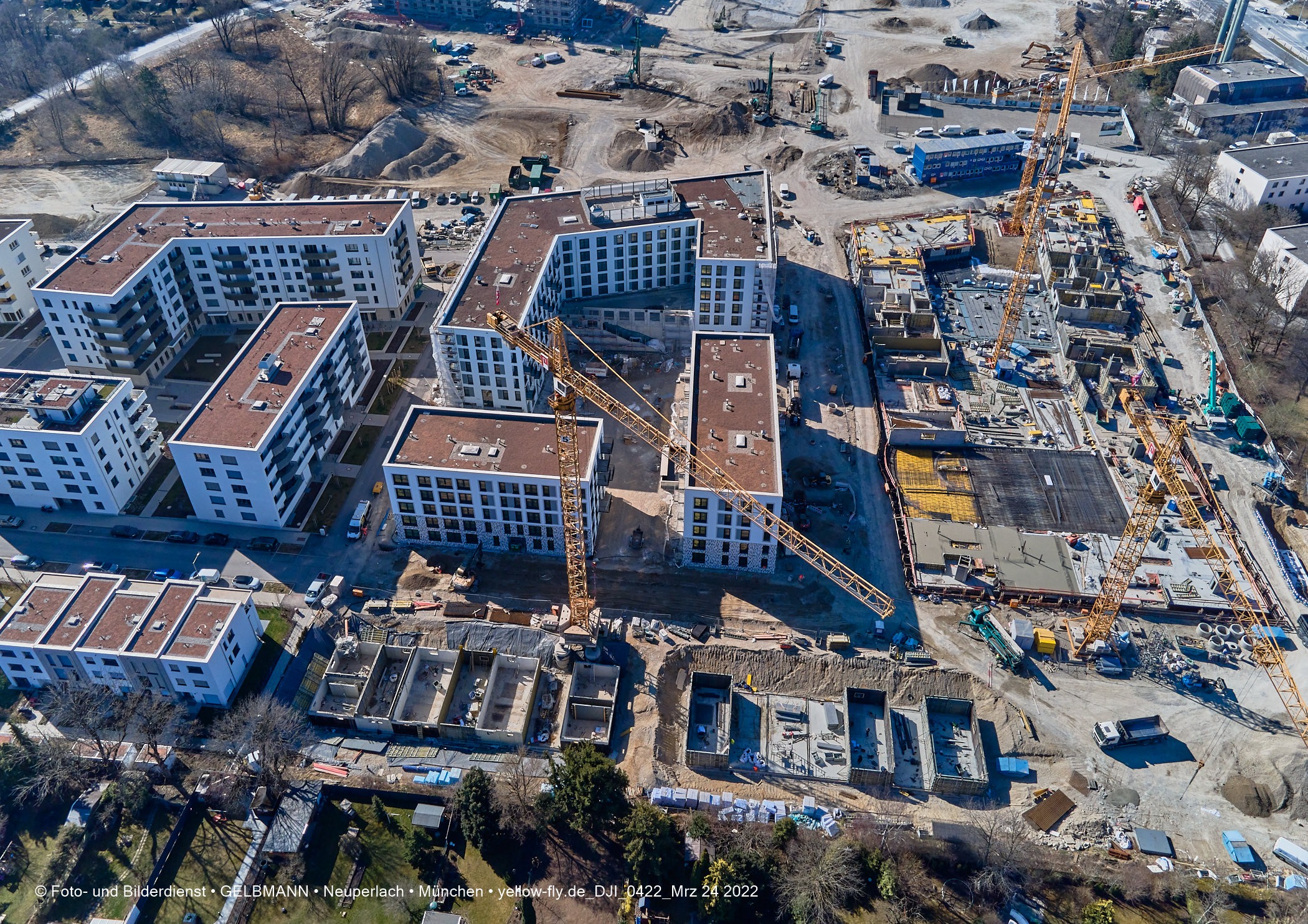 24.03.2022 - Die Grundmauern zu den „Townhouses“ im Alexisquartier sind schon weit in die Höhe gewachsen. Dasselbe gilt auch für den Bauabschnitt „Das Duett“. Auch hier ist man schon im 1. Stockwerk angelangt. Gerade bei schönem Flugwetter ist die gute und grüne Lage des Alexisquartiers gut zu sehn.