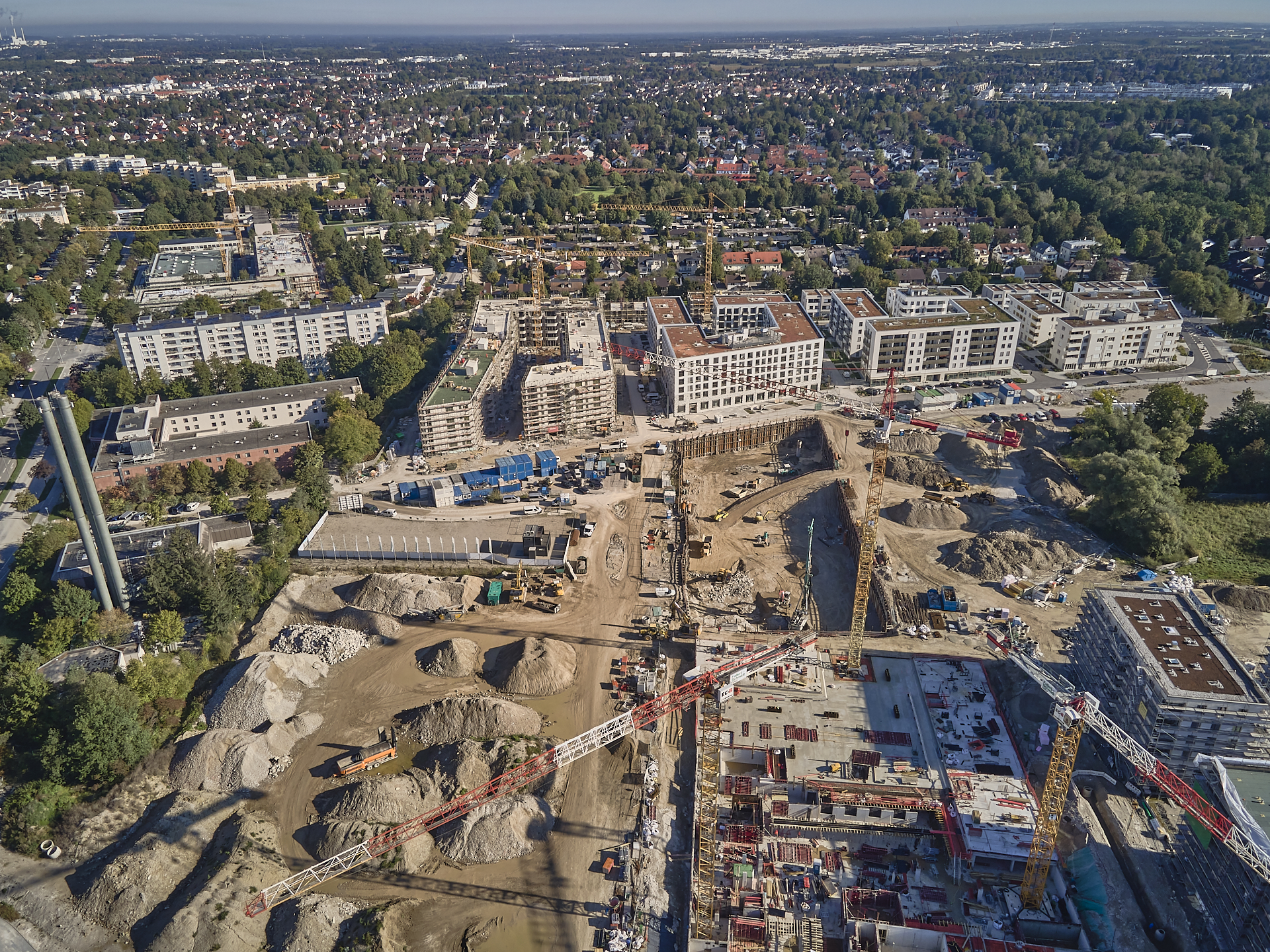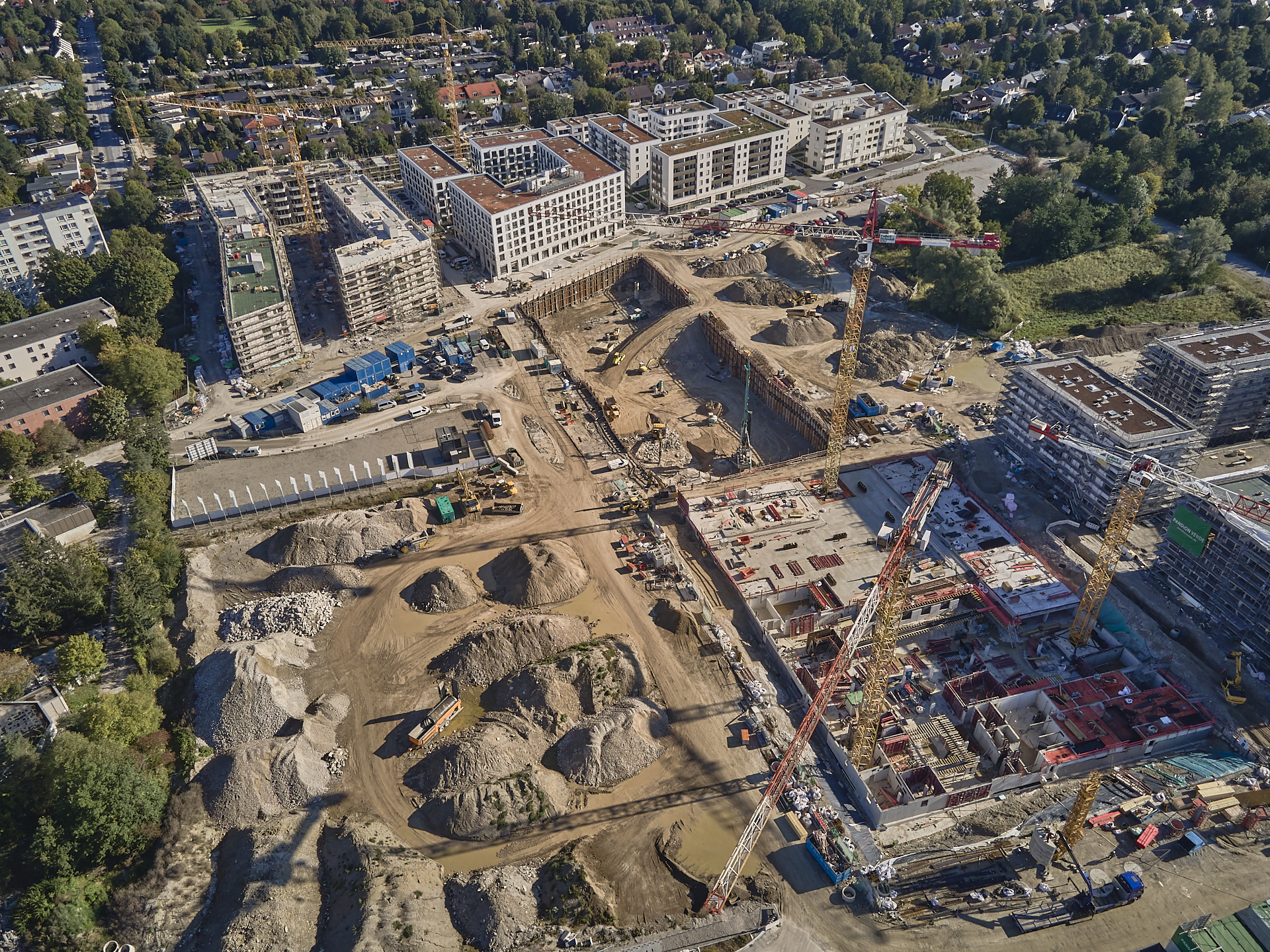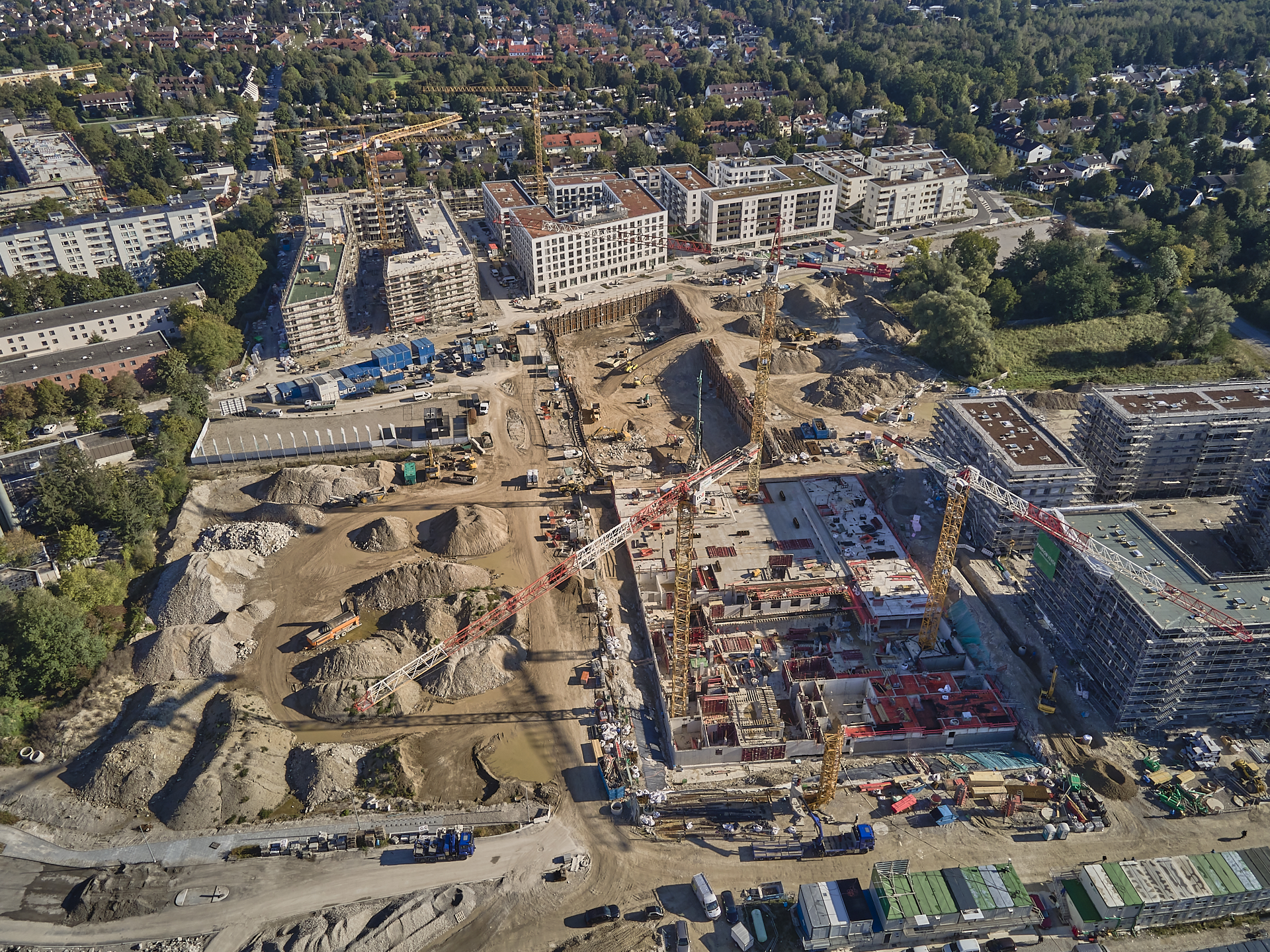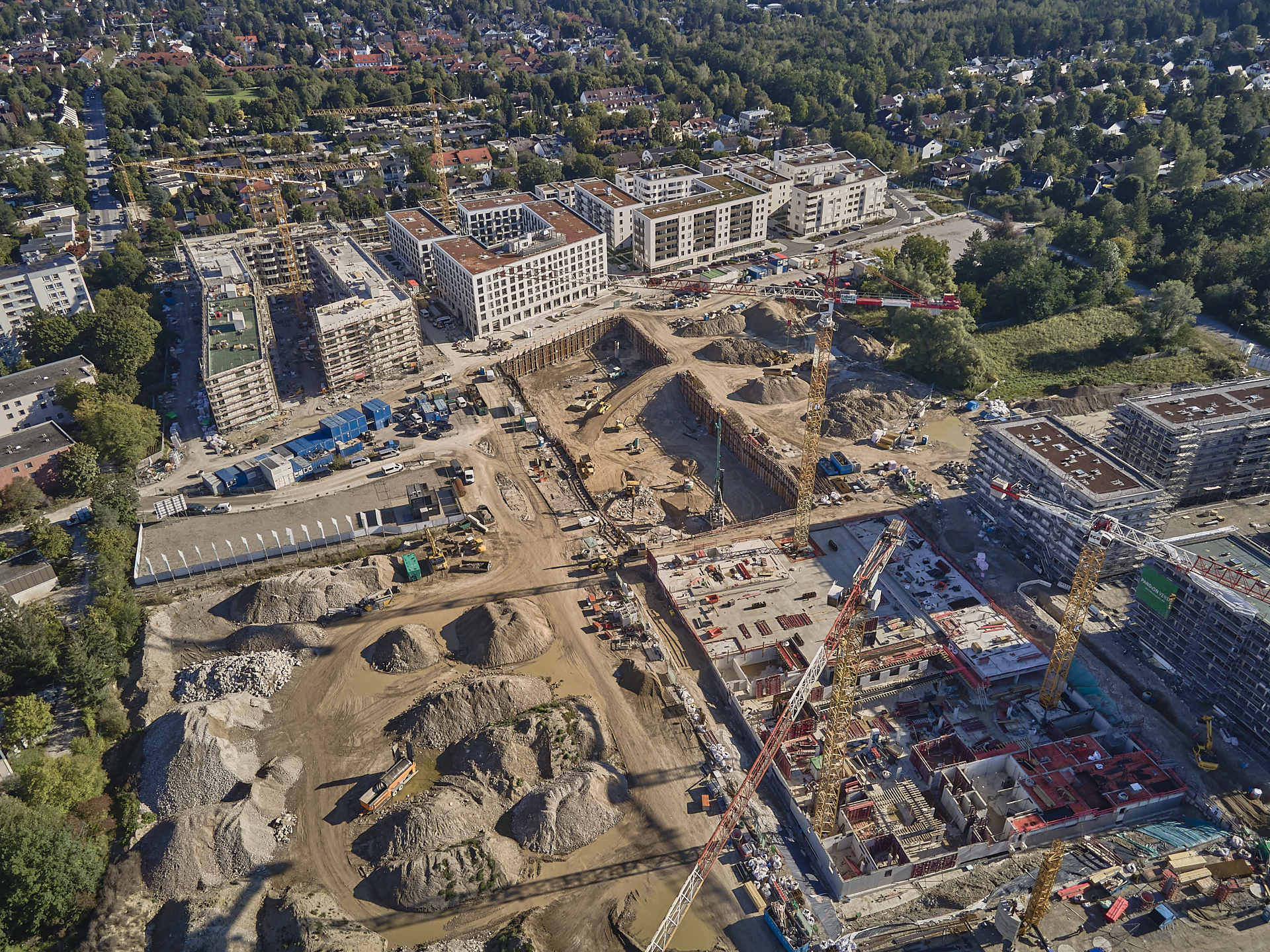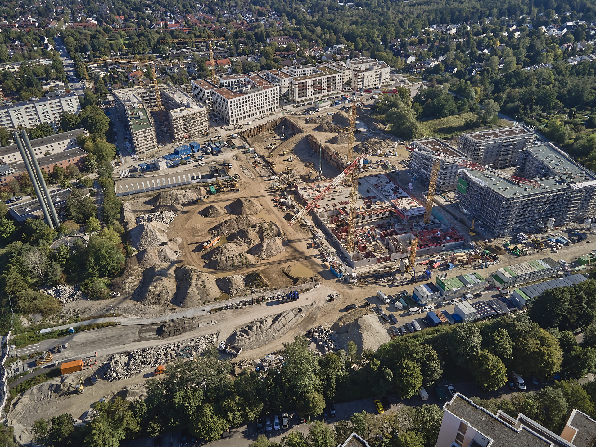 Aktuelle Fotos der Baustelle Alexisquartier des Bauträgers DEMOS und von Pandion Verde.