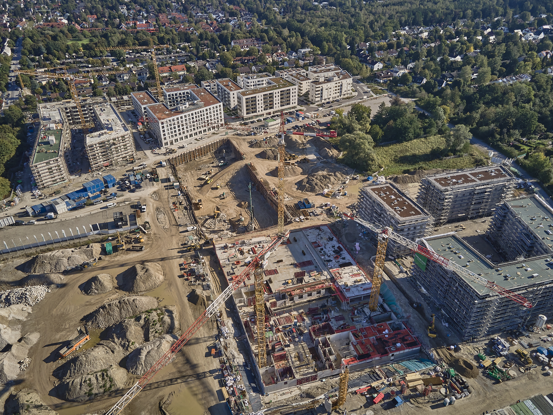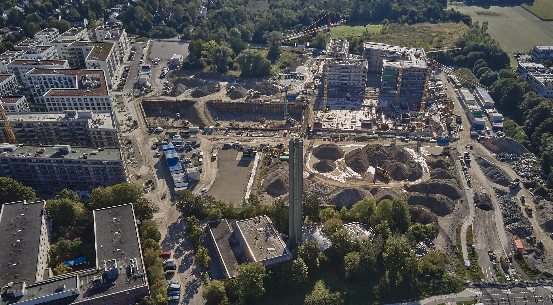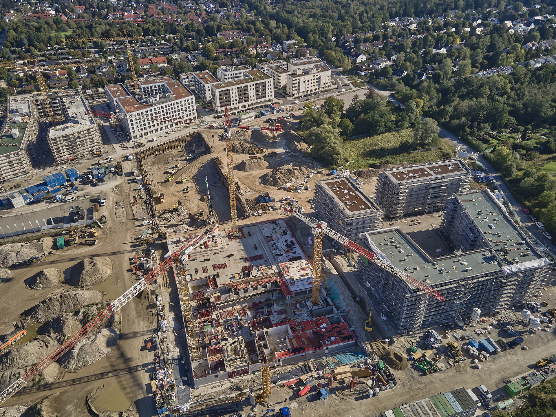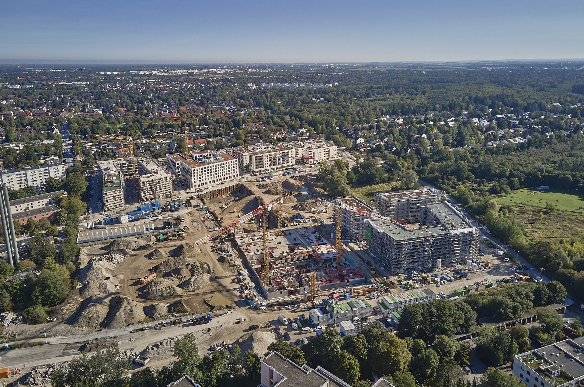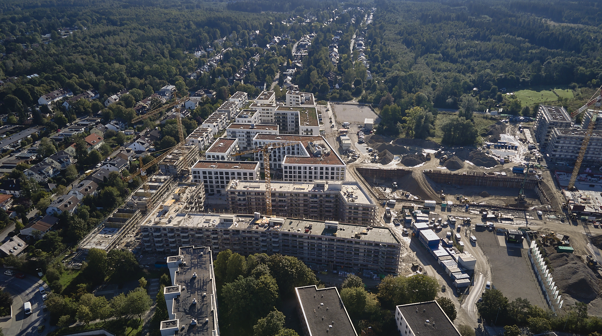 Aktuelle Fotos der Baustelle Alexisquartier des Bauträgers DEMOS und von Pandion Verde.