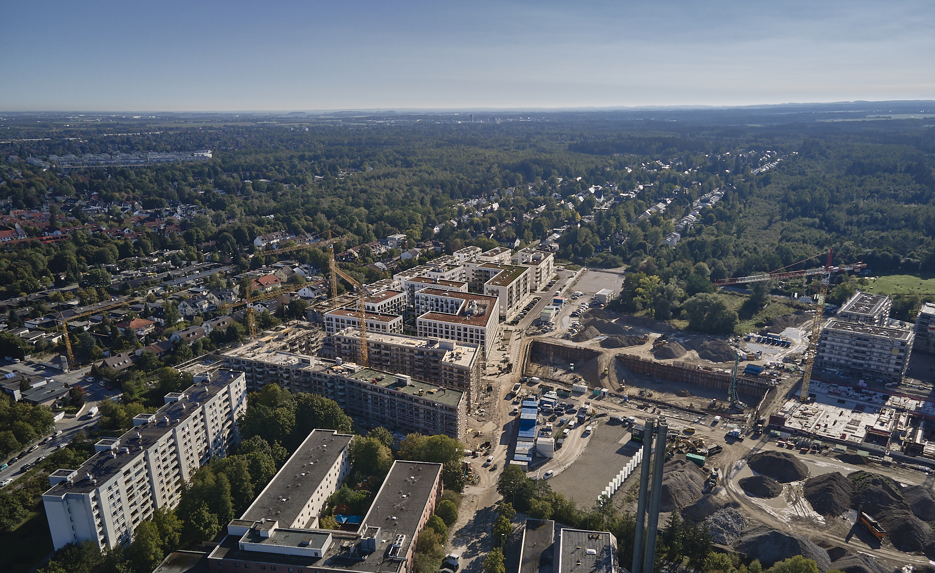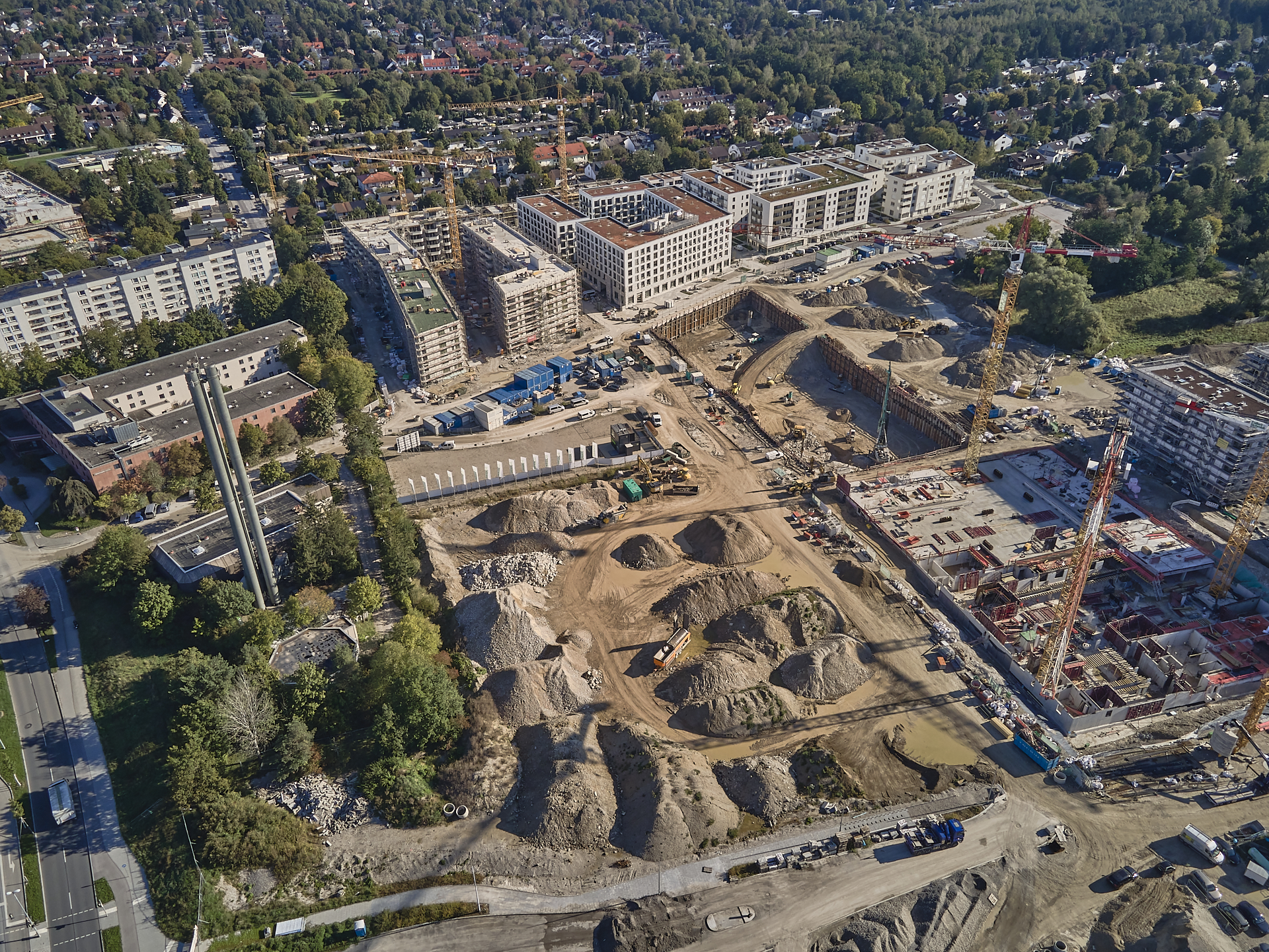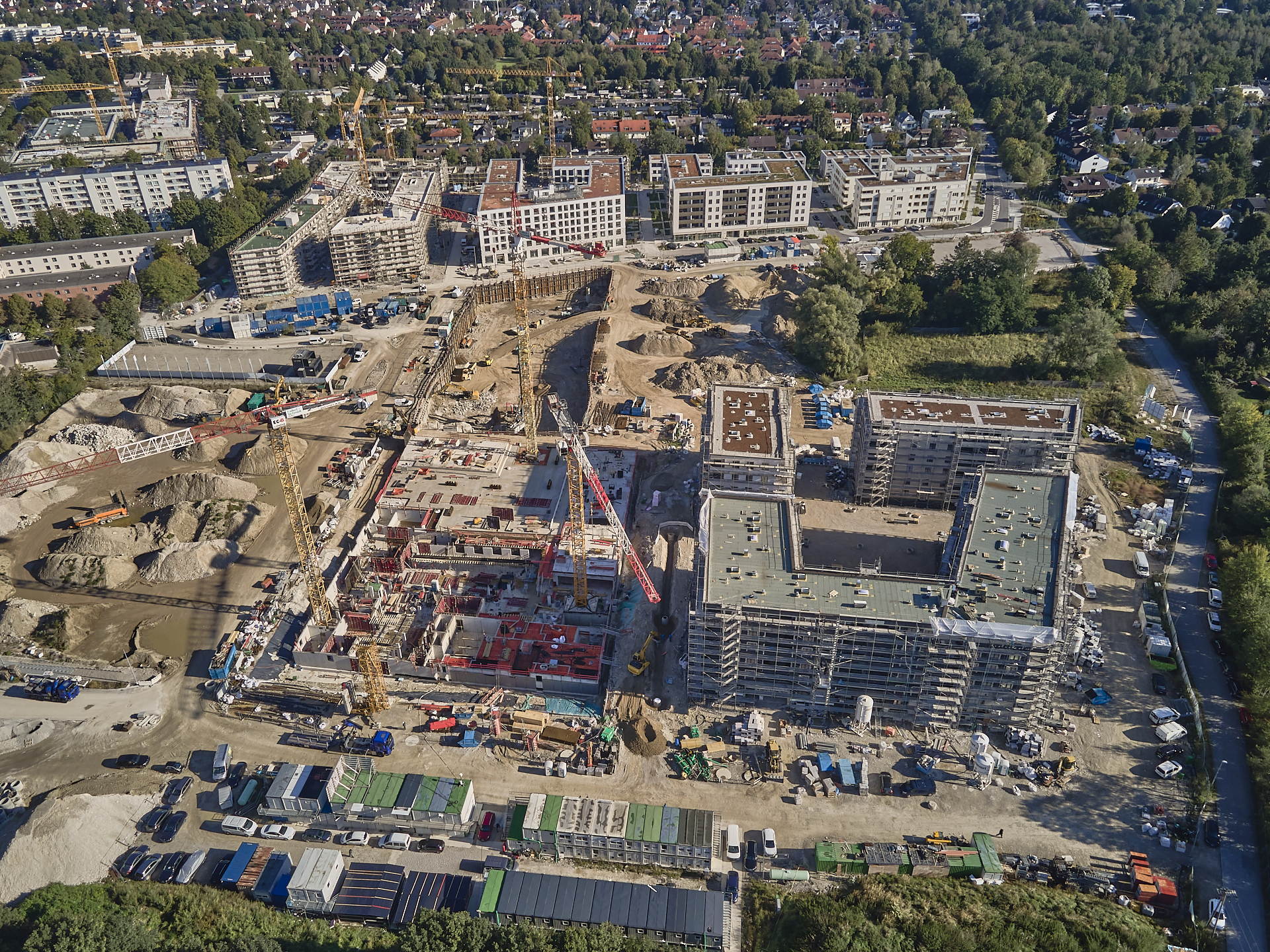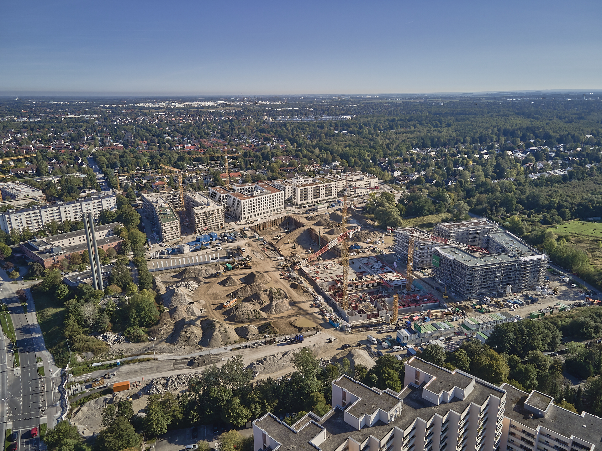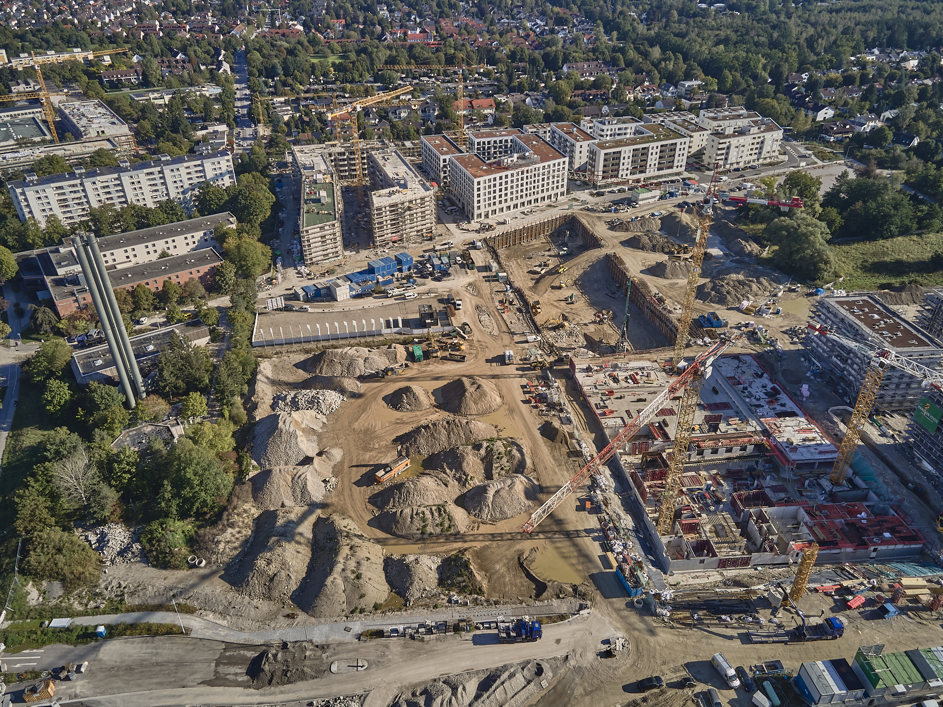 Aktuelle Fotos der Baustelle Alexisquartier des Bauträgers DEMOS und von Pandion Verde.