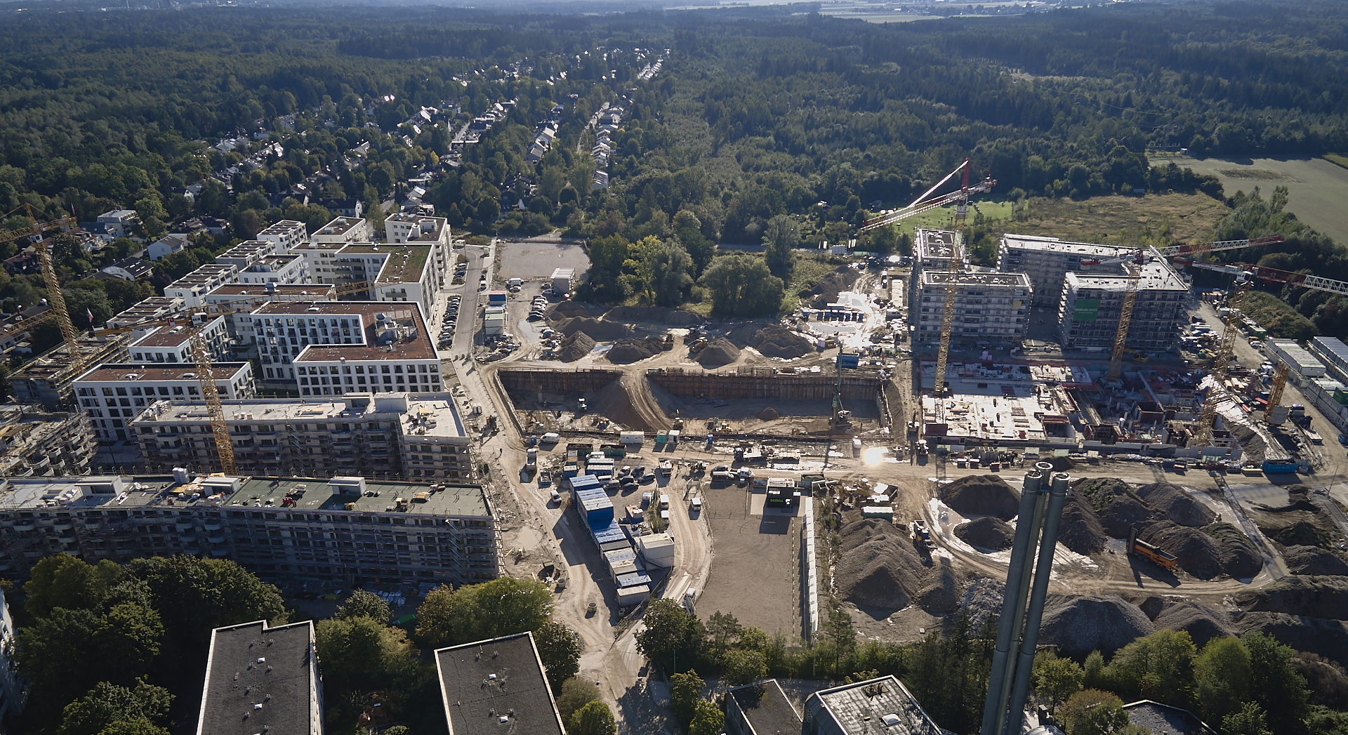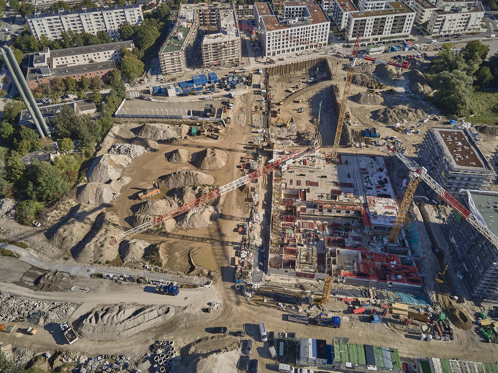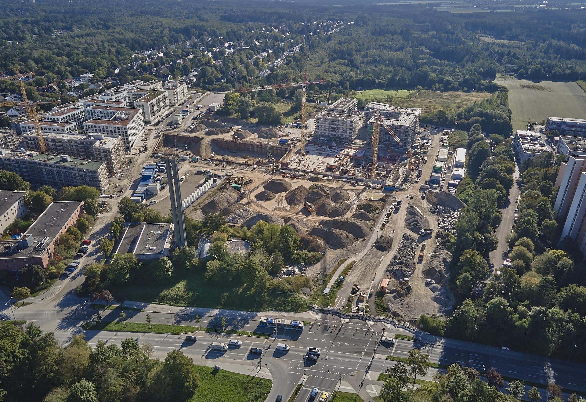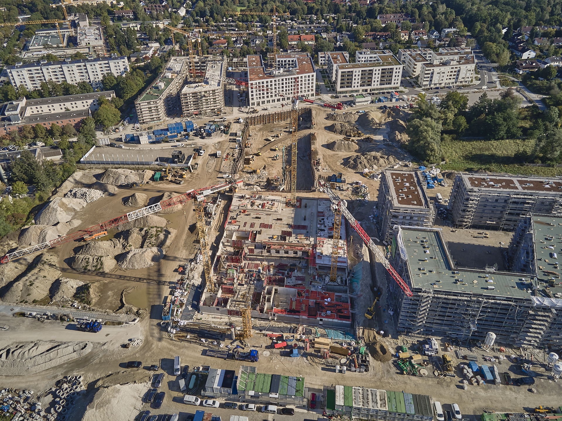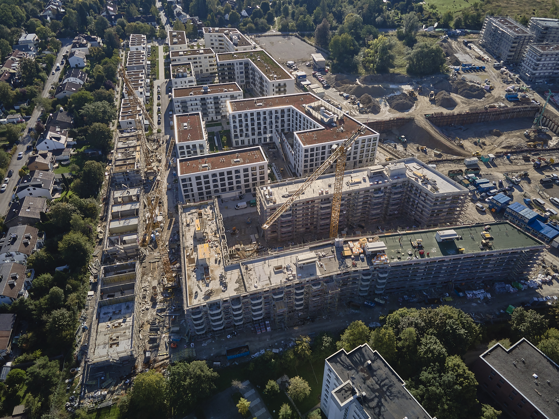 Aktuelle Fotos der Baustelle Alexisquartier des Bauträgers DEMOS und von Pandion Verde.