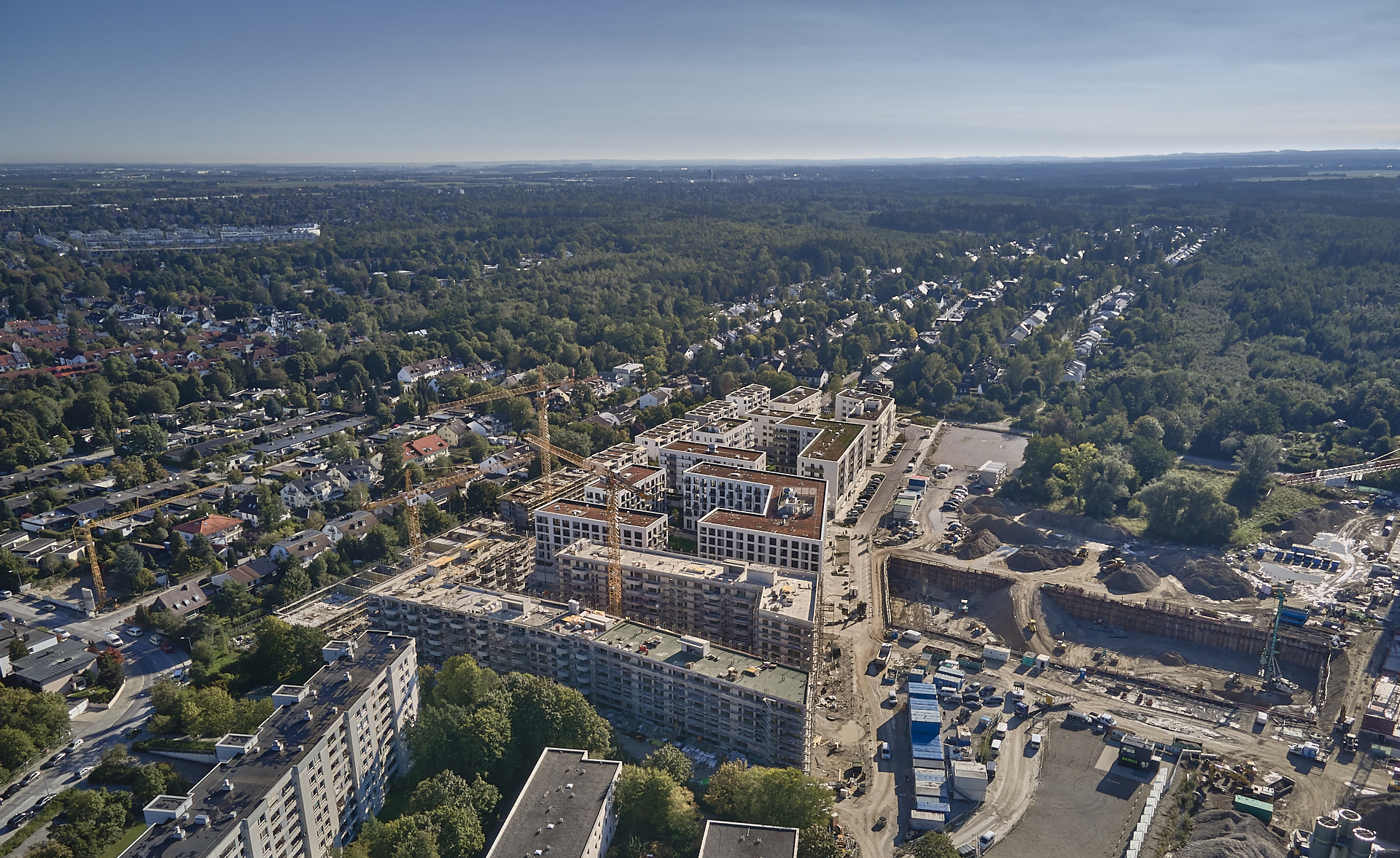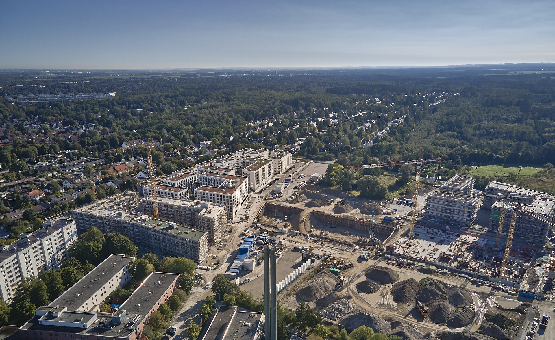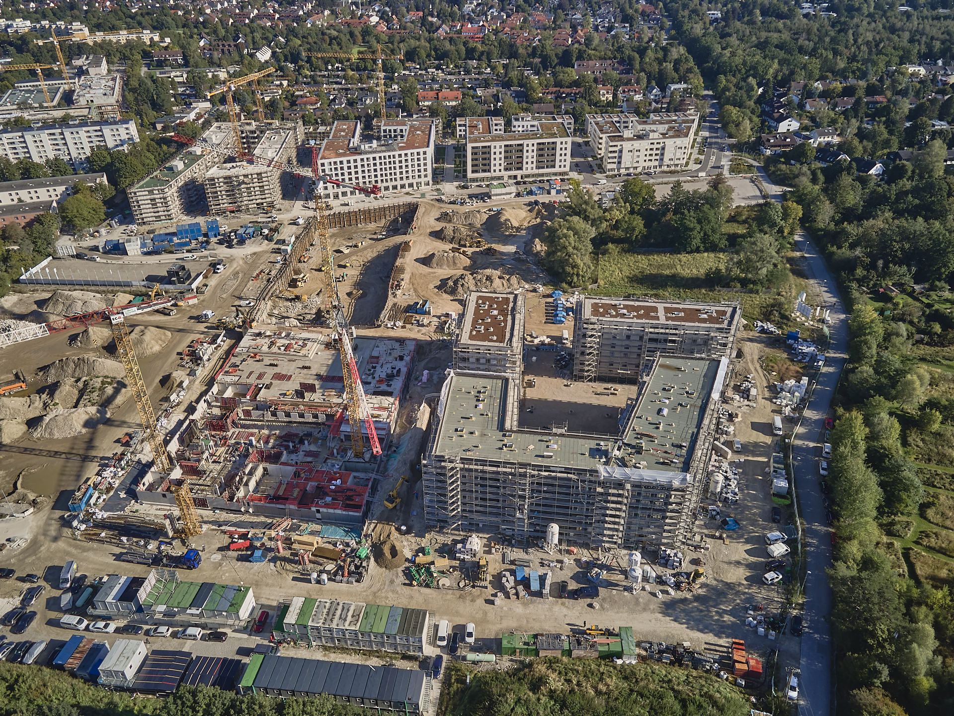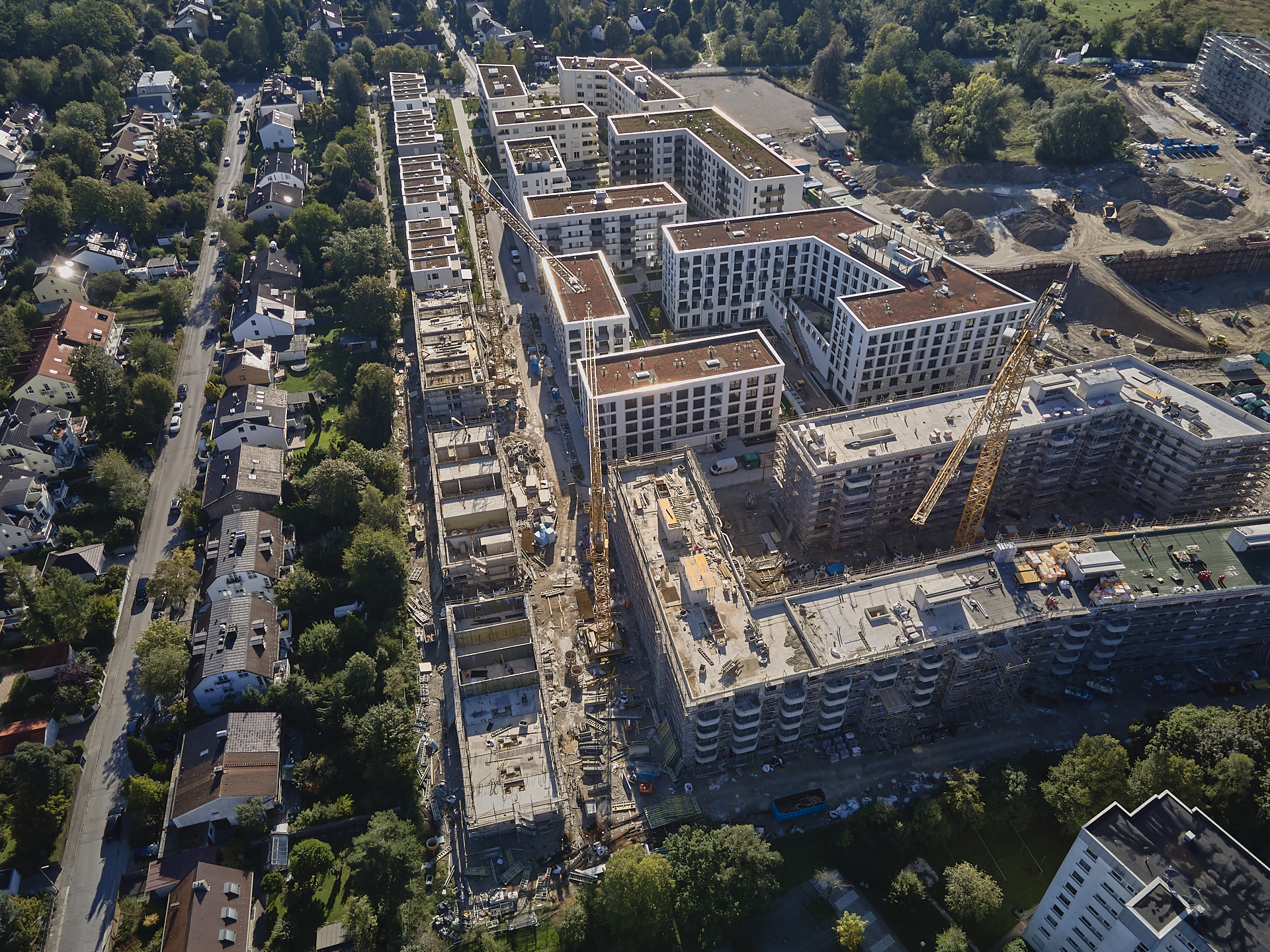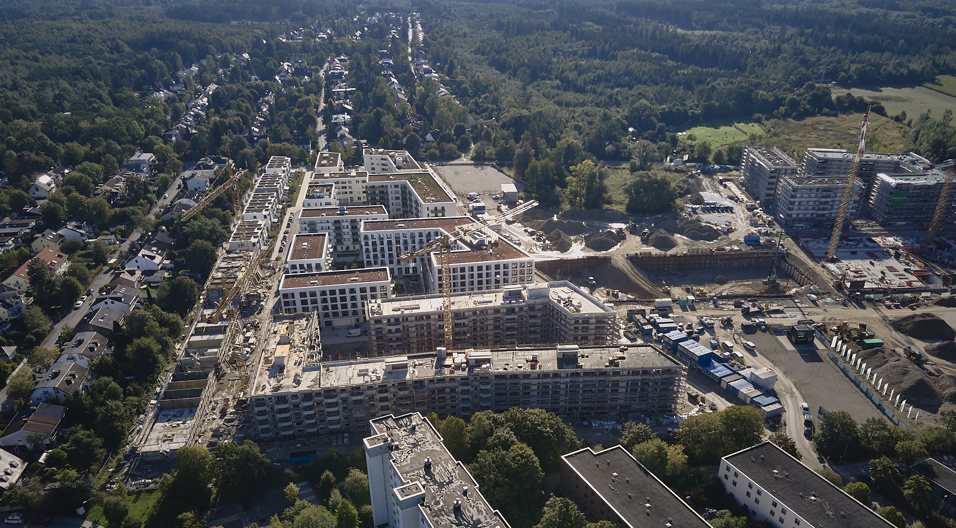 Aktuelle Fotos der Baustelle Alexisquartier des Bauträgers DEMOS und von Pandion Verde.