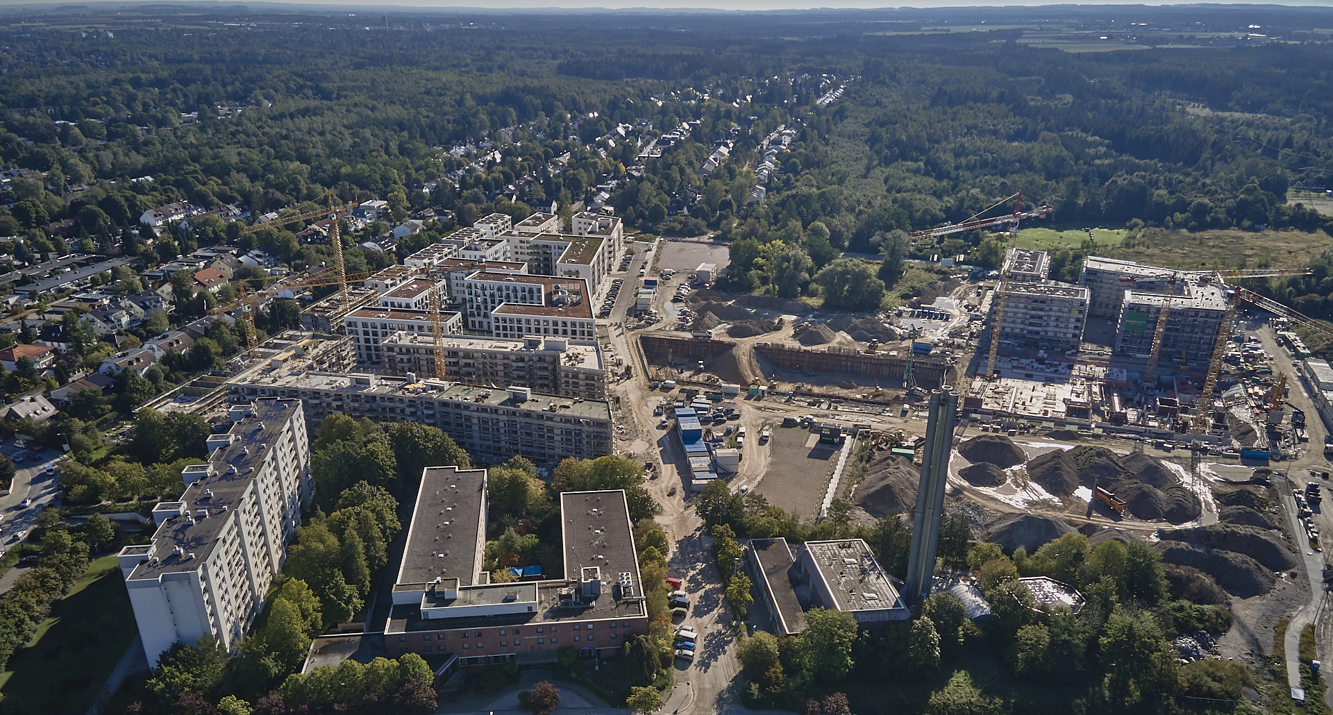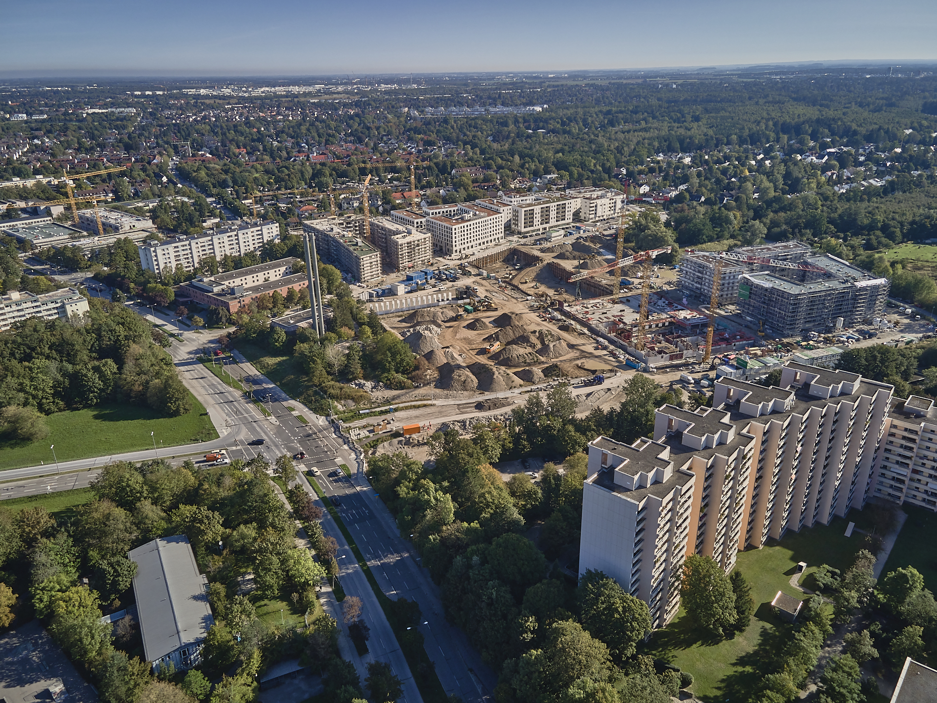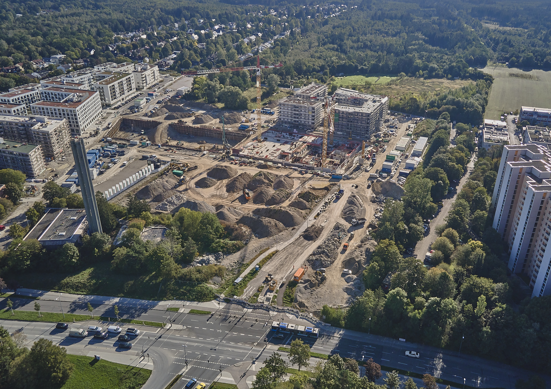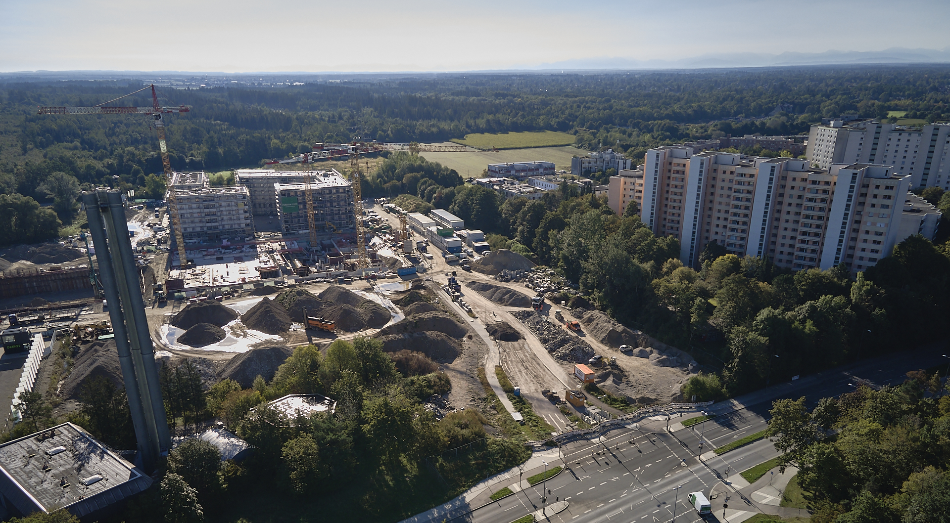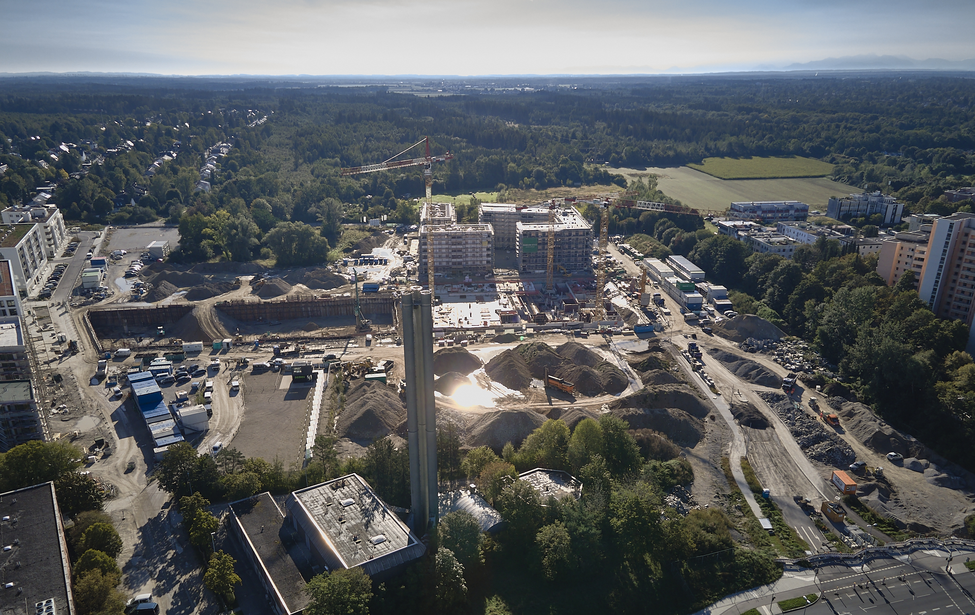 Aktuelle Fotos der Baustelle Alexisquartier des Bauträgers DEMOS und von Pandion Verde.