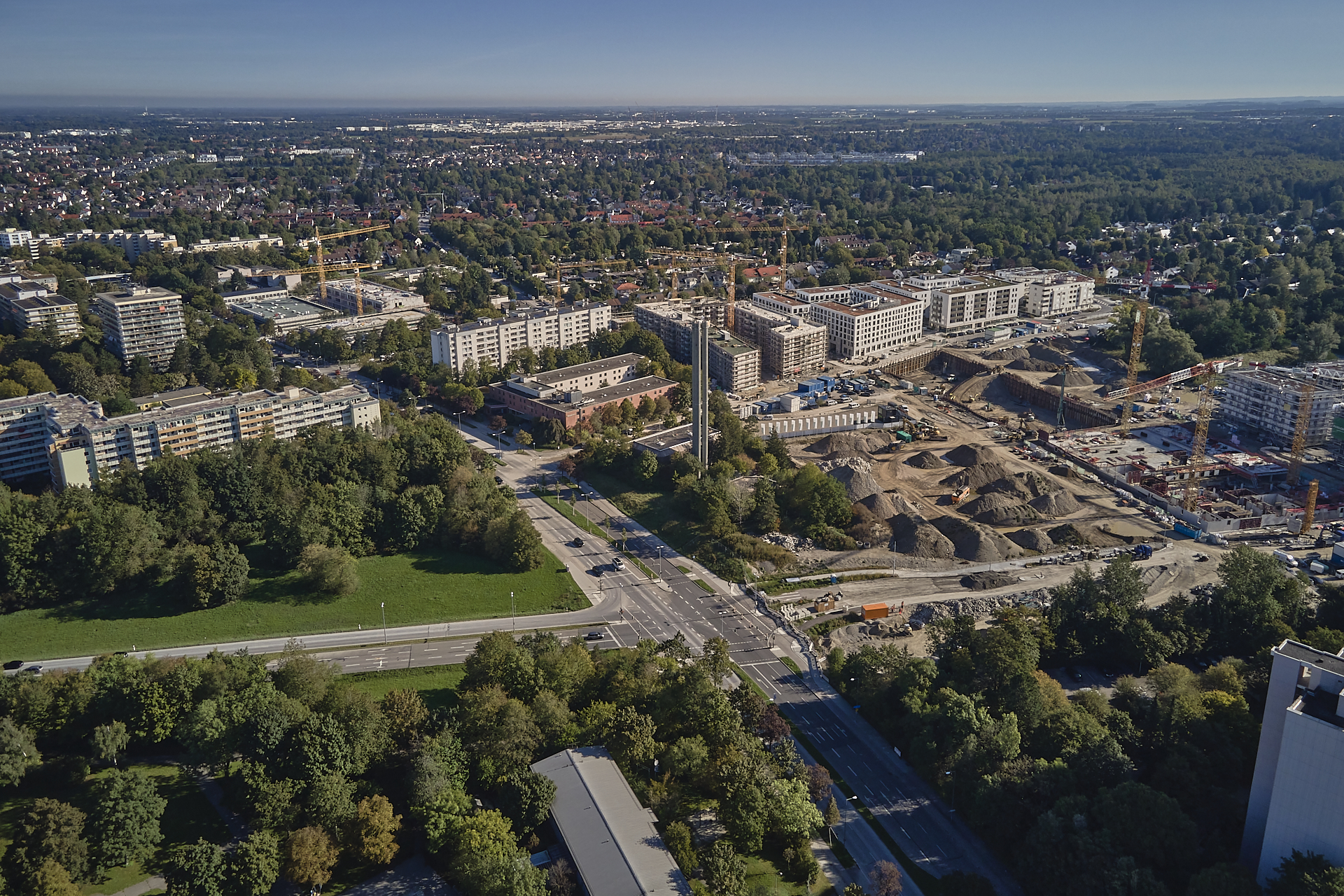 Im Bauaabschnitt Alexisquartier werden die Häuser immer höher. Das Duett ist Rohbaus fast fertig. In der Baugrube zum Hochhaus “ParkSide”, wird noch gearbeitet.