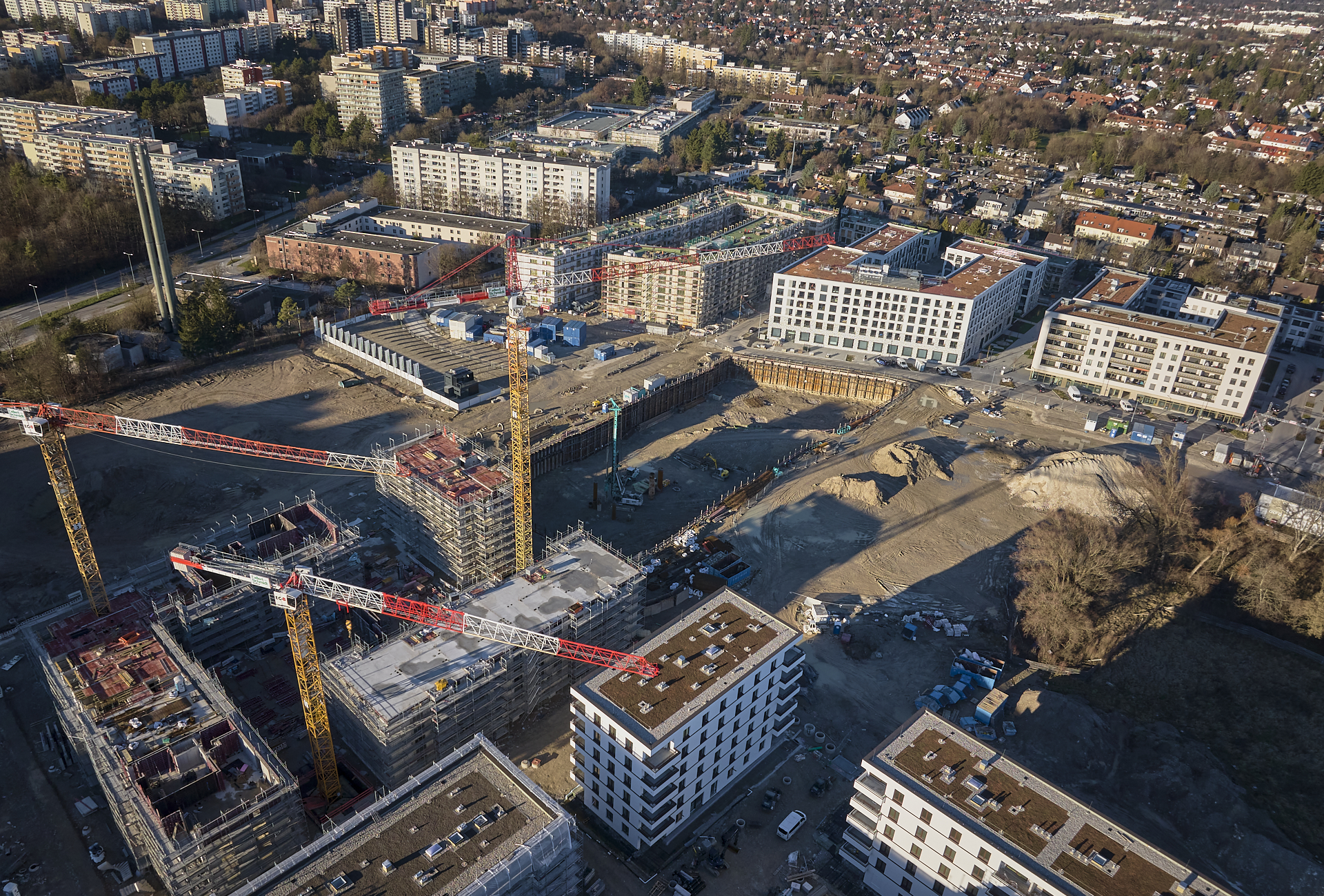 Aktuelle Fotos der Baustelle Alexisquartier des Bauträgers DEMOS und von Pandion Verde.