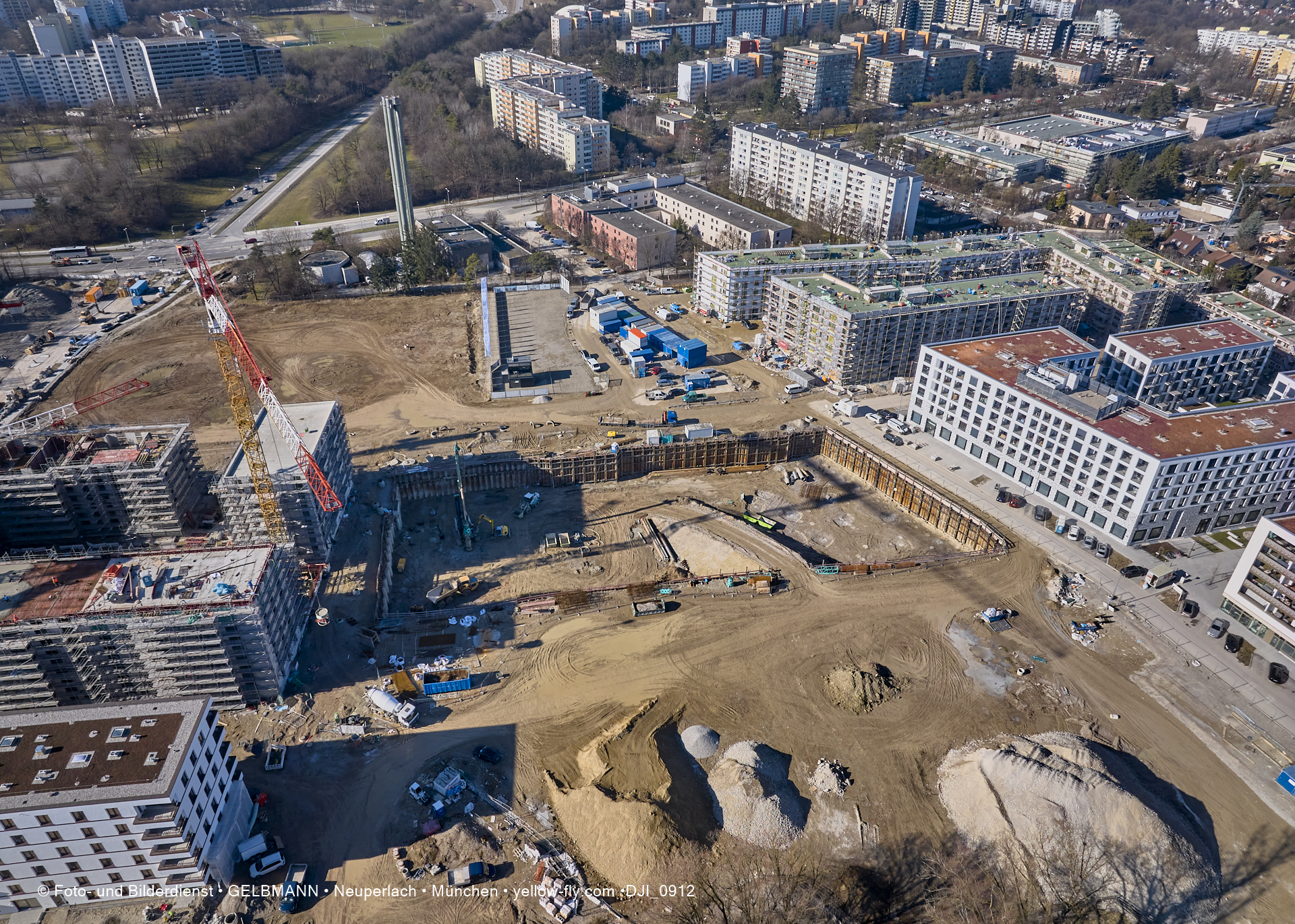 Ein weiterer Meilenstein ist erreicht. Wie man sehen kann, sind alle Bauten im Rohbau fertig. In der Baugrube zum Hochhaus “ParkSide”, wird noch gearbeitet.