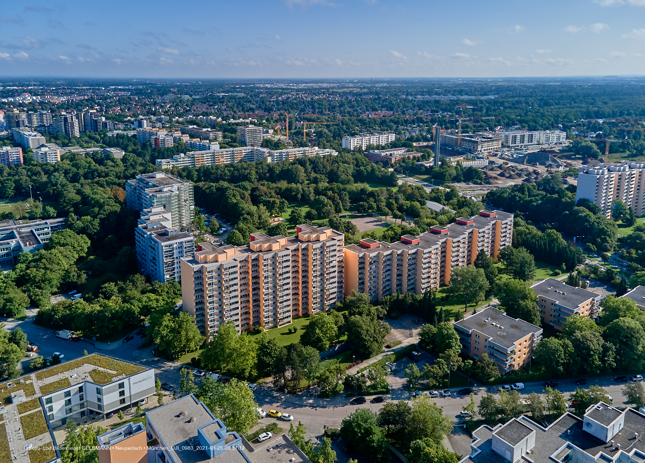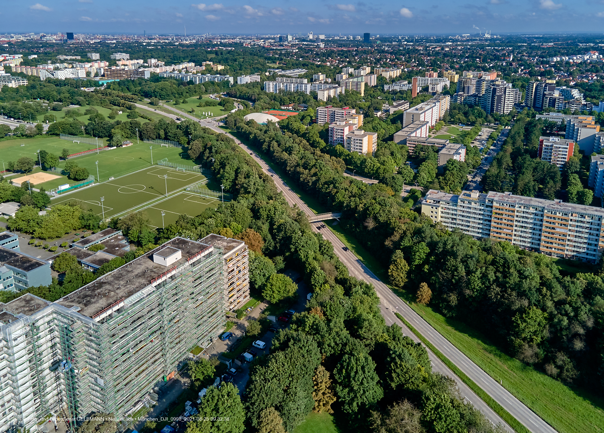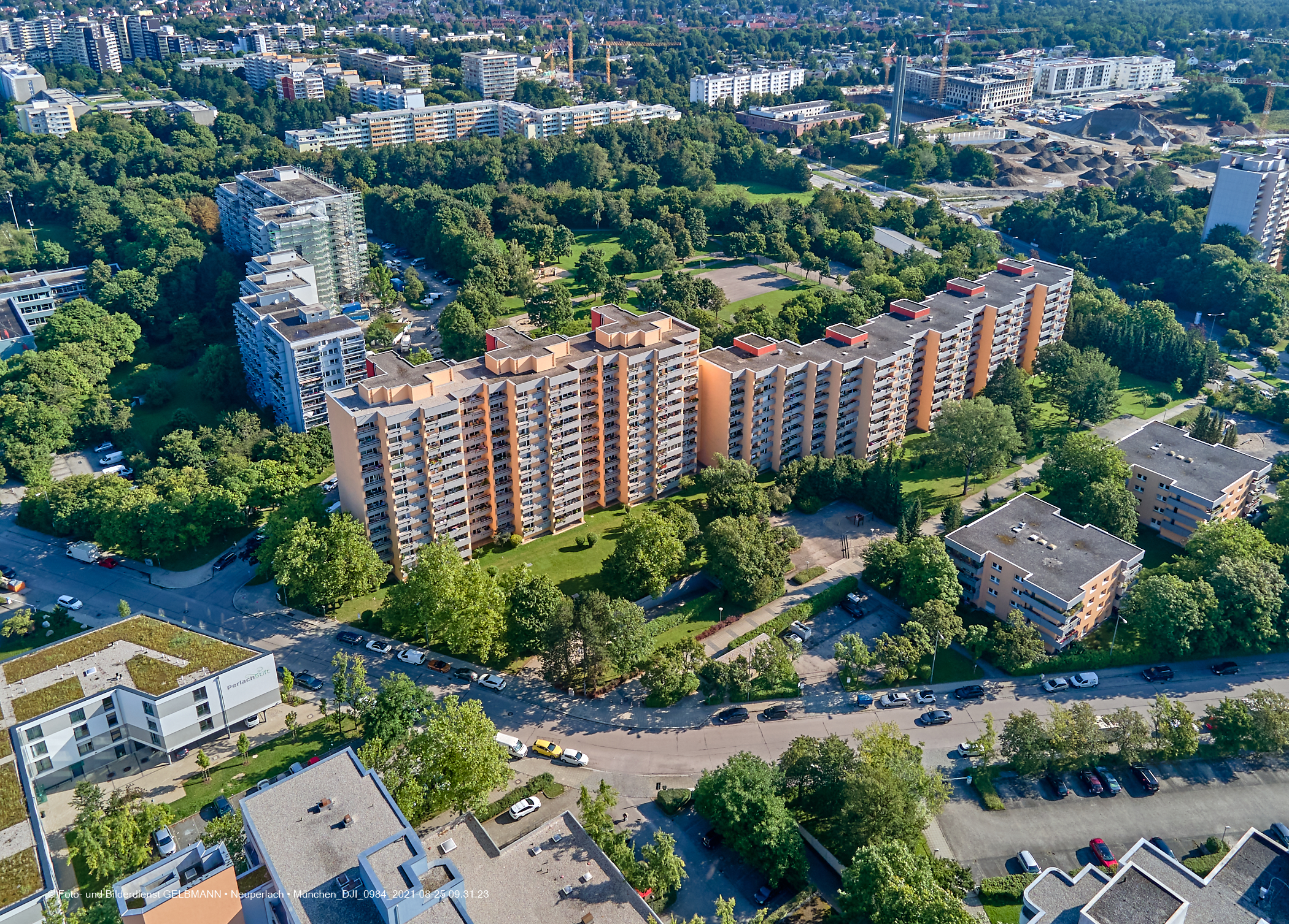 Von der Kreuzung Ständlerstraße und Karl-Marx-Ring aus, hat man eine nguten Blick über das östliche Neuperlach.