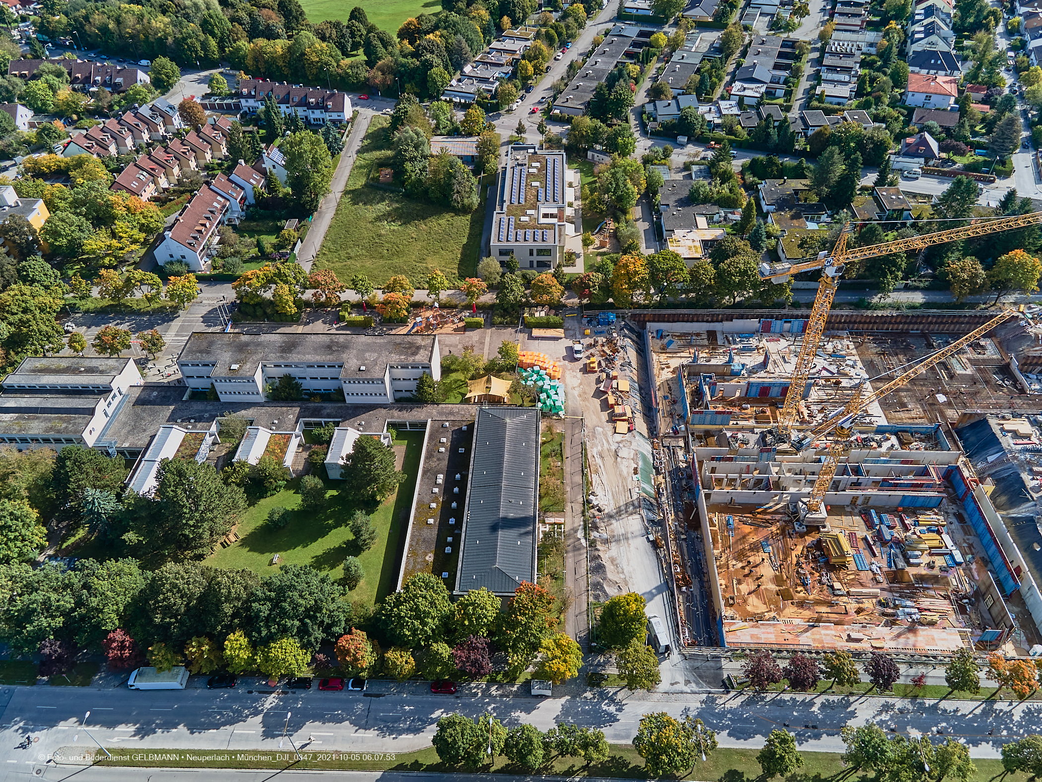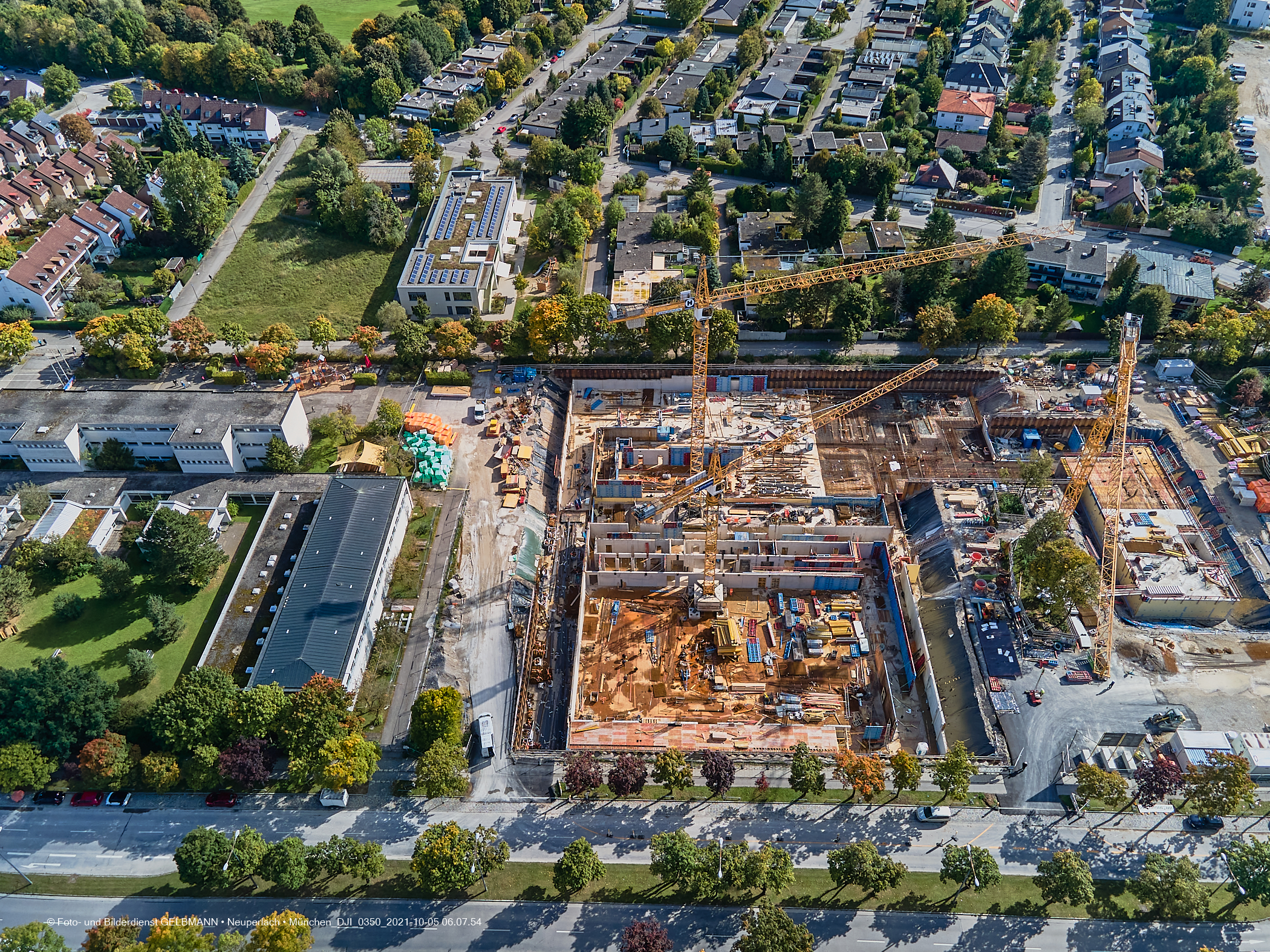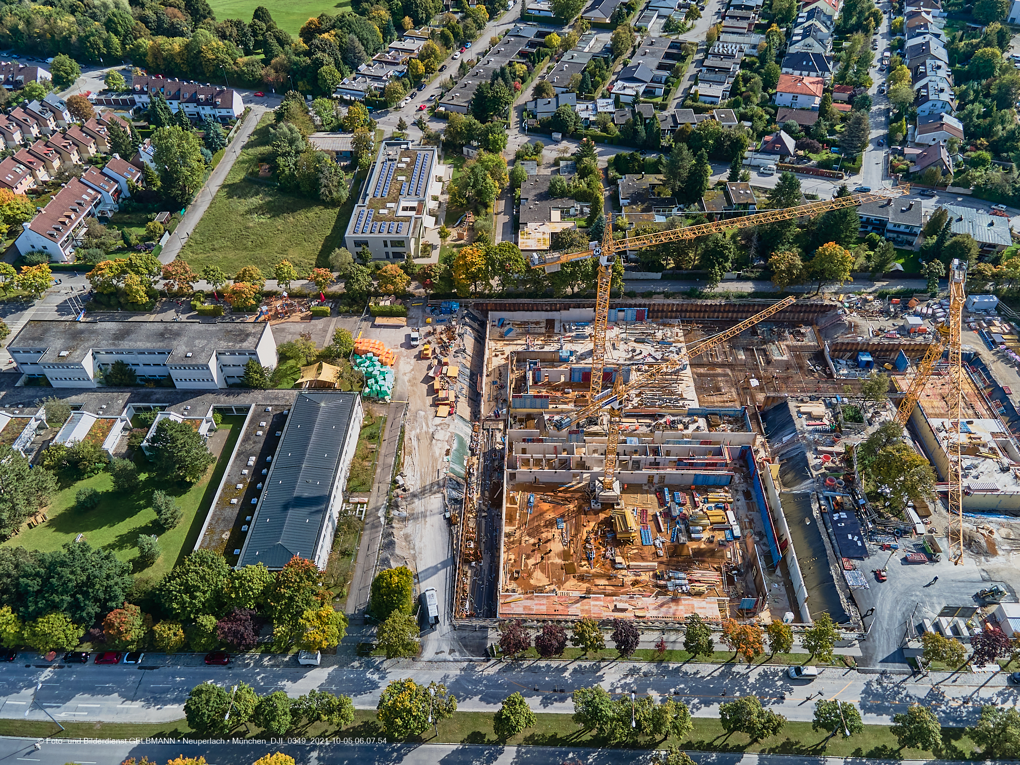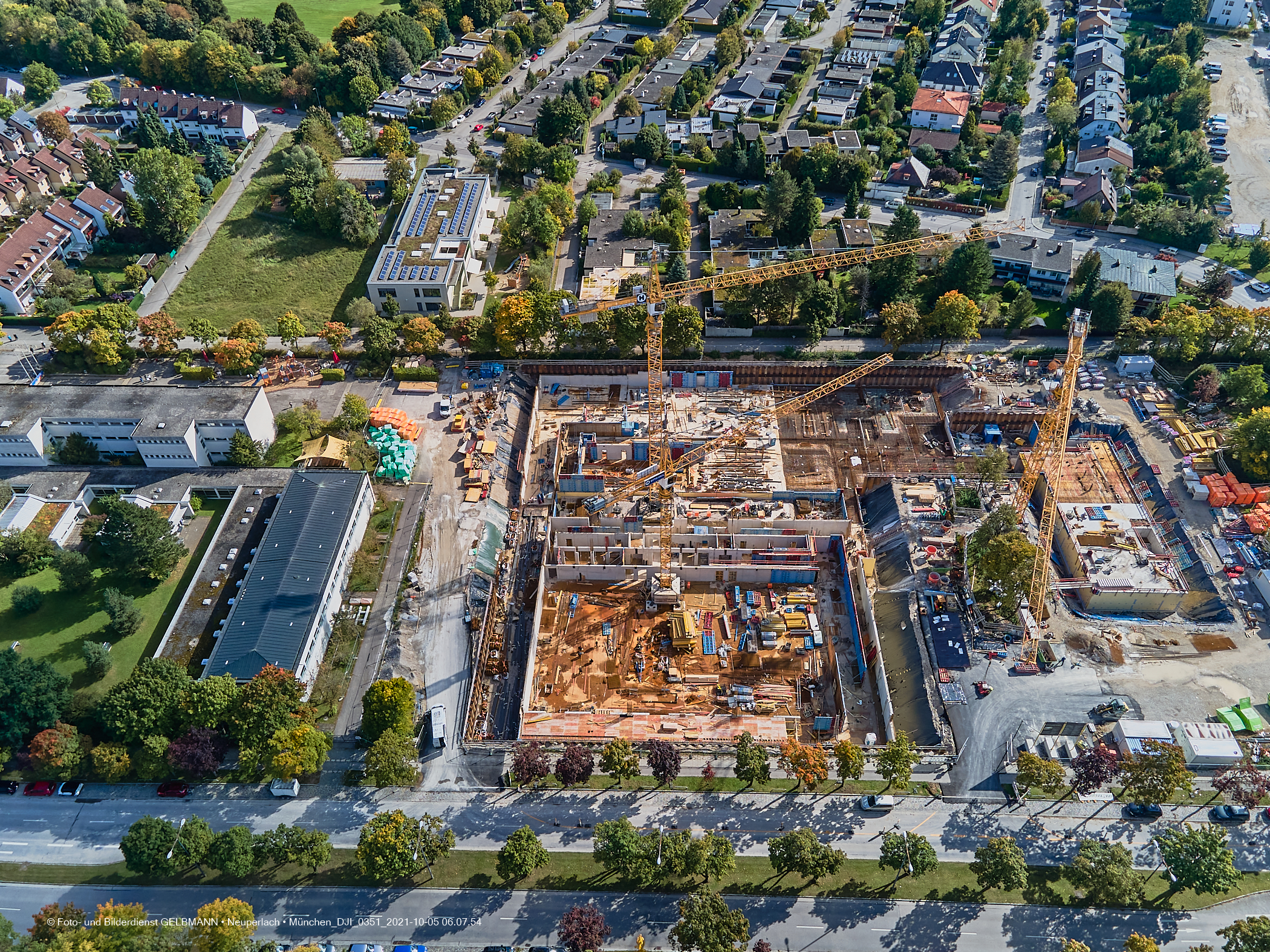 02.10.2021 - Auch das alte Schulgebäude ist auf meinen Fotos gut zu sehen. Die Tiefbauarbeiten an unserer Grundschule am Karl-Marx-Ring, gehen weiter. Einige Wände sind schon bis zum Erdgeschoss errichtet.