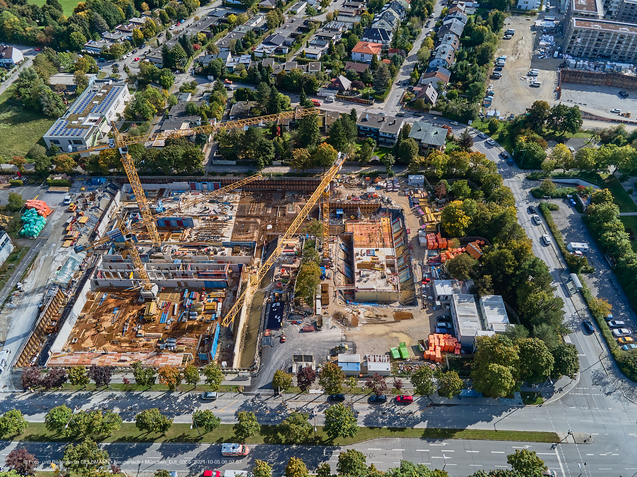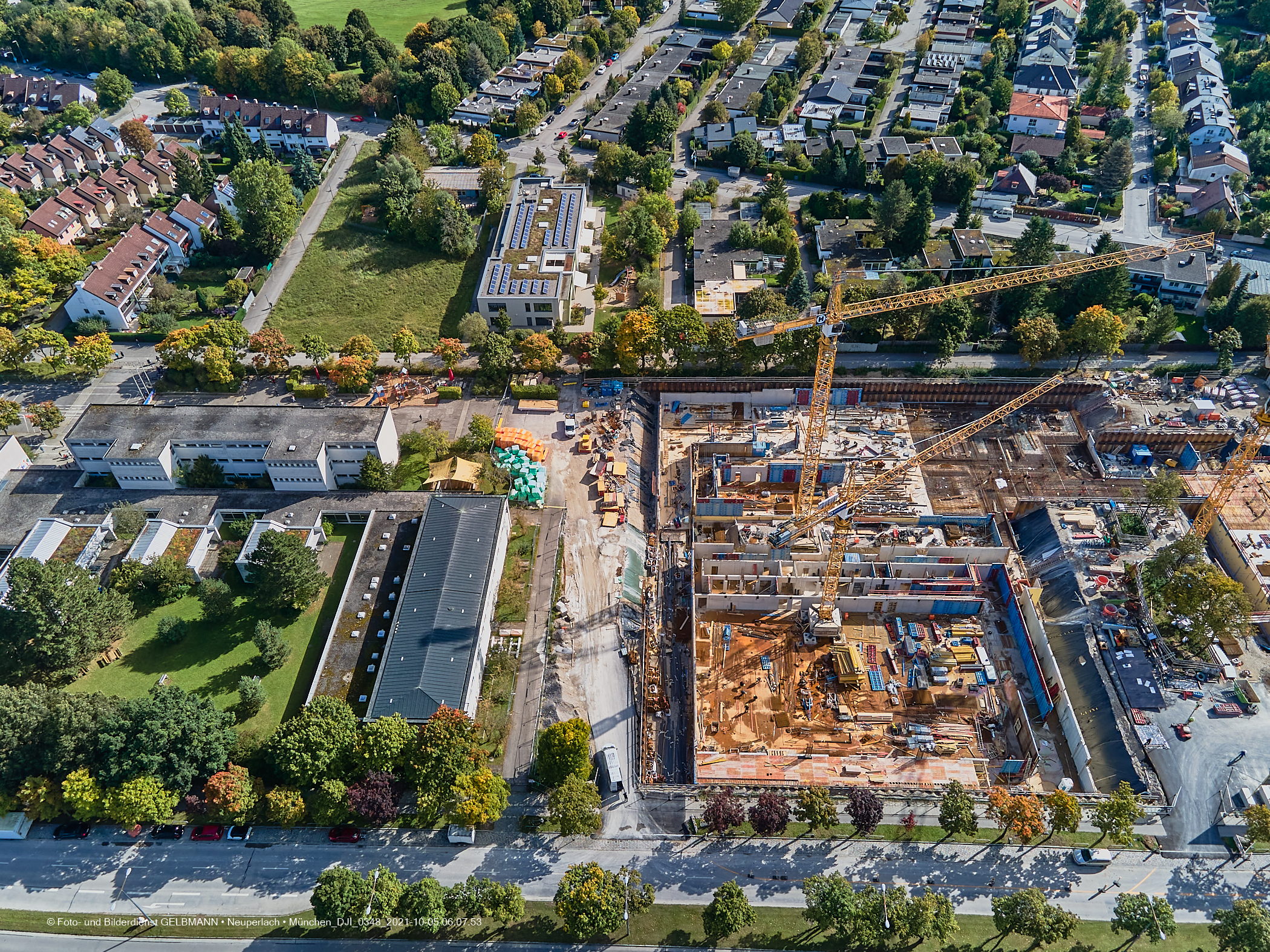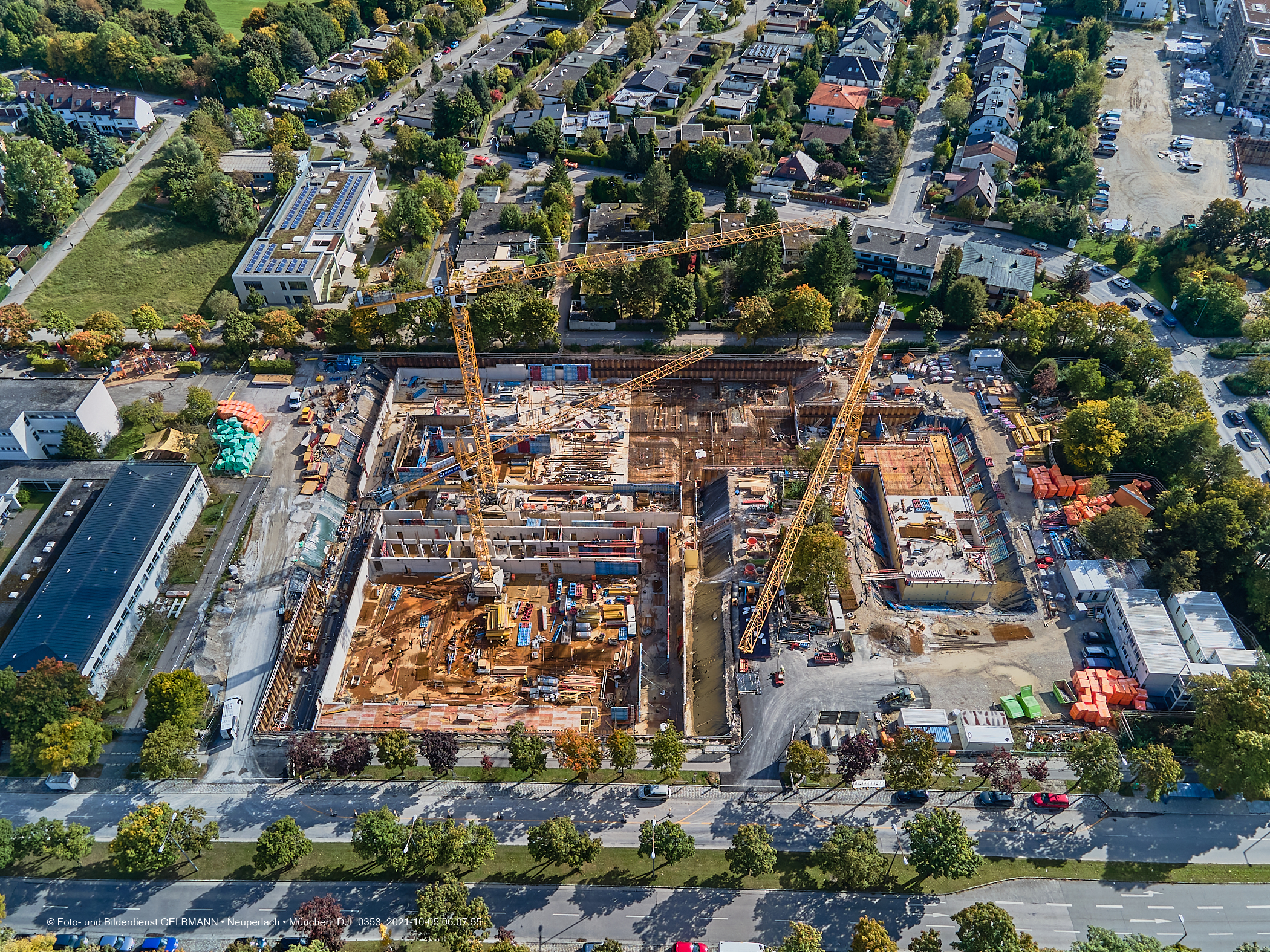 02.10.2021 - Auch das alte Schulgebäude ist auf meinen Fotos gut zu sehen. Die Tiefbauarbeiten an unserer Grundschule am Karl-Marx-Ring, gehen weiter. Einige Wände sind schon bis zum Erdgeschoss errichtet.
