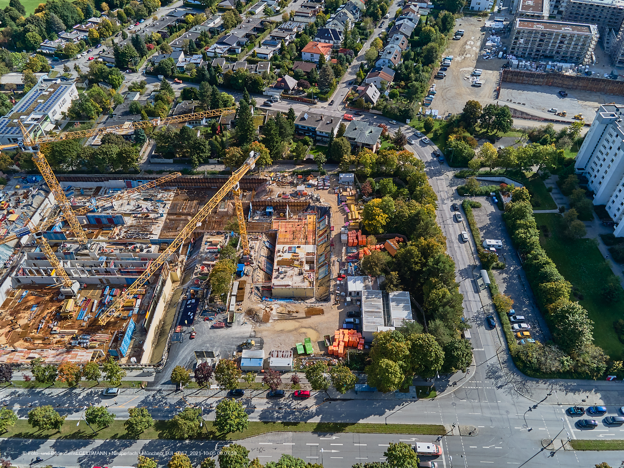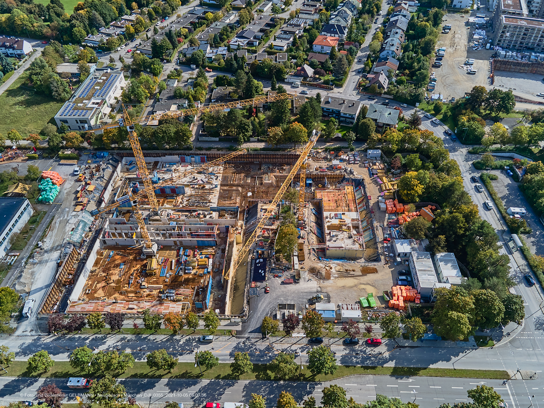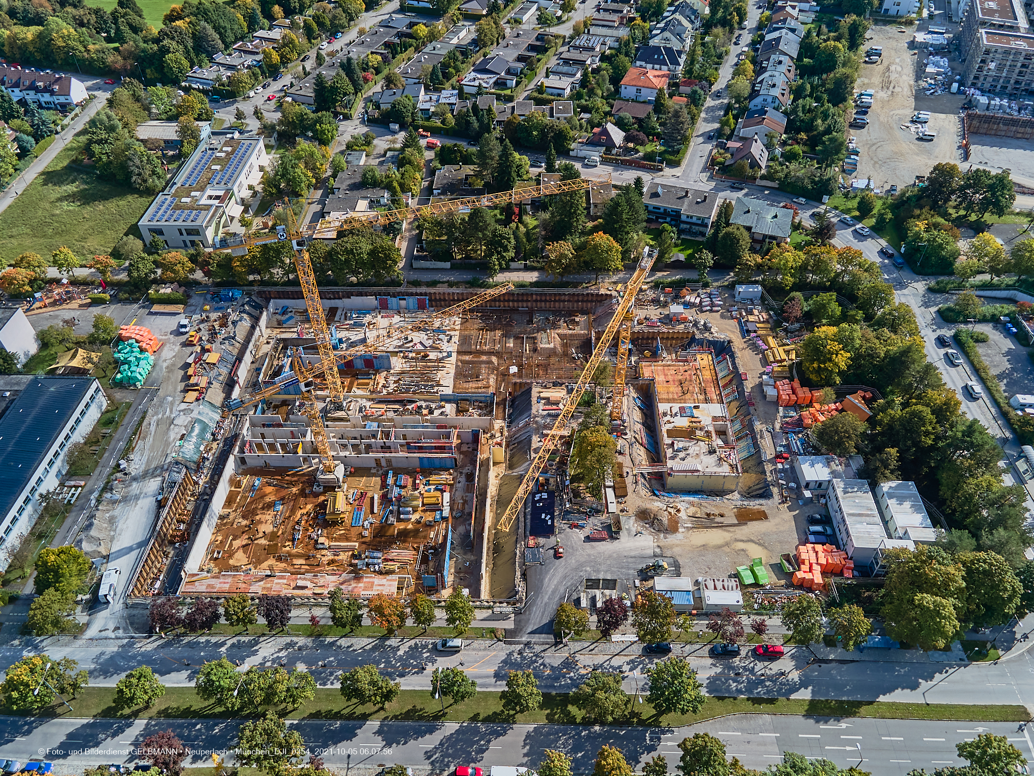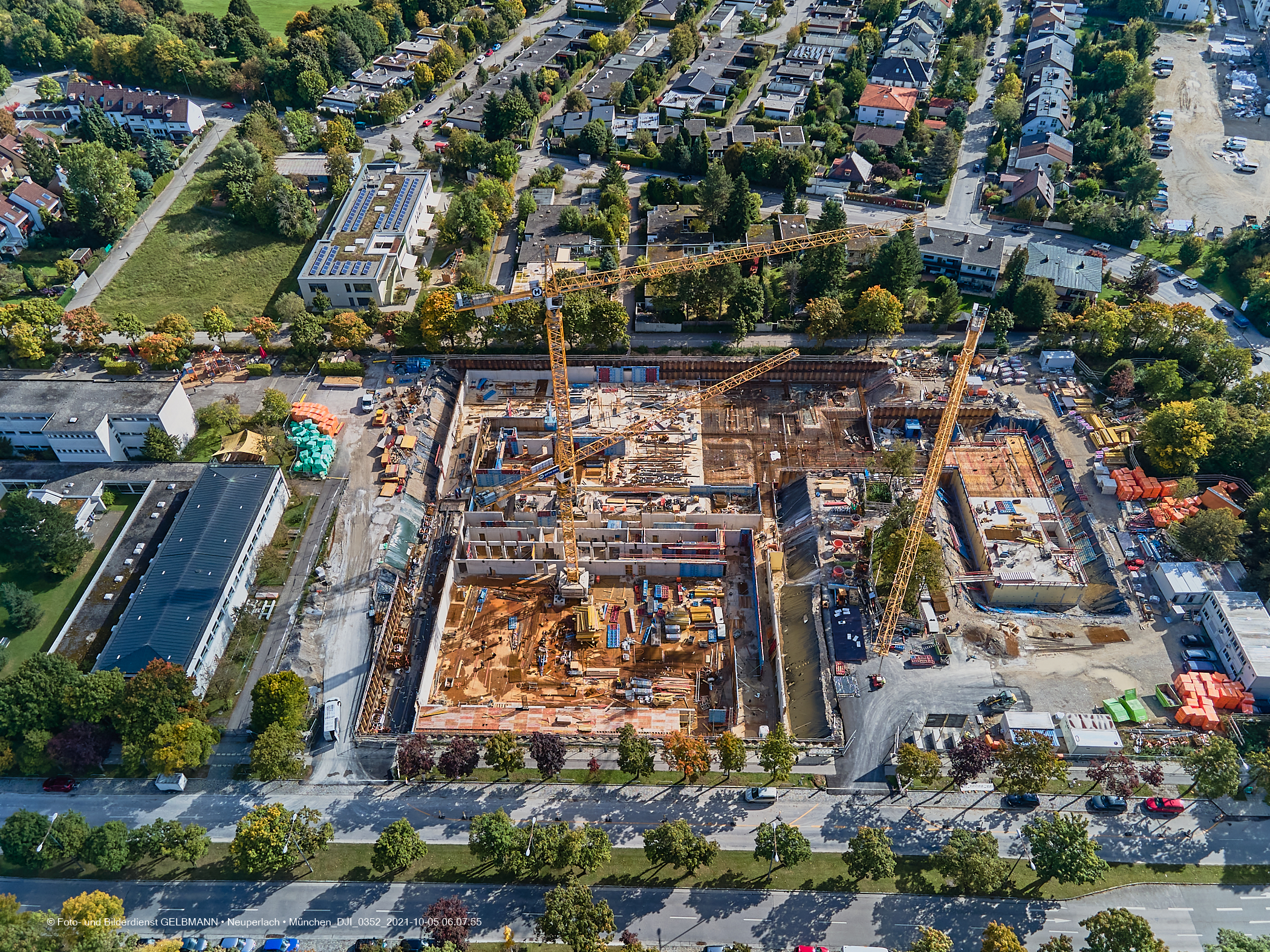 02.10.2021 - Auch das alte Schulgebäude ist auf meinen Fotos gut zu sehen. Die Tiefbauarbeiten an unserer Grundschule am Karl-Marx-Ring, gehen weiter. Einige Wände sind schon bis zum Erdgeschoss errichtet.