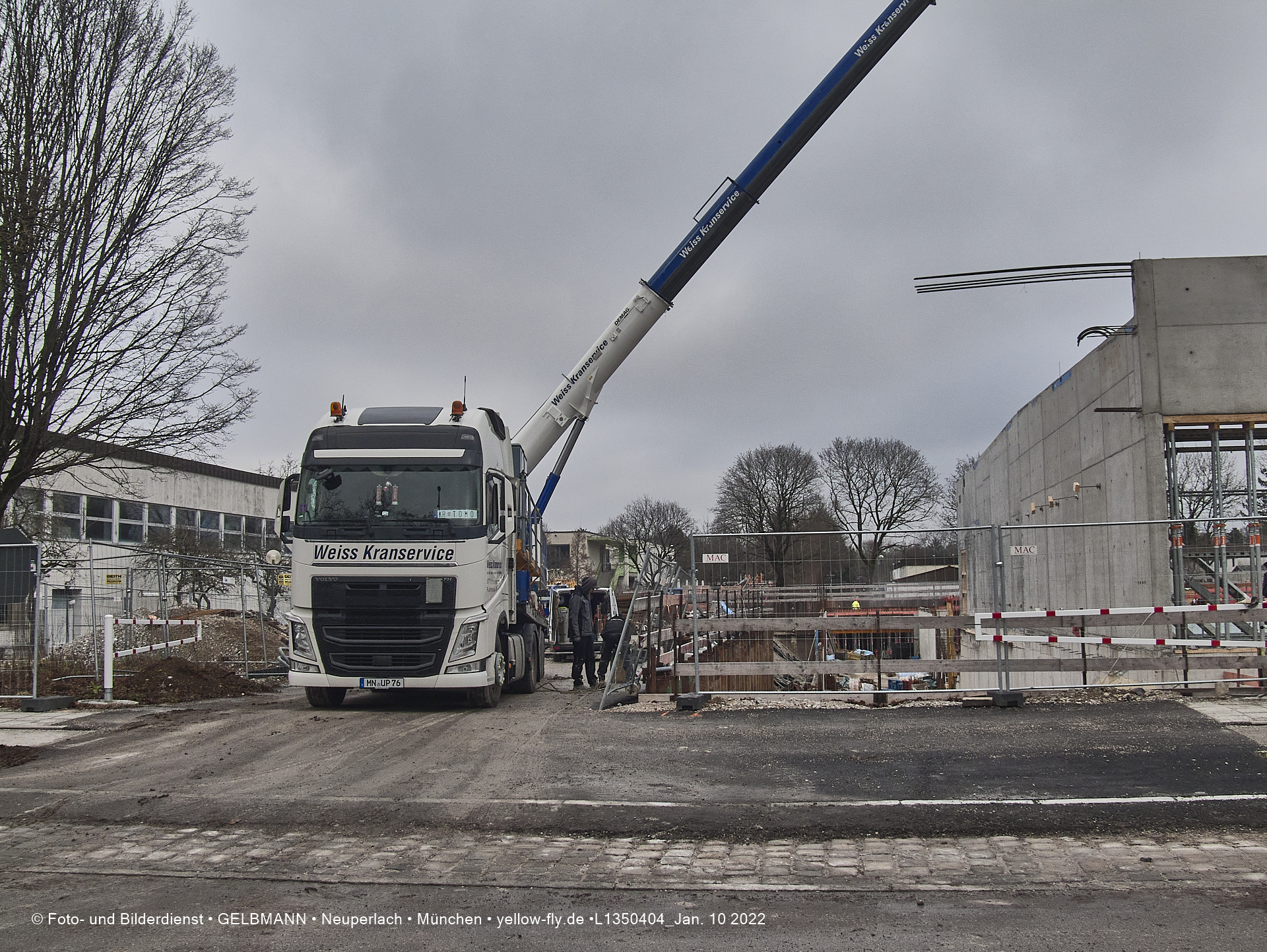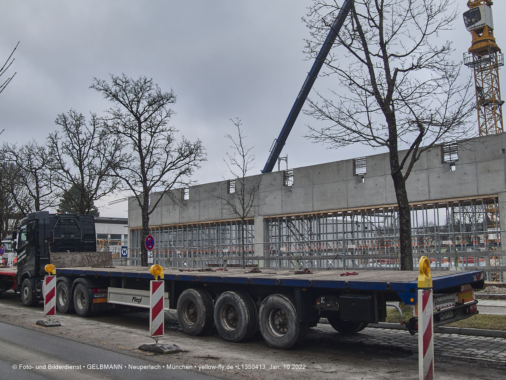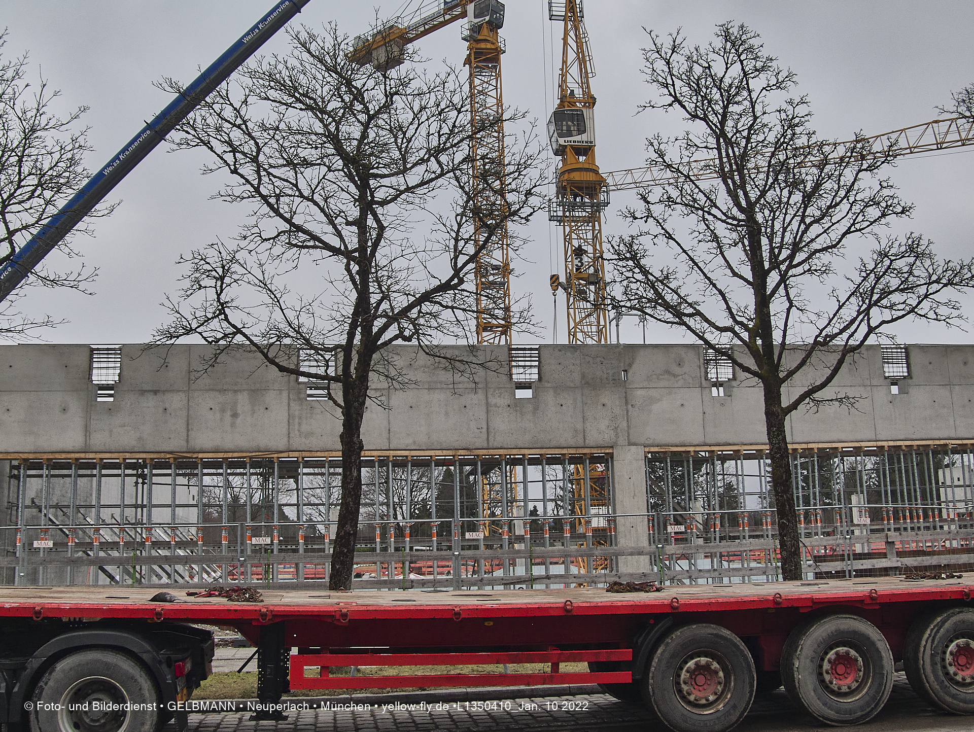 Die Wände für die Mehrzweckhalle der Grundschlule am Kal-MArx-Ring in Neuperlach, werden aufgestellt.