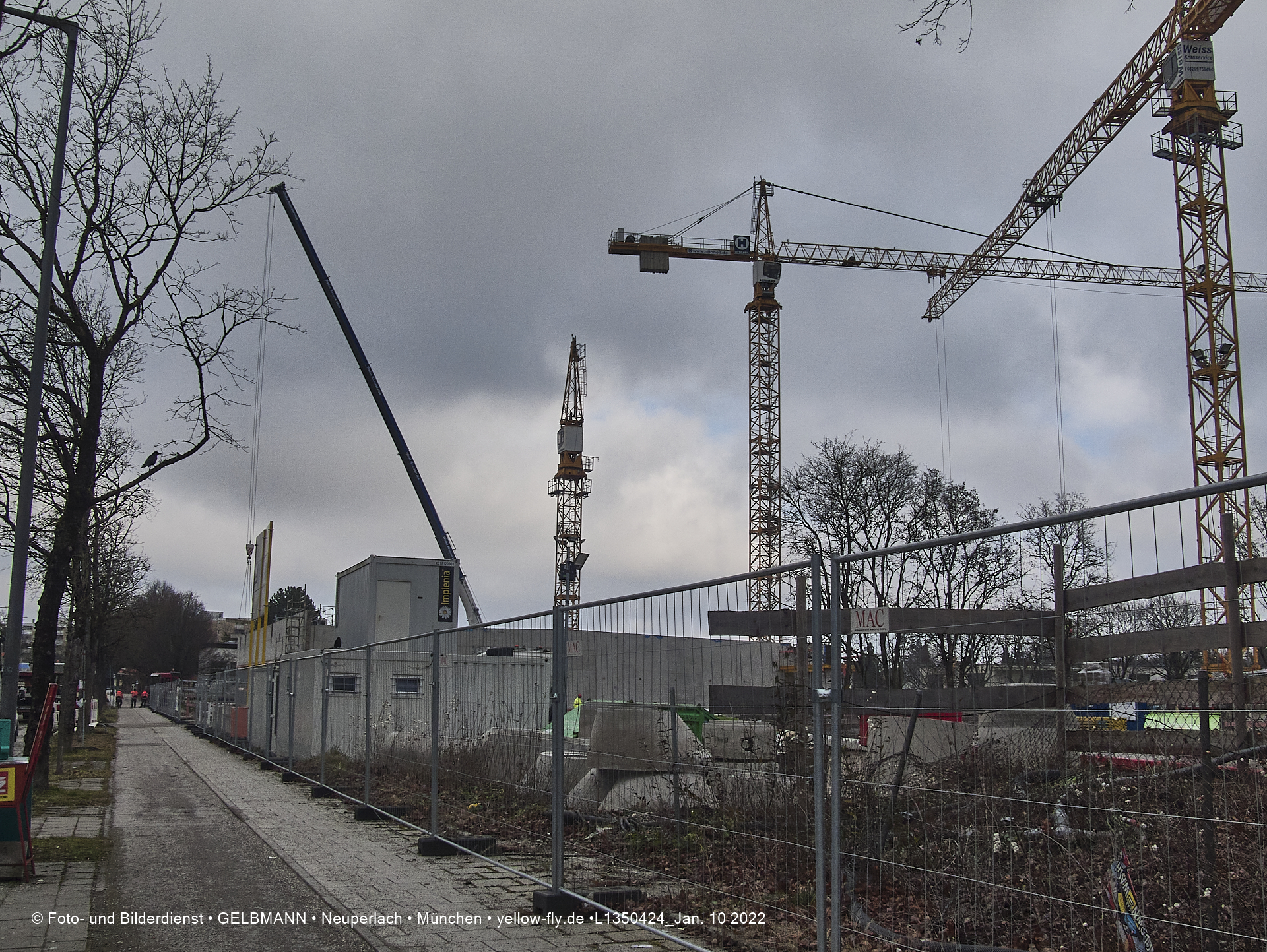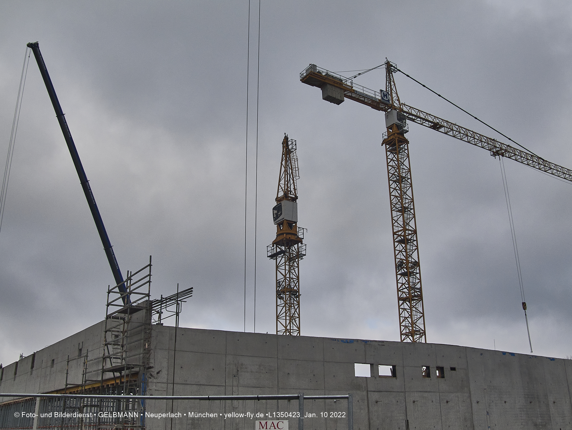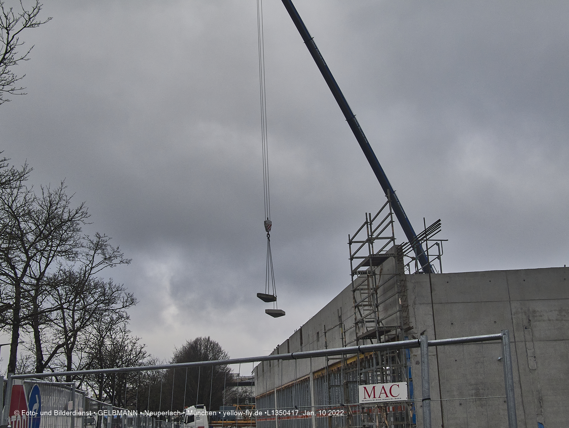 Die Wände für die Mehrzweckhalle der Grundschlule am Kal-MArx-Ring in Neuperlach, werden aufgestellt.