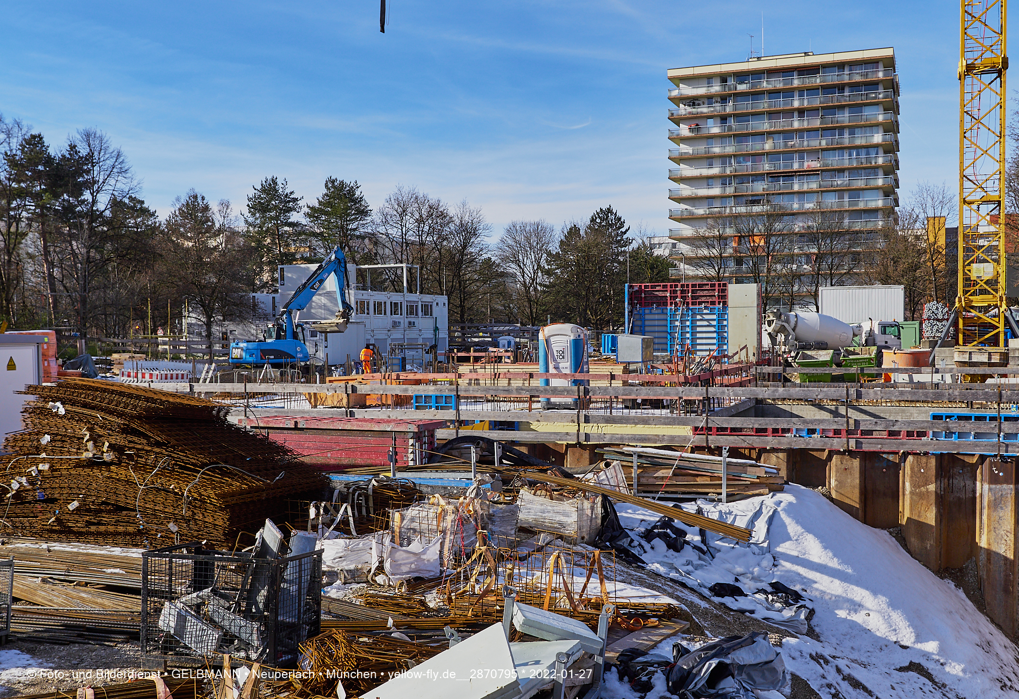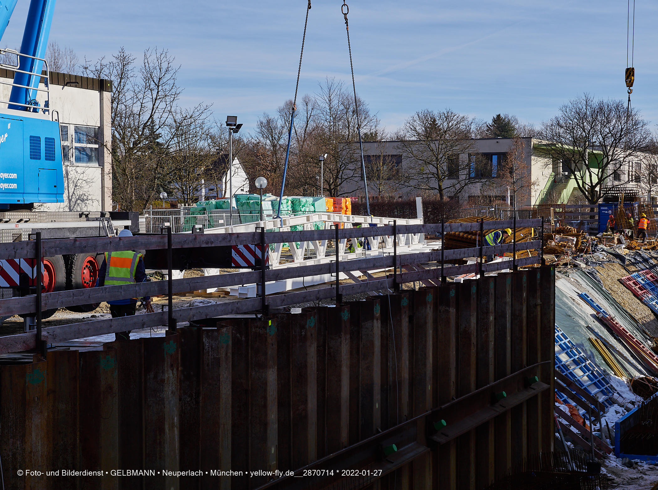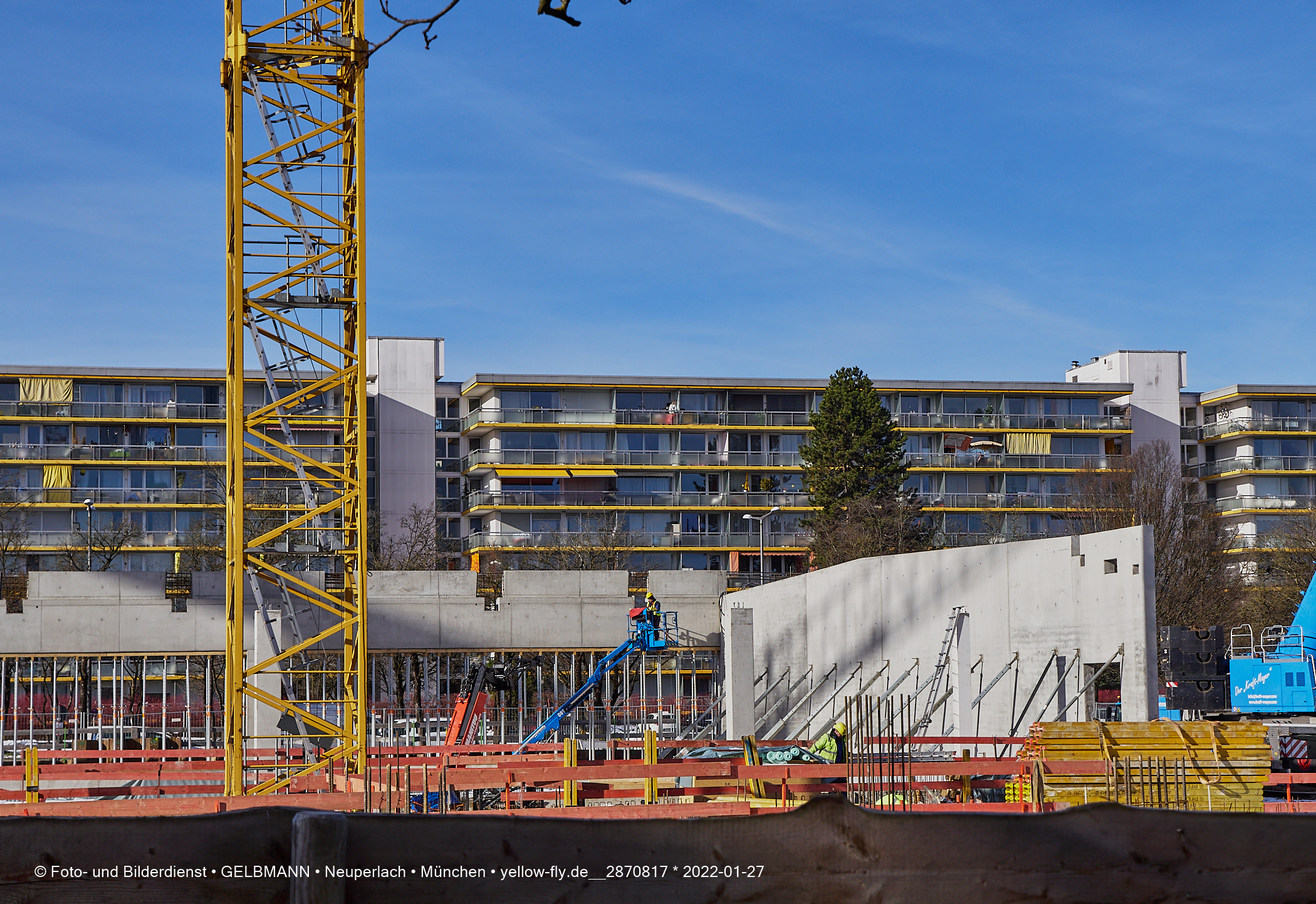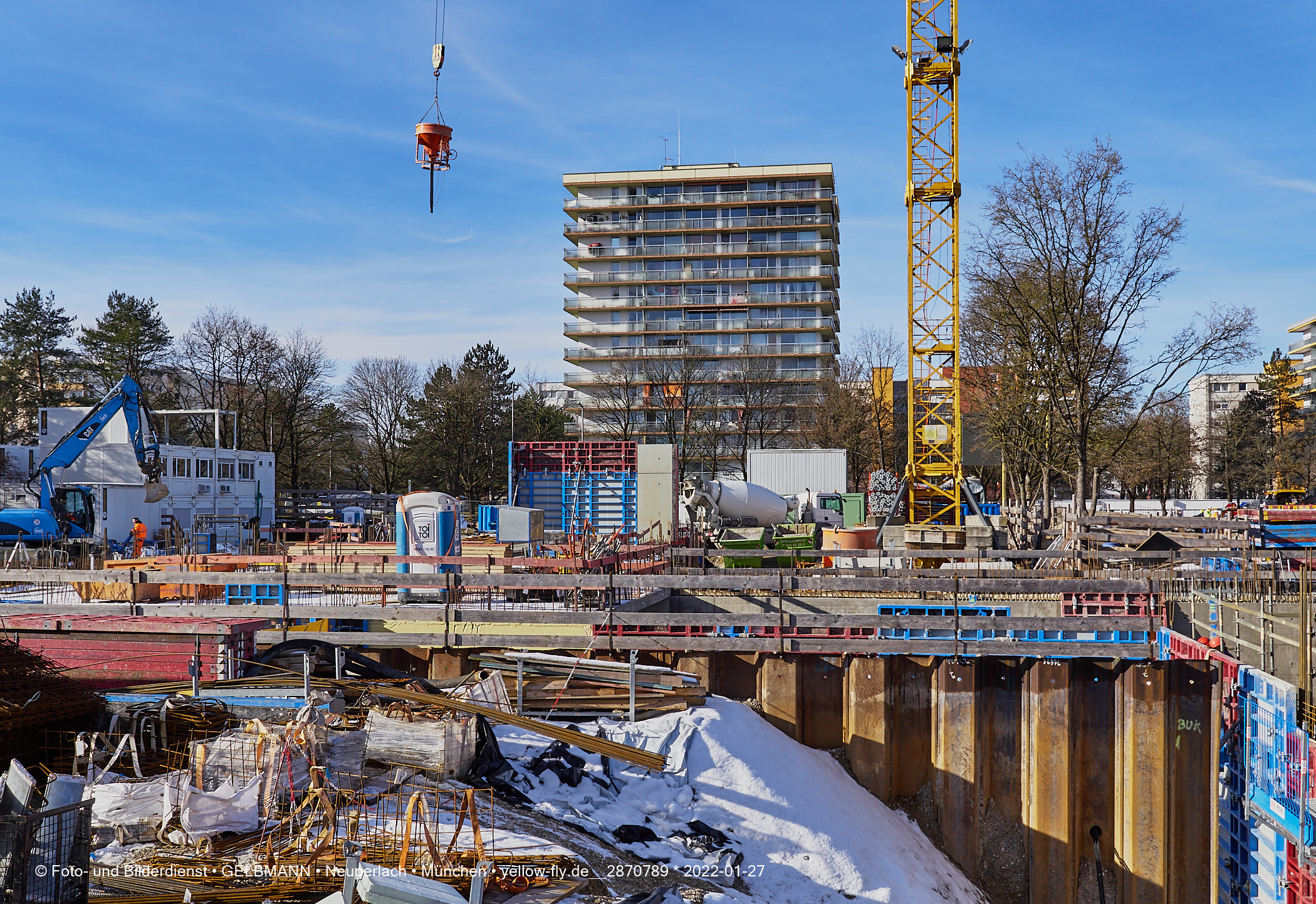Durch die großen Wandplatten, welche von einem mobilen Karan an die entsprechenden Stellen gehoben werden, wächst die Sporthalle enorm schnell in die Höhe. Schon wird, wie in meinem nächsten Bericht vom 27./28.01.2022 zu sehen ist, an der Decke gearbeitet