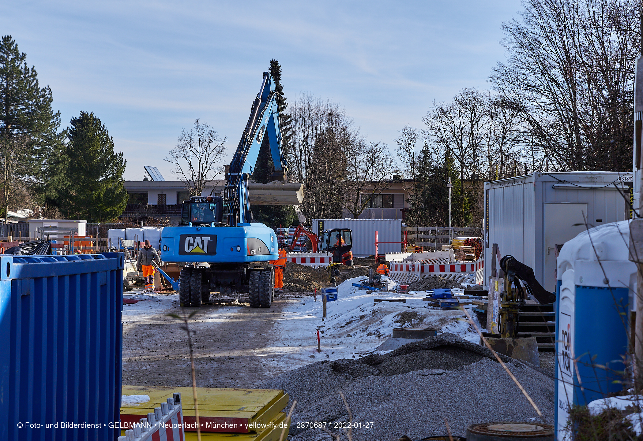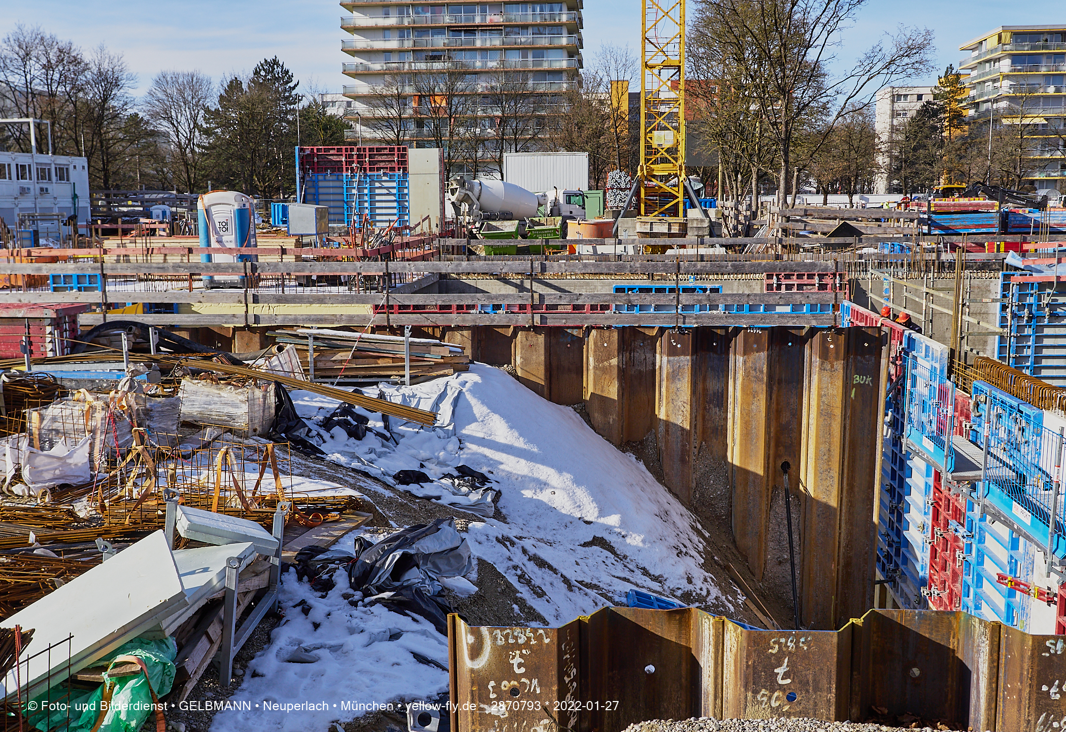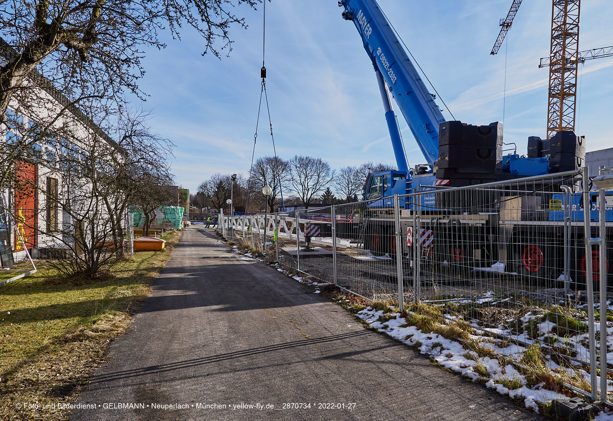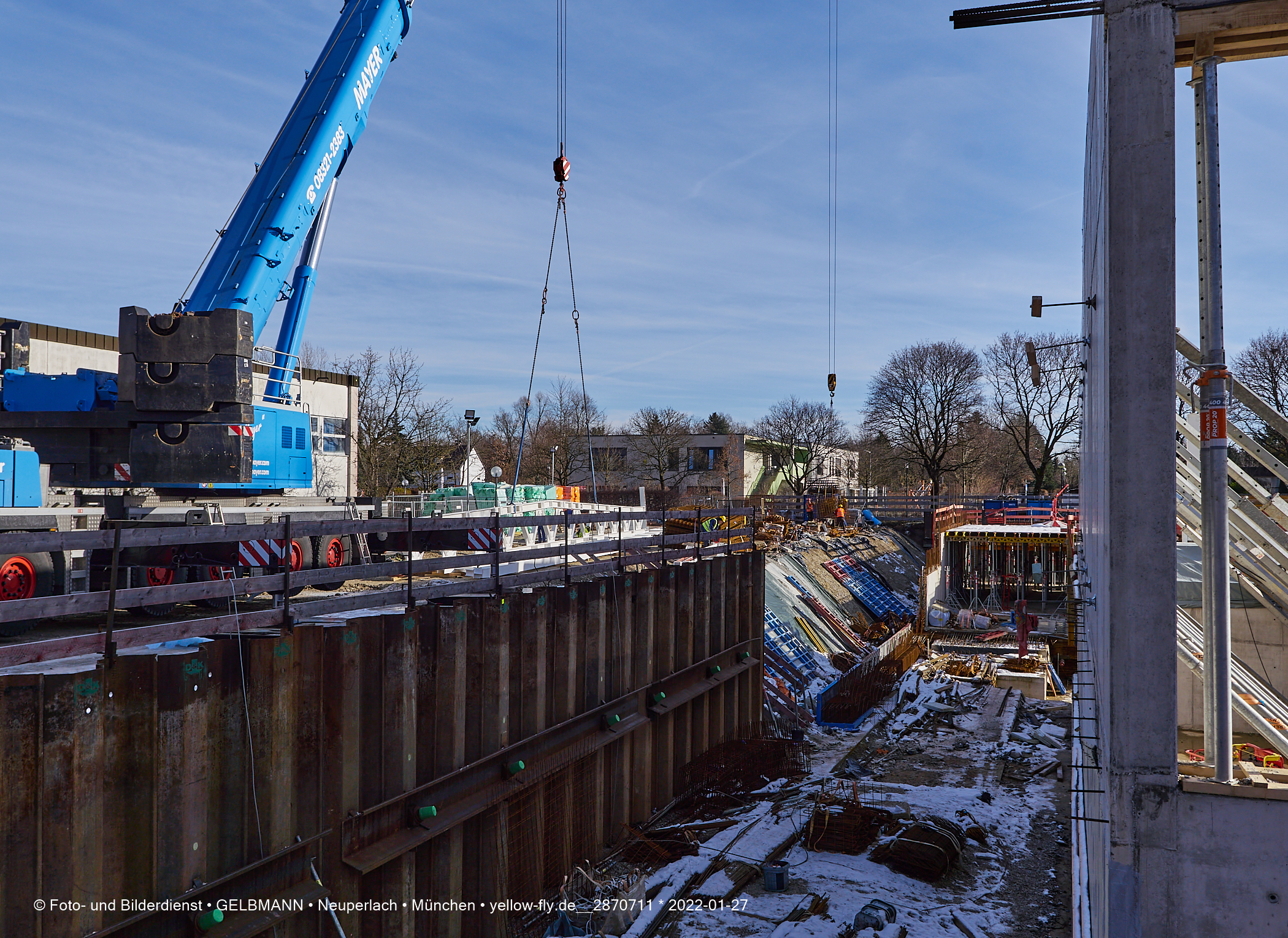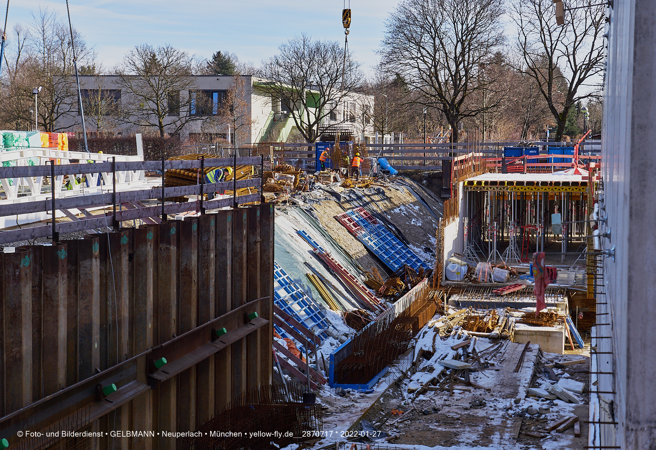 Durch die großen Wandplatten, welche von einem mobilen Karan an die entsprechenden Stellen gehoben werden, wächst die Sporthalle enorm schnell in die Höhe. Schon wird, wie in meinem nächsten Bericht vom 27./28.01.2022 zu sehen ist, an der Decke gearbeitet