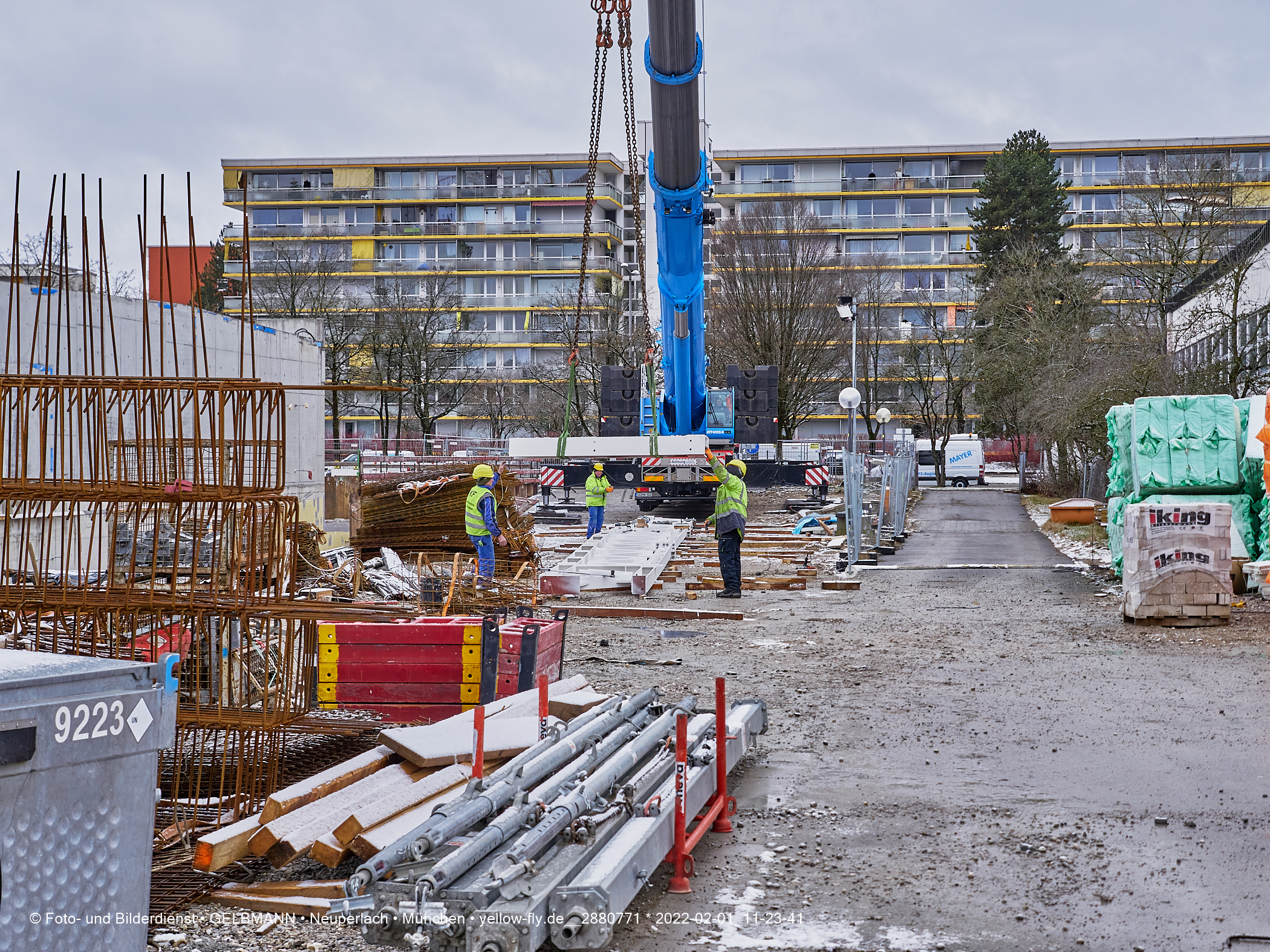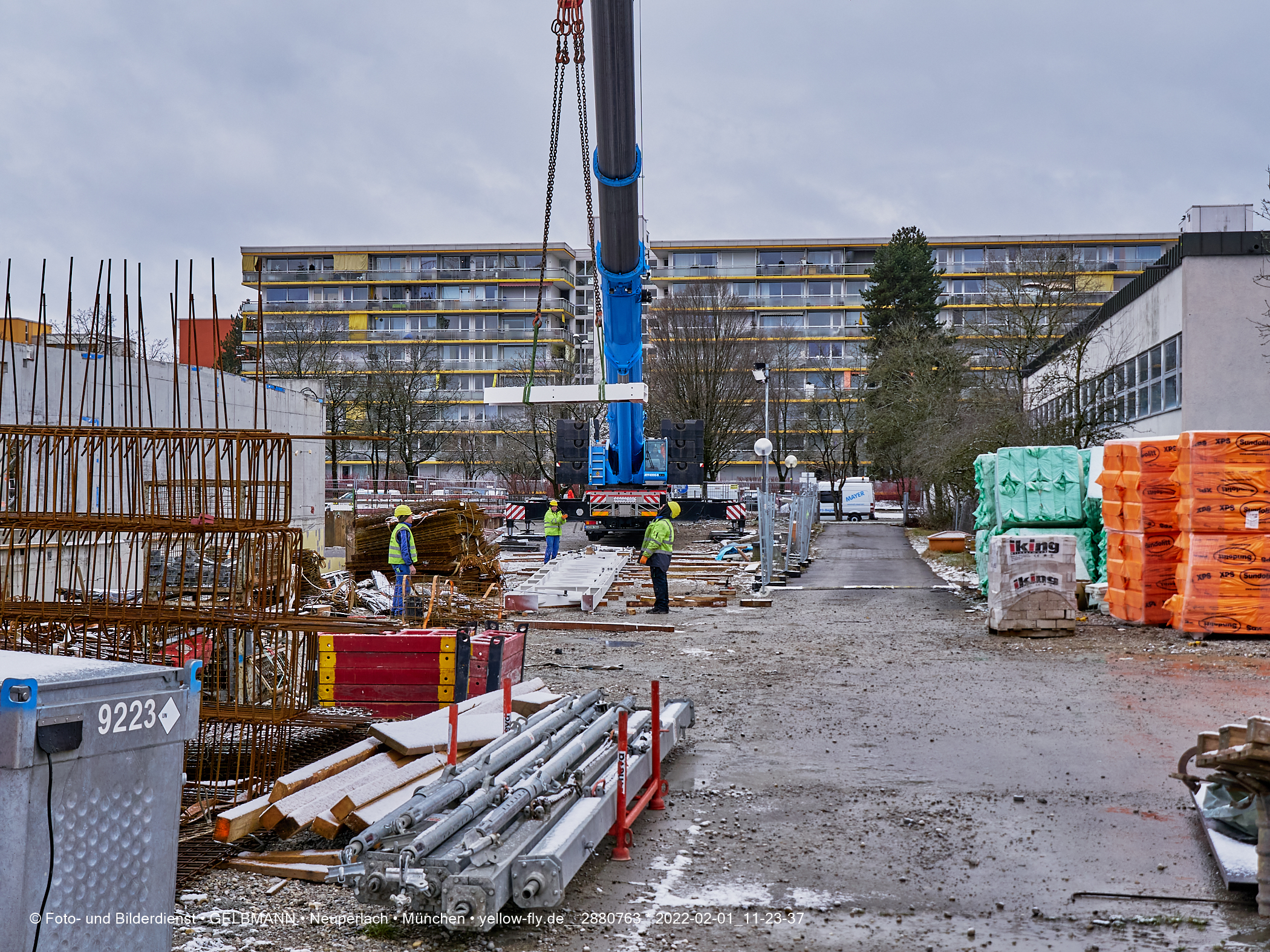 Immer mehr Dachträger sind zwischenzeitlich über die neue Sporthalle der Grundschule am Karl-Marx-Ring gespannt. Inzwischen sind