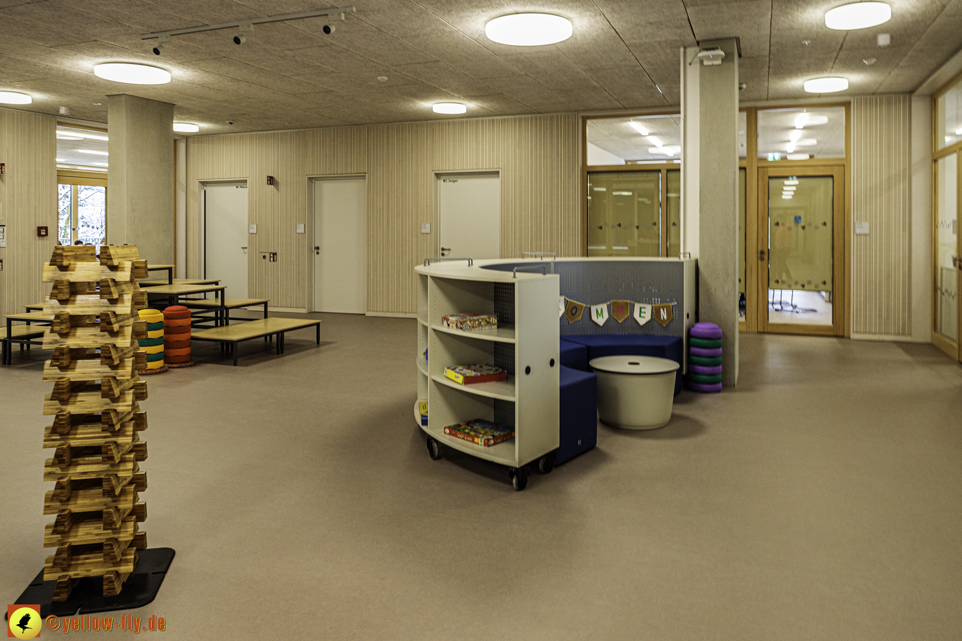 Heute am 08.01.2024 war der 1. Schultag in dem neuen Schulgebäude am Karl-Marx-Ring. Mein langjähriger Bekannter und freundlicher Mitarbeiter der Bauaufsicht von Implenia machte es möglich, eine kleine Besichtigung des neuen Schulgebäudes zu absolvieren. Da schon der Unterricht stattfand, mussten wir uns sehr ruhig verhalten.