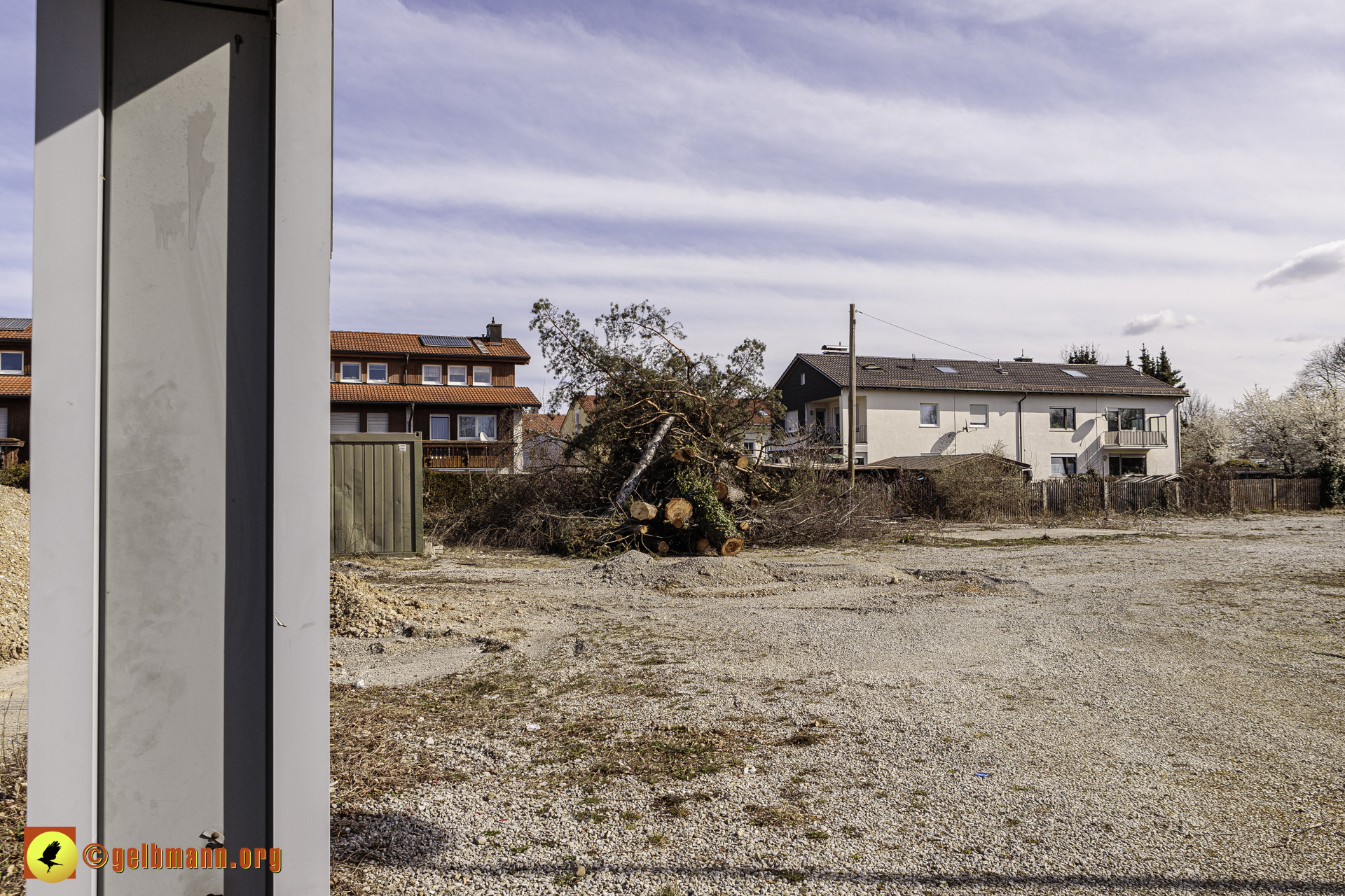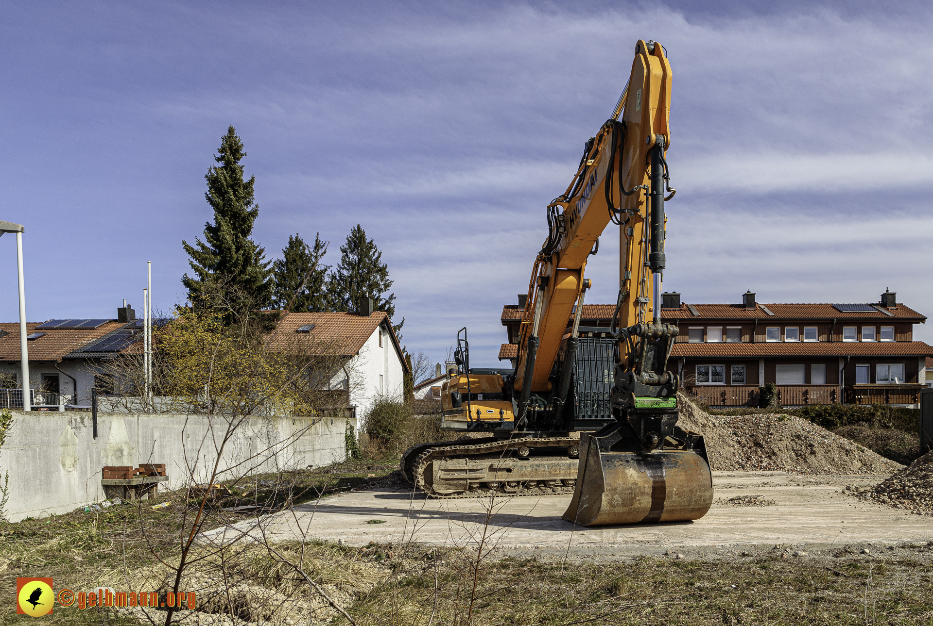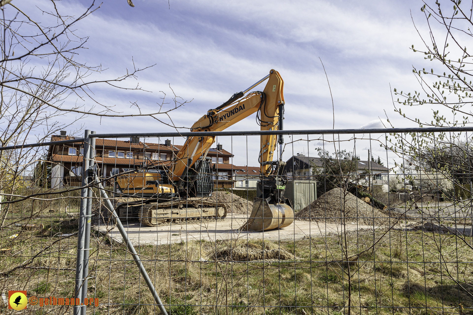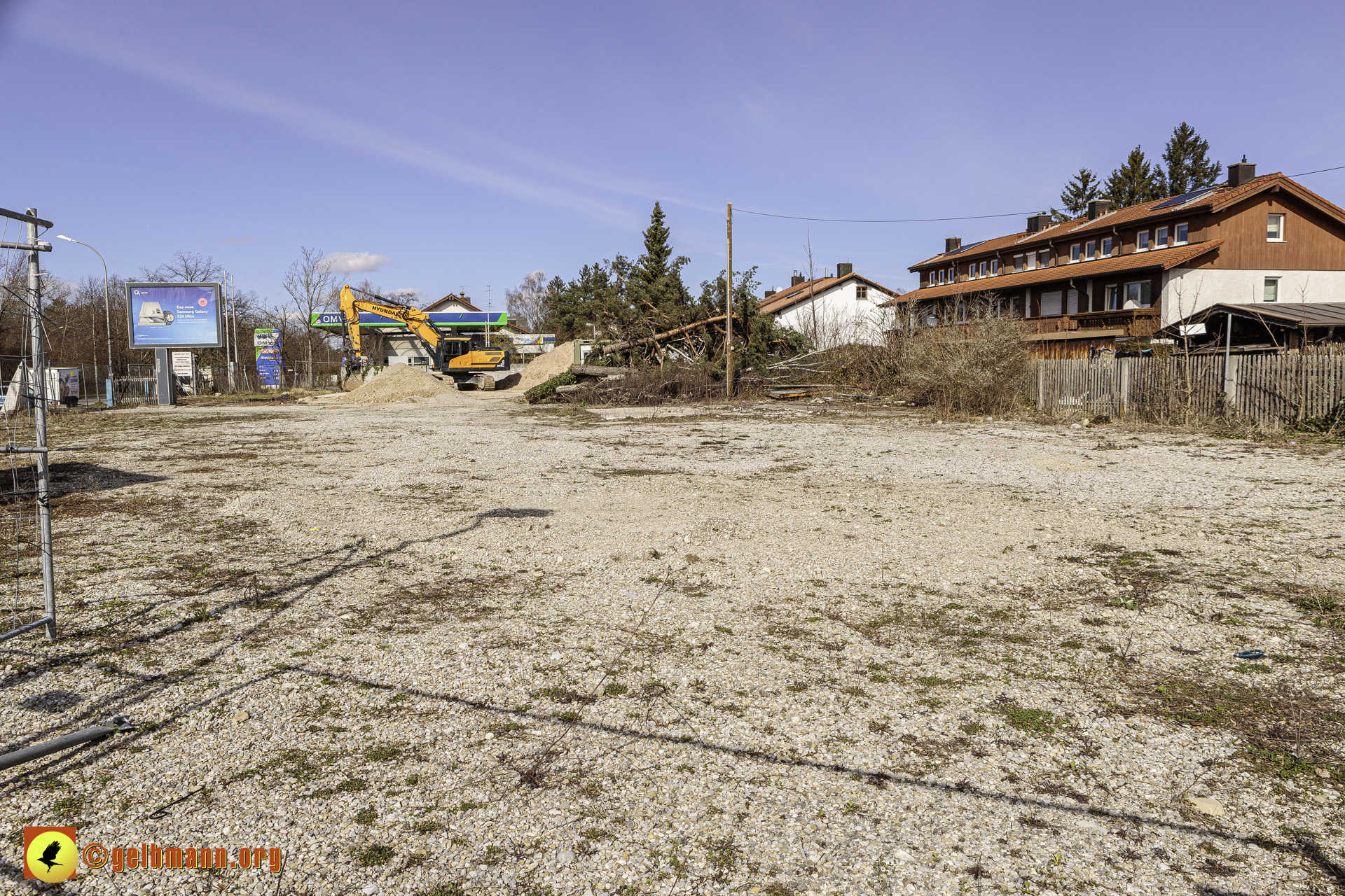 11.03.2024 - Soeben haben die Bauarbeiten auf der neuen Baustelle an der Heinrich-Wieland-Straße, Ecke Cornithstraße begonnen. Gestrüpp und ein kleiner Baum wurden entfernt. Nun kann es in die Tiefe gehen.