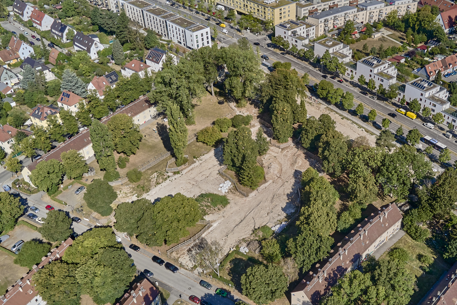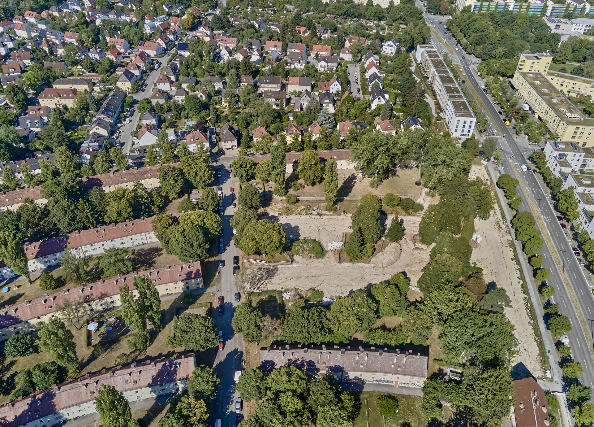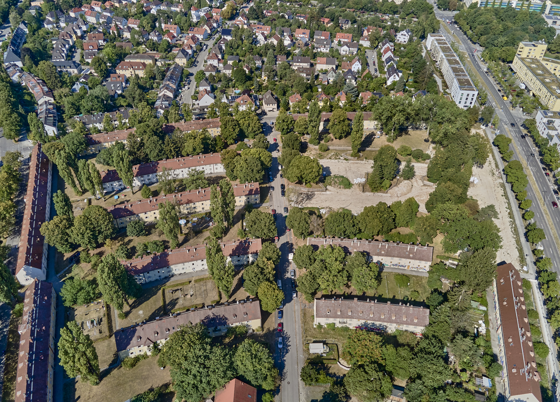 Foto #9/55 - 17.08.2022 - Luftbilder von der Baustelle Maikäfersiedlung in Berg am Laim