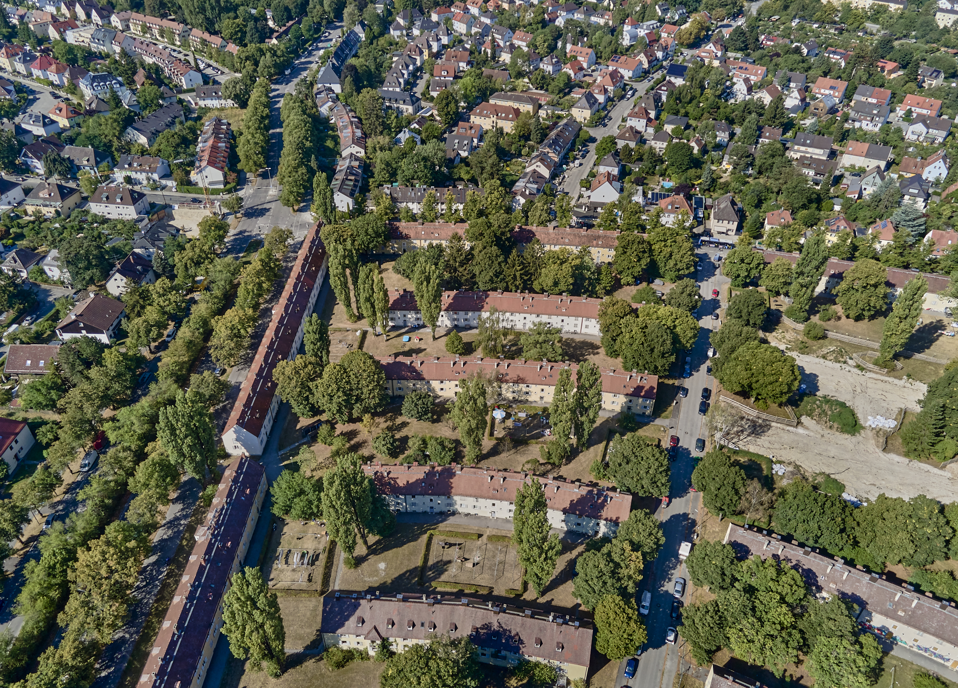 Im Rahmen einer Nachverdichtung soll die idyllische Wohnanlage abgerissen und durch Neubauten ersetzt werden.