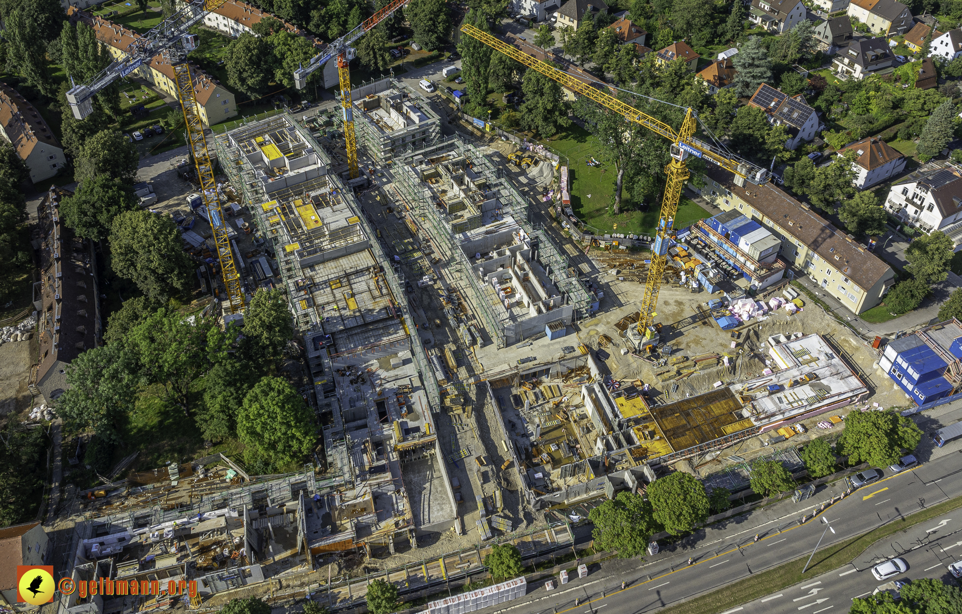 Die Baustelle der Firma "Leitner" an der Bad-Schachener-Straße in Berg am Laim, wächst enorm schnell in die Höhe. Erst der Luft, wie zum Beispiele bei meinen Copterfotos, wie auch von den Bürocontainern der Baufirma "Leitner" aus, sieht man, wie groß diese Baustelle ist. Auf einer riesigen Fläche wird an vielen Stellen an den kommenden Gebäuden gearbeitet.