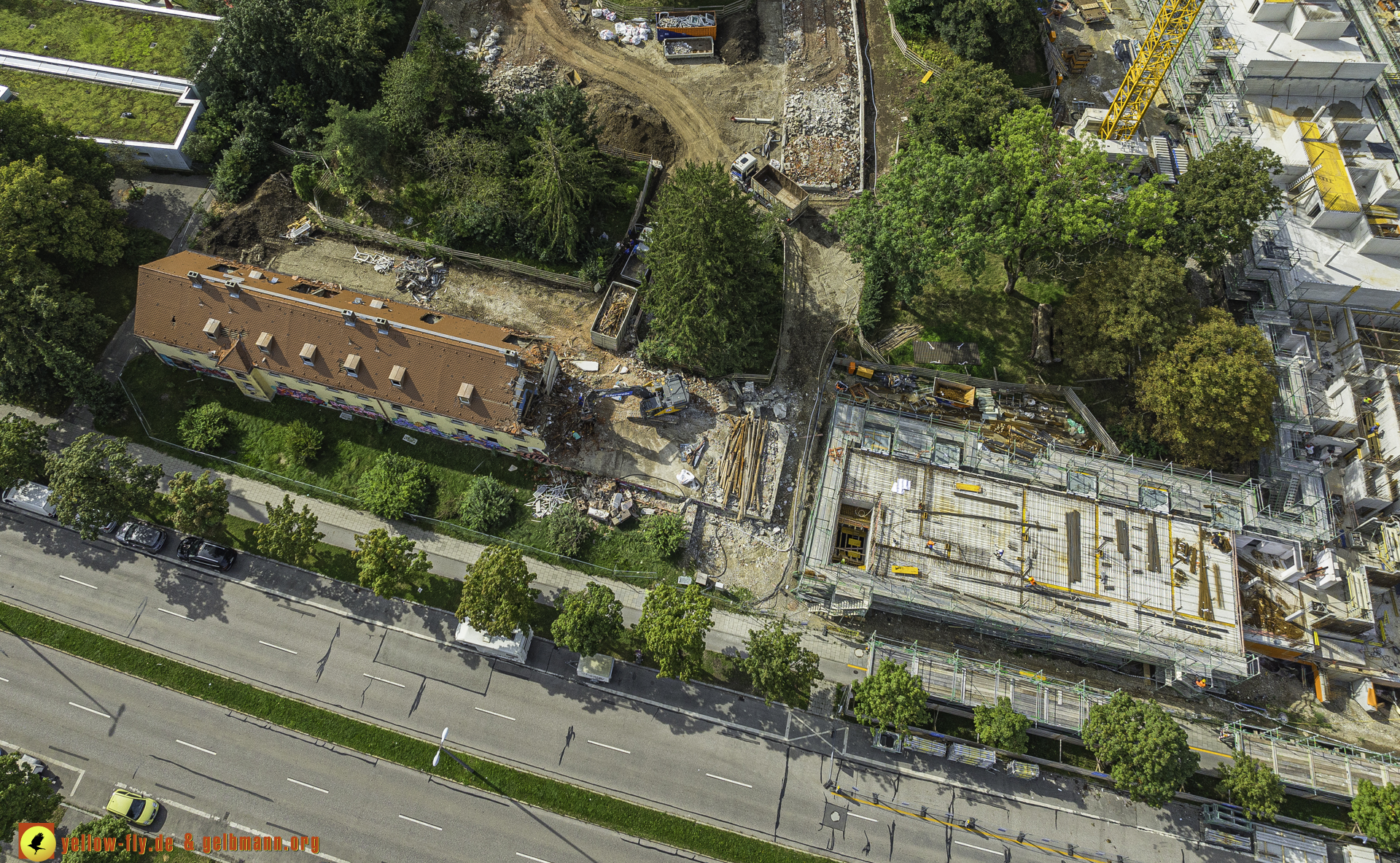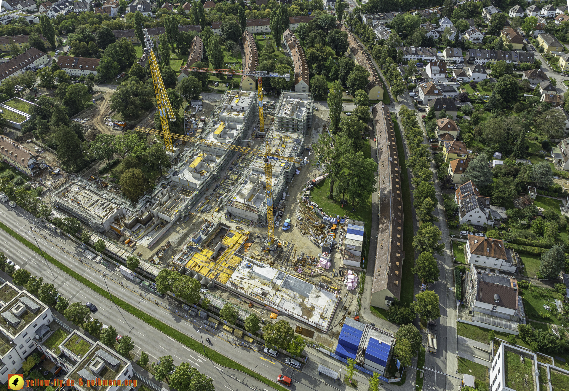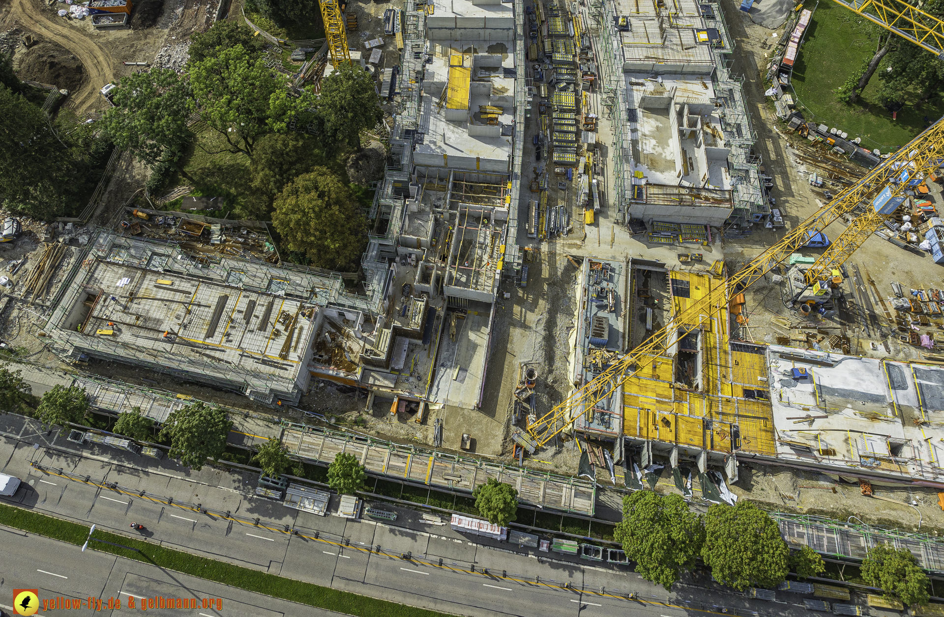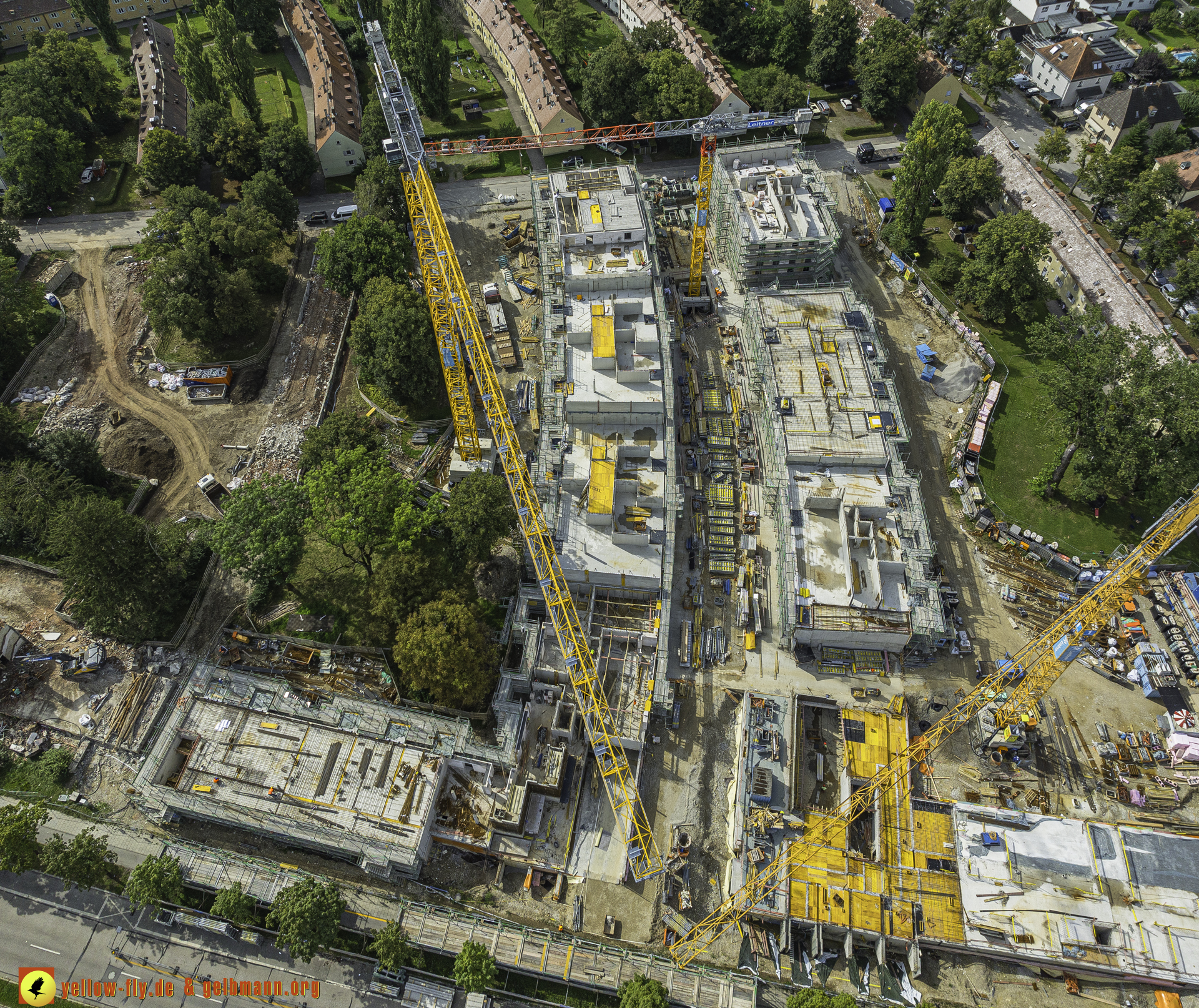 Die Großbaustelle in Berg am Laim ist schon weit fortgeschritten. Zum Teil sind an einigen Häusern schon drei Stockwerke zu sehen. Von der Bad Schachener-Straße aus hat man einen guten Blick auf die Baustelle. Den besten Blick bekommt man natürlich von oben. Mir der Drohne sind daher folgende Videosequenzen entstanden.