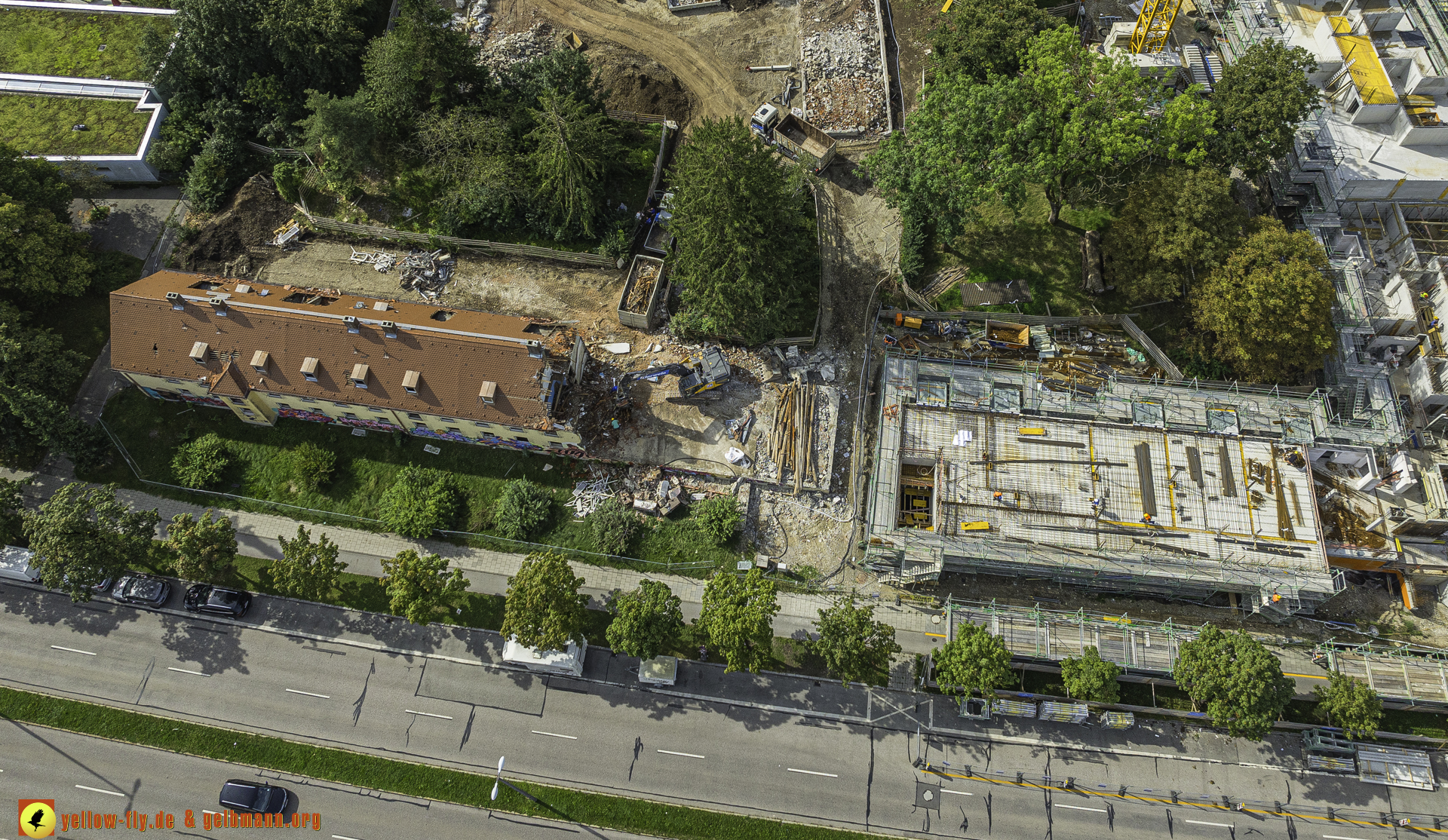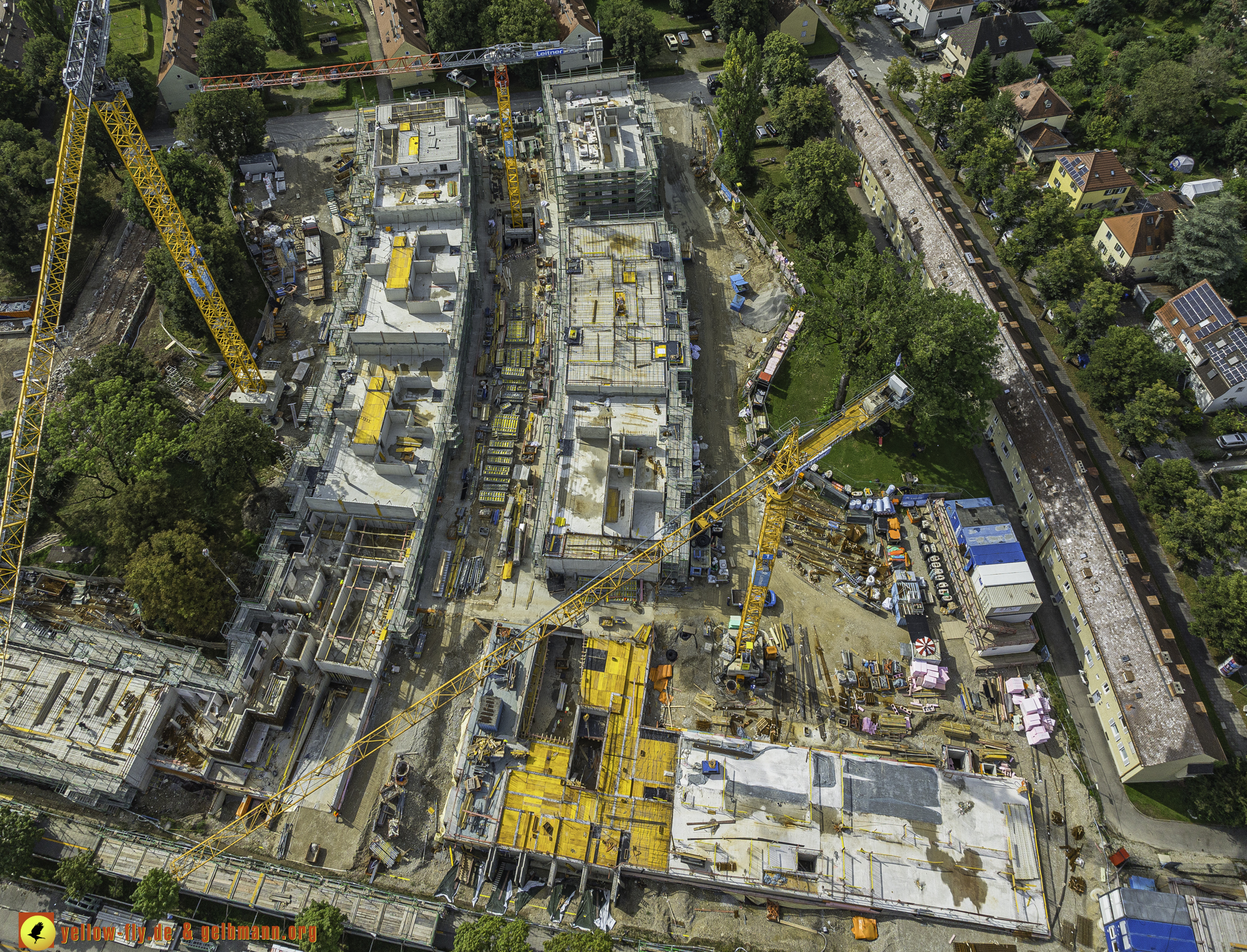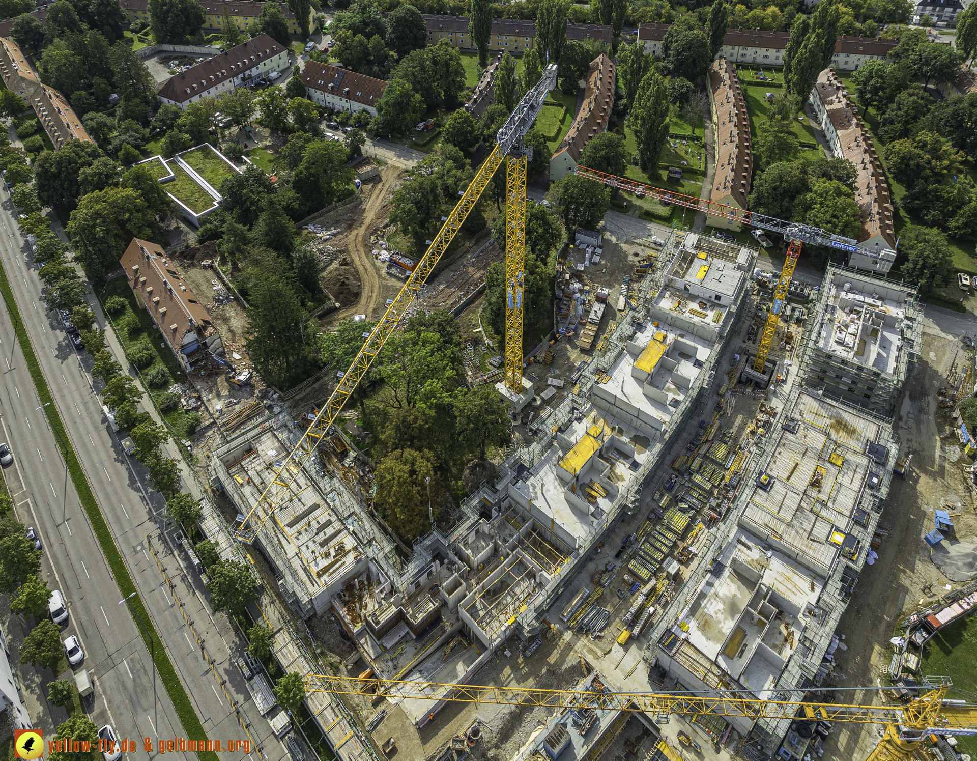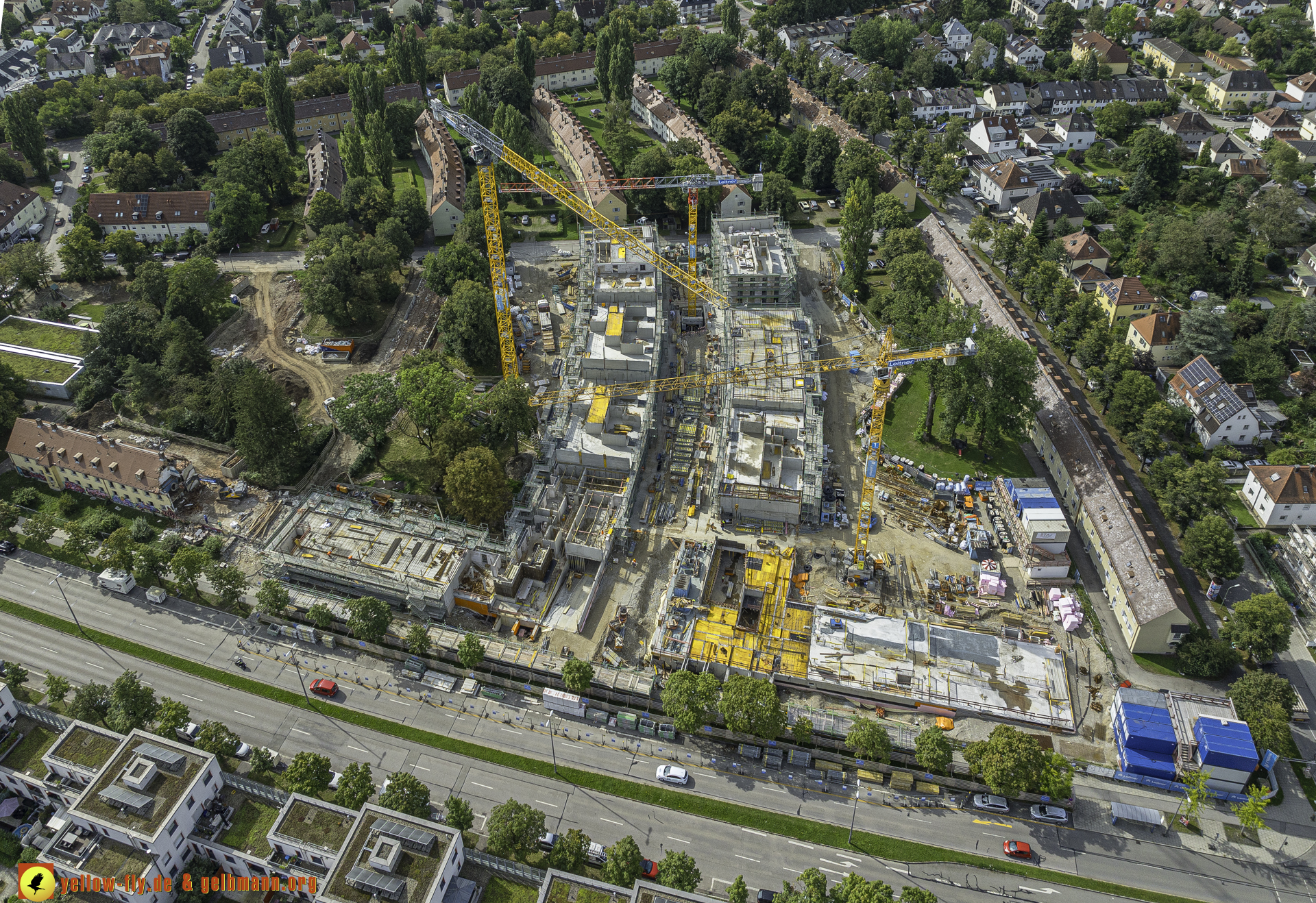 Die Großbaustelle in Berg am Laim ist schon weit fortgeschritten. Zum Teil sind an einigen Häusern schon drei Stockwerke zu sehen. Von der Bad Schachener-Straße aus hat man einen guten Blick auf die Baustelle. Den besten Blick bekommt man natürlich von oben. Mir der Drohne sind daher folgende Videosequenzen entstanden.