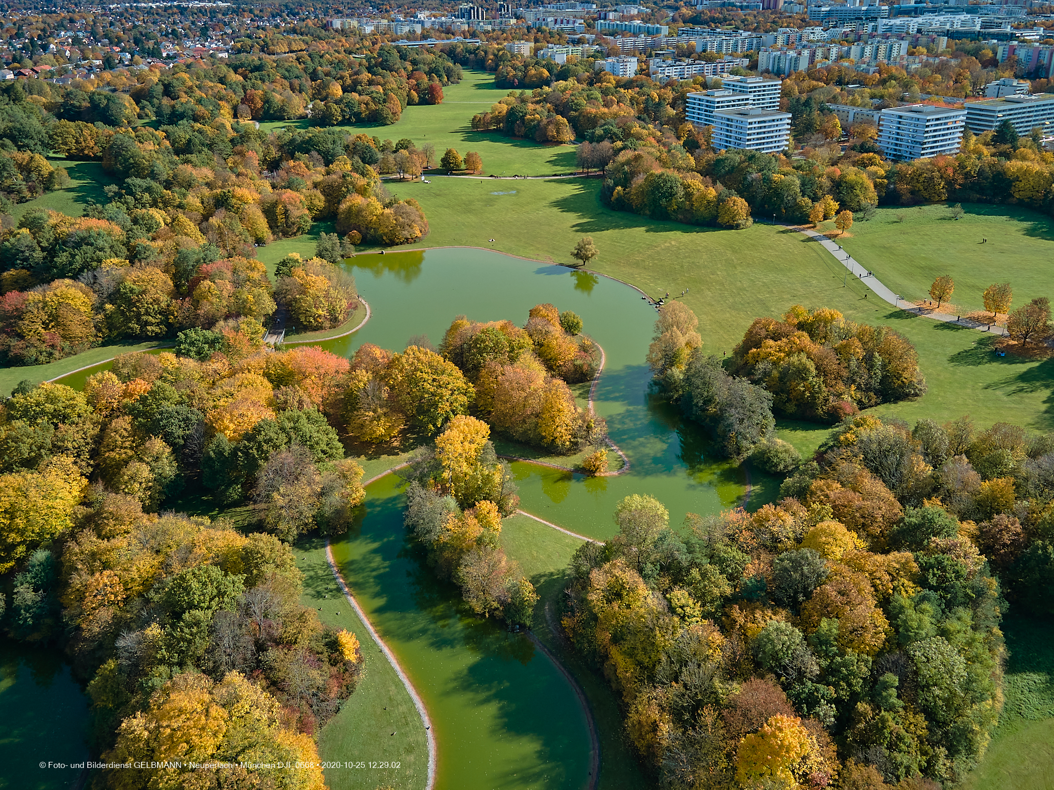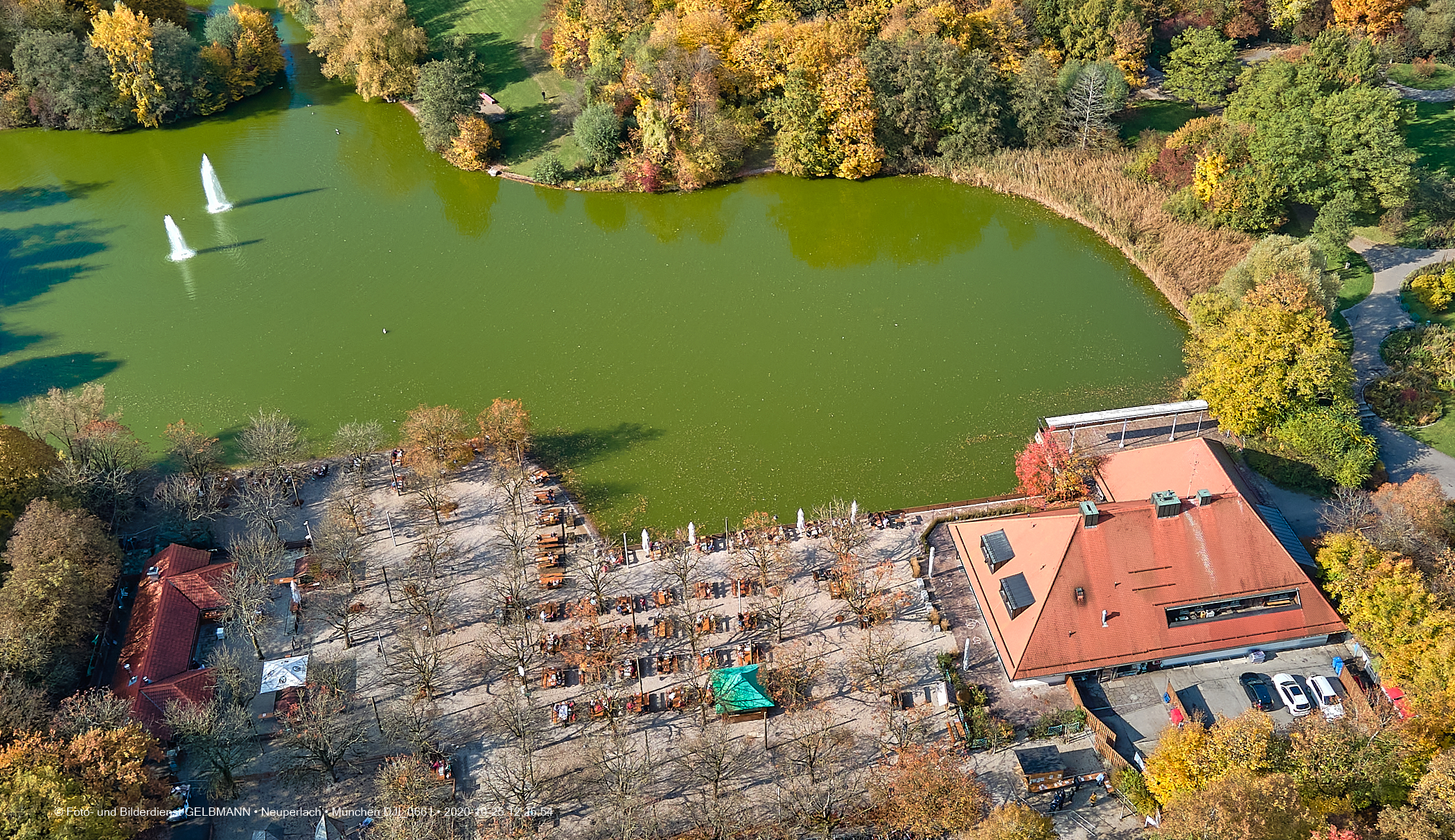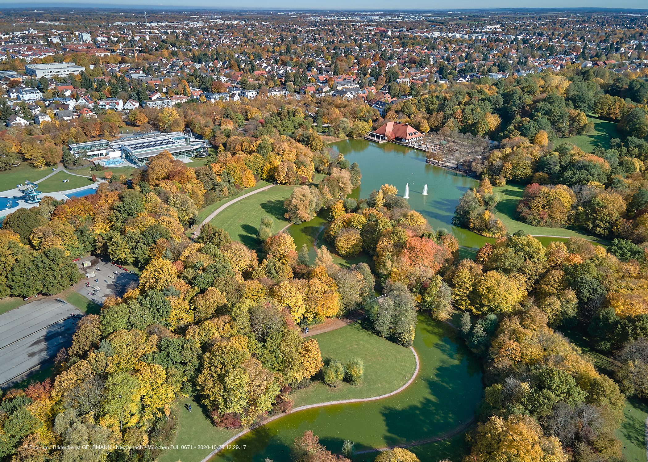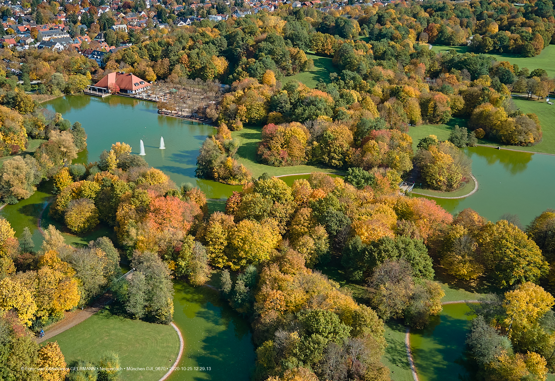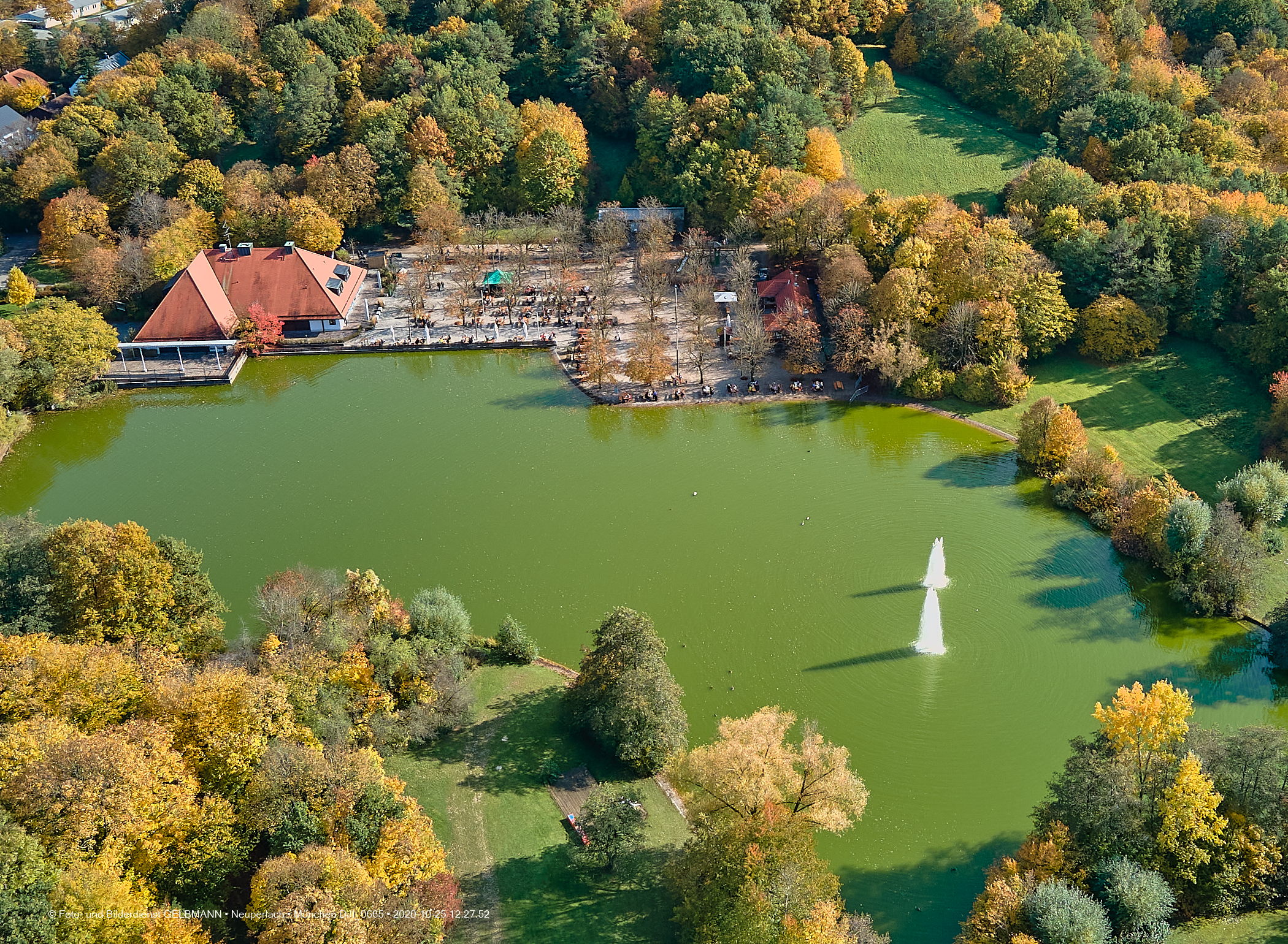 Der schöne Ostpark mit seinem Biergarten aus der Luft gesehen.