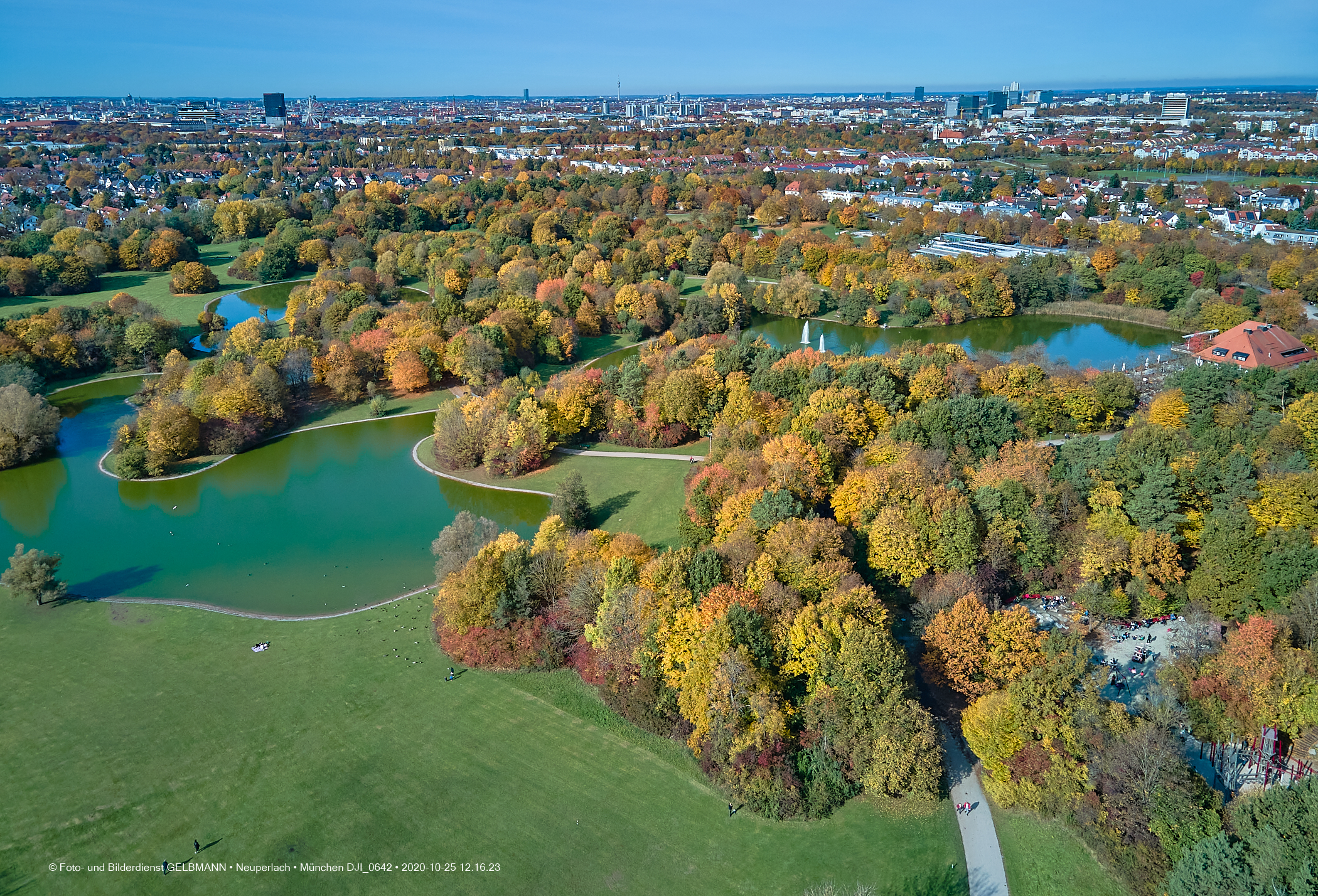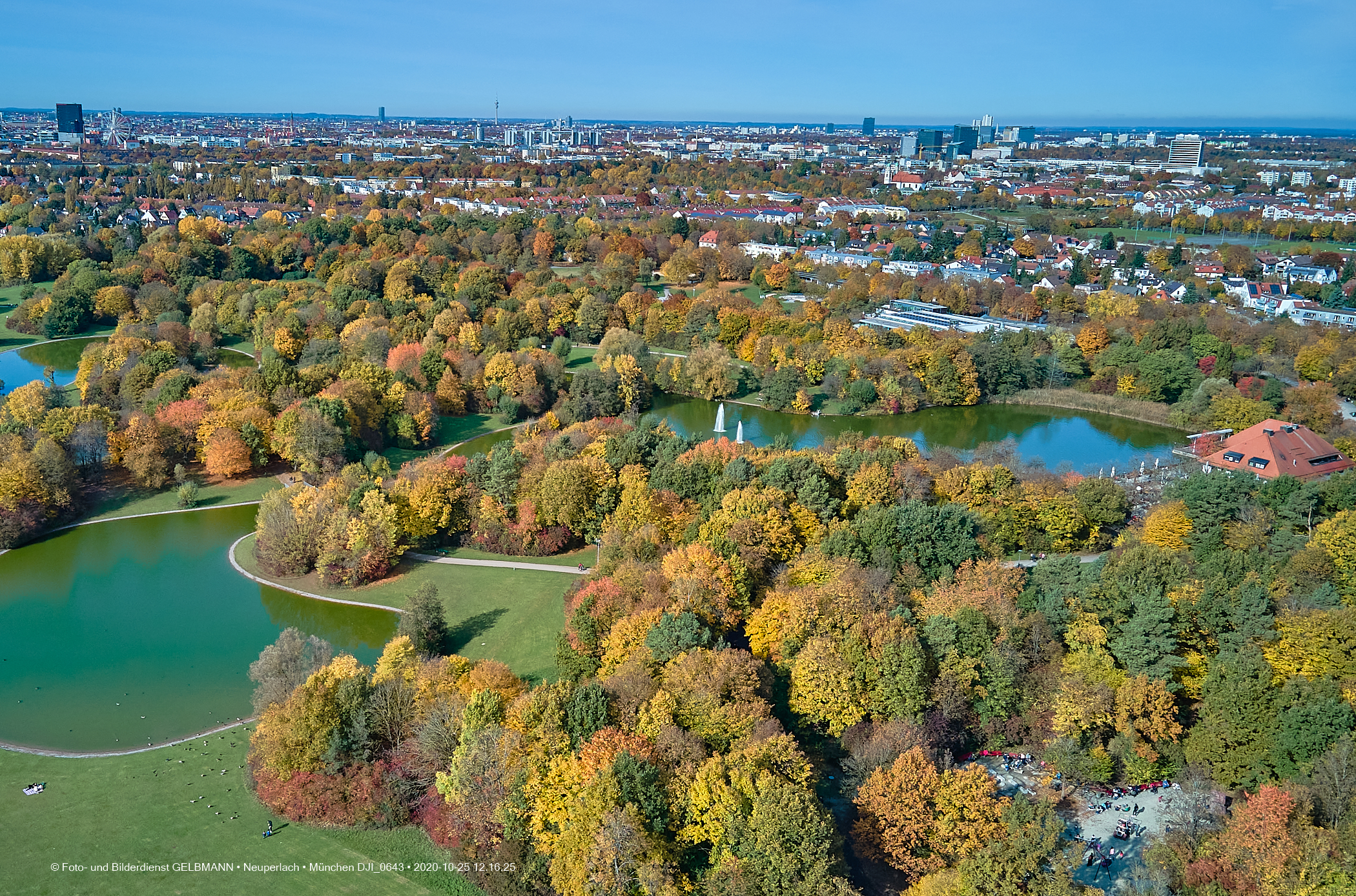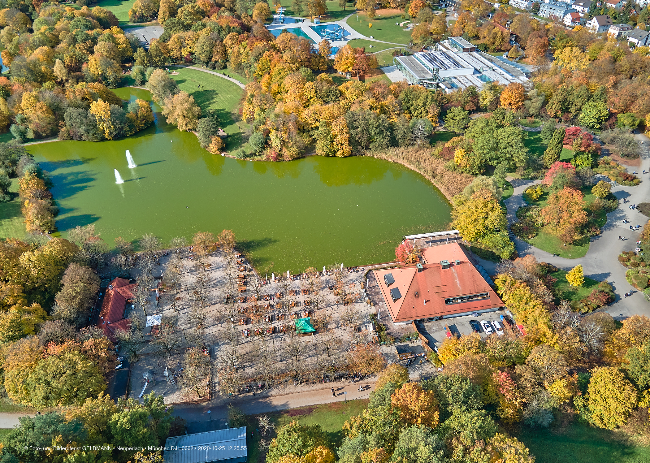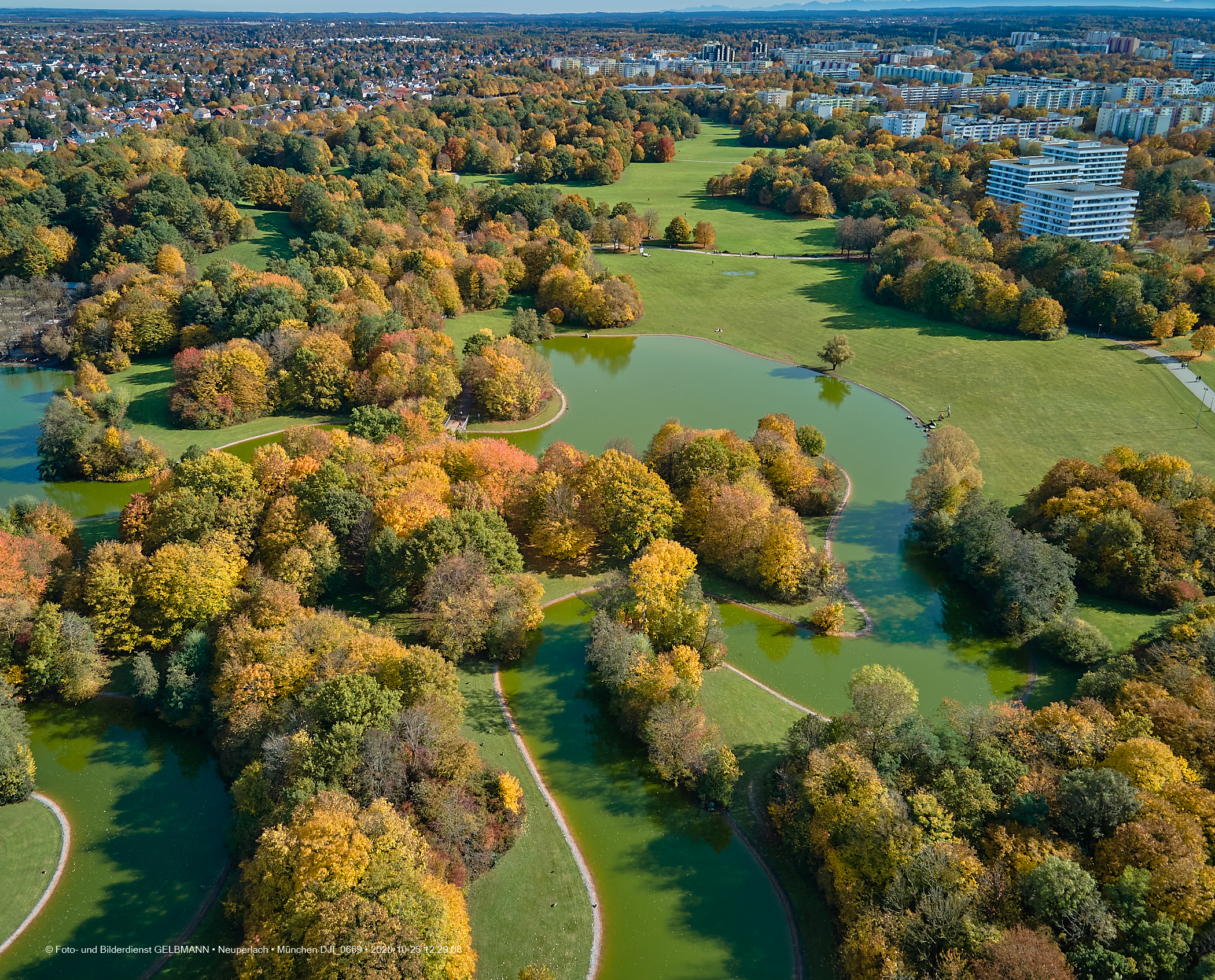 Der schöne Ostpark mit seinem Biergarten aus der Luft gesehen.