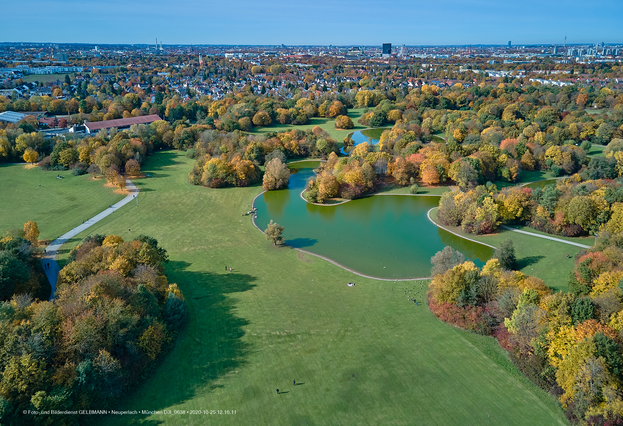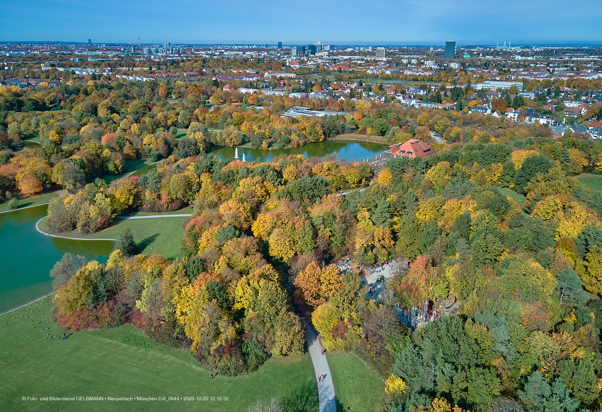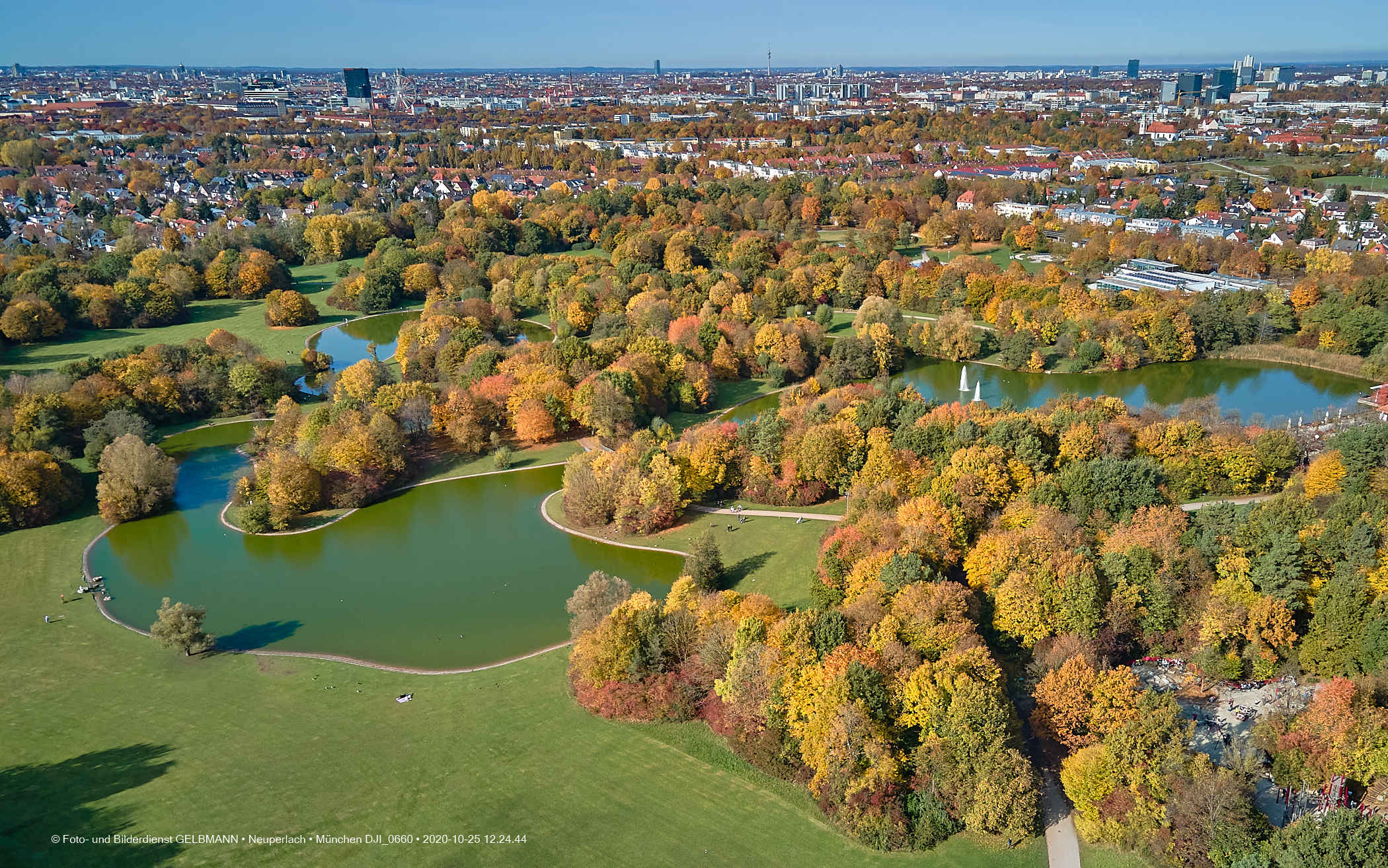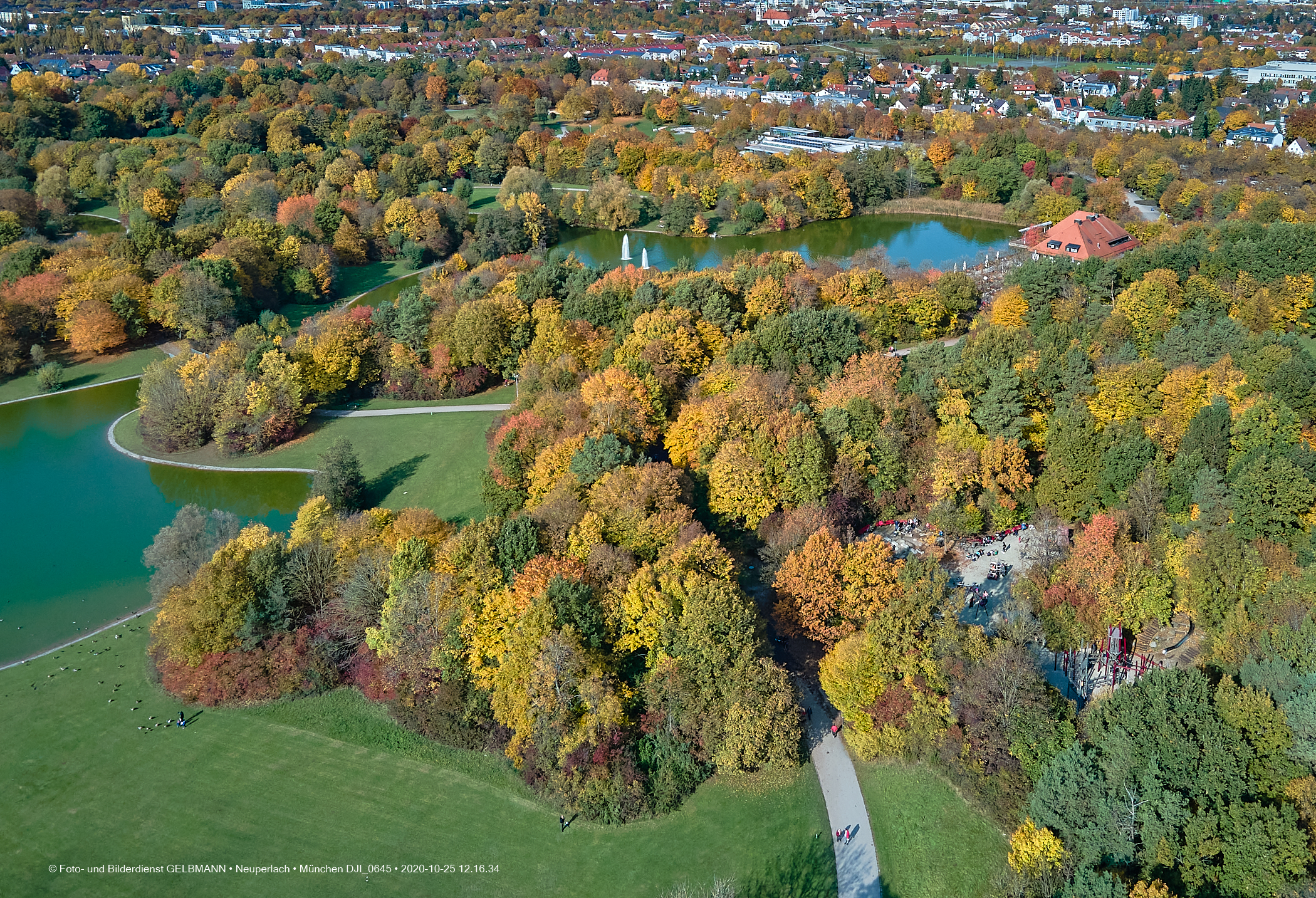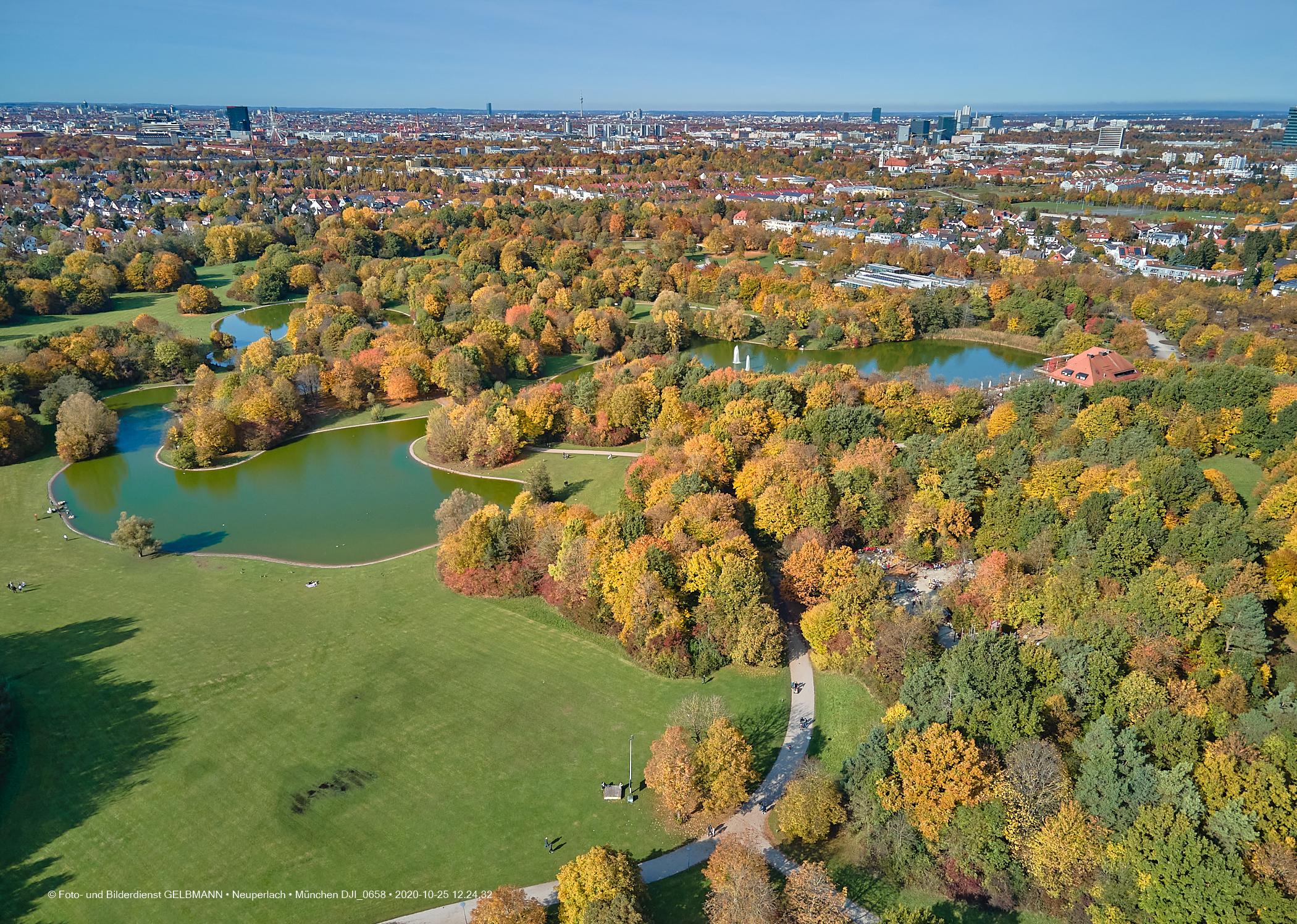 Der schöne Ostpark mit seinem Biergarten aus der Luft gesehen.
