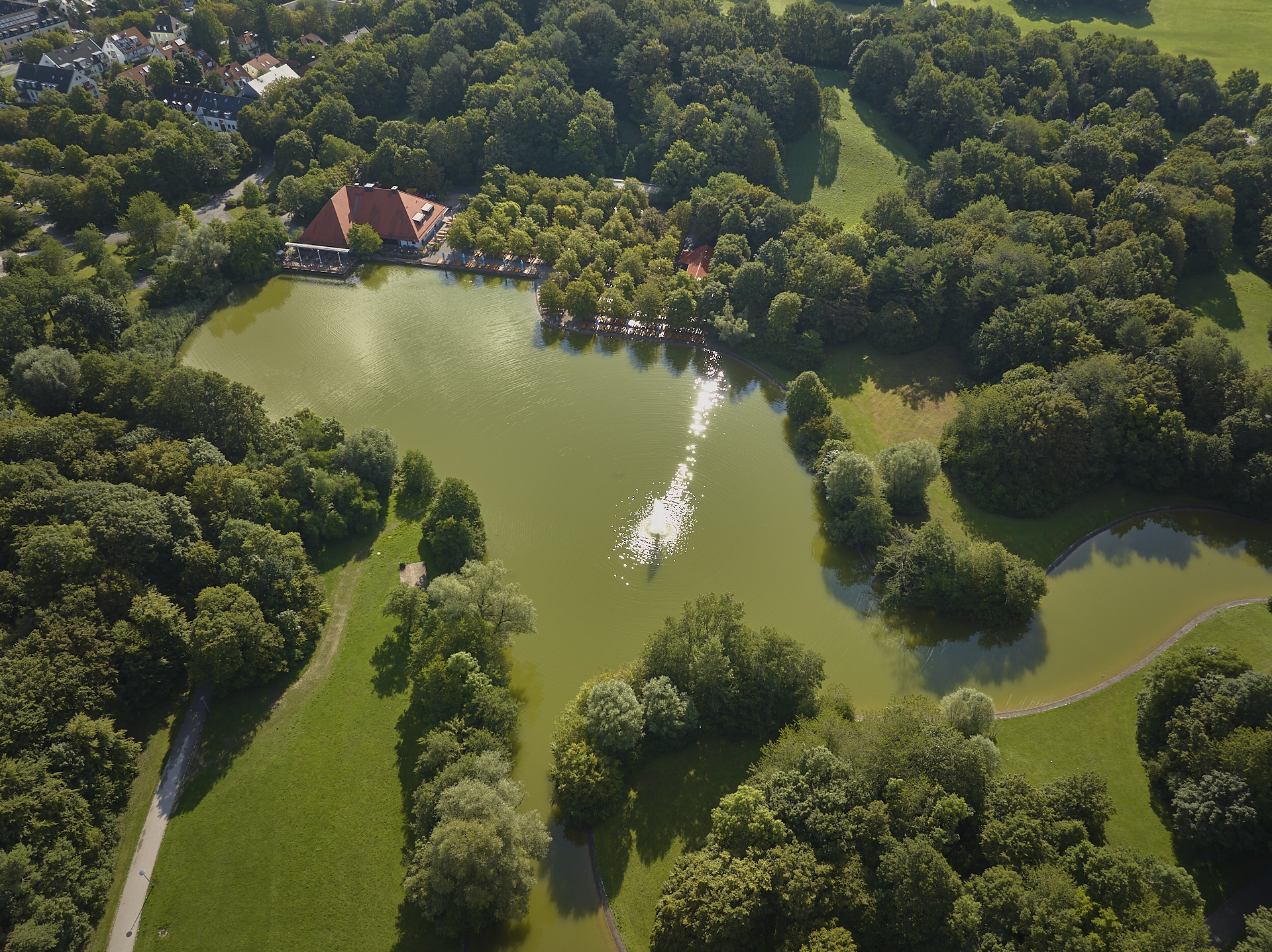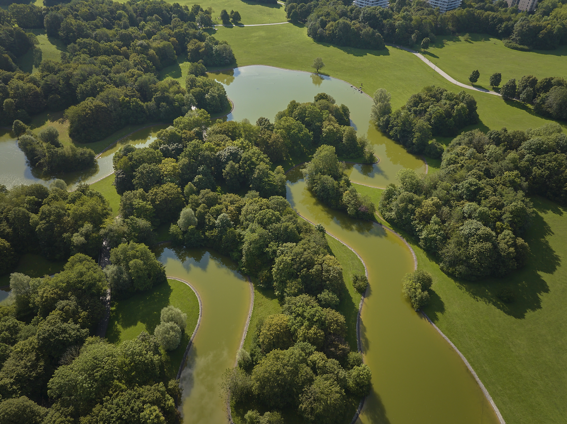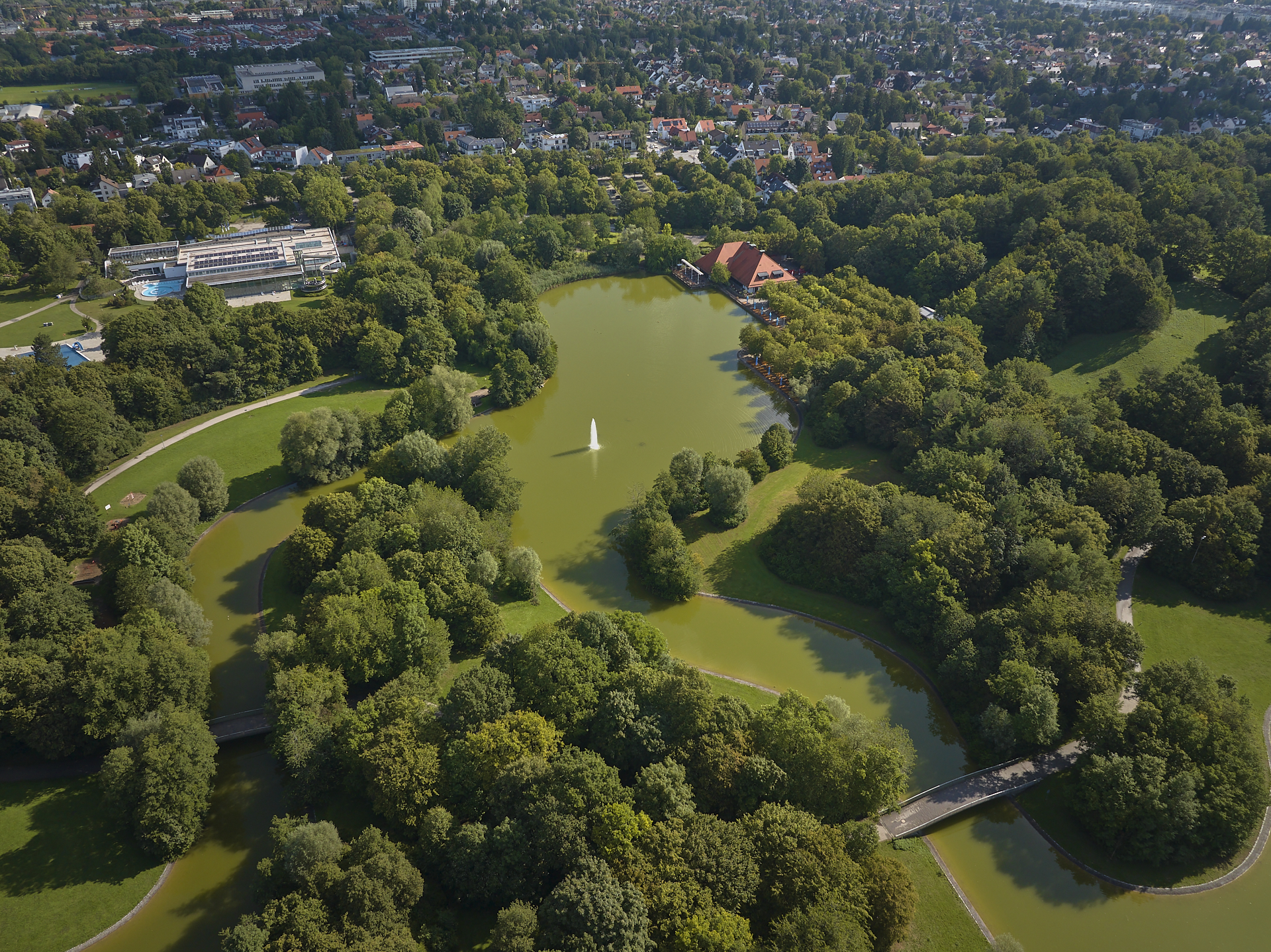 Der Ostpark in Neuperlach, hat nicht nur einen schönen Biergarten, sondern auch einen sehr schönen See, der sich mit vielen Bögen und Krümmungen,