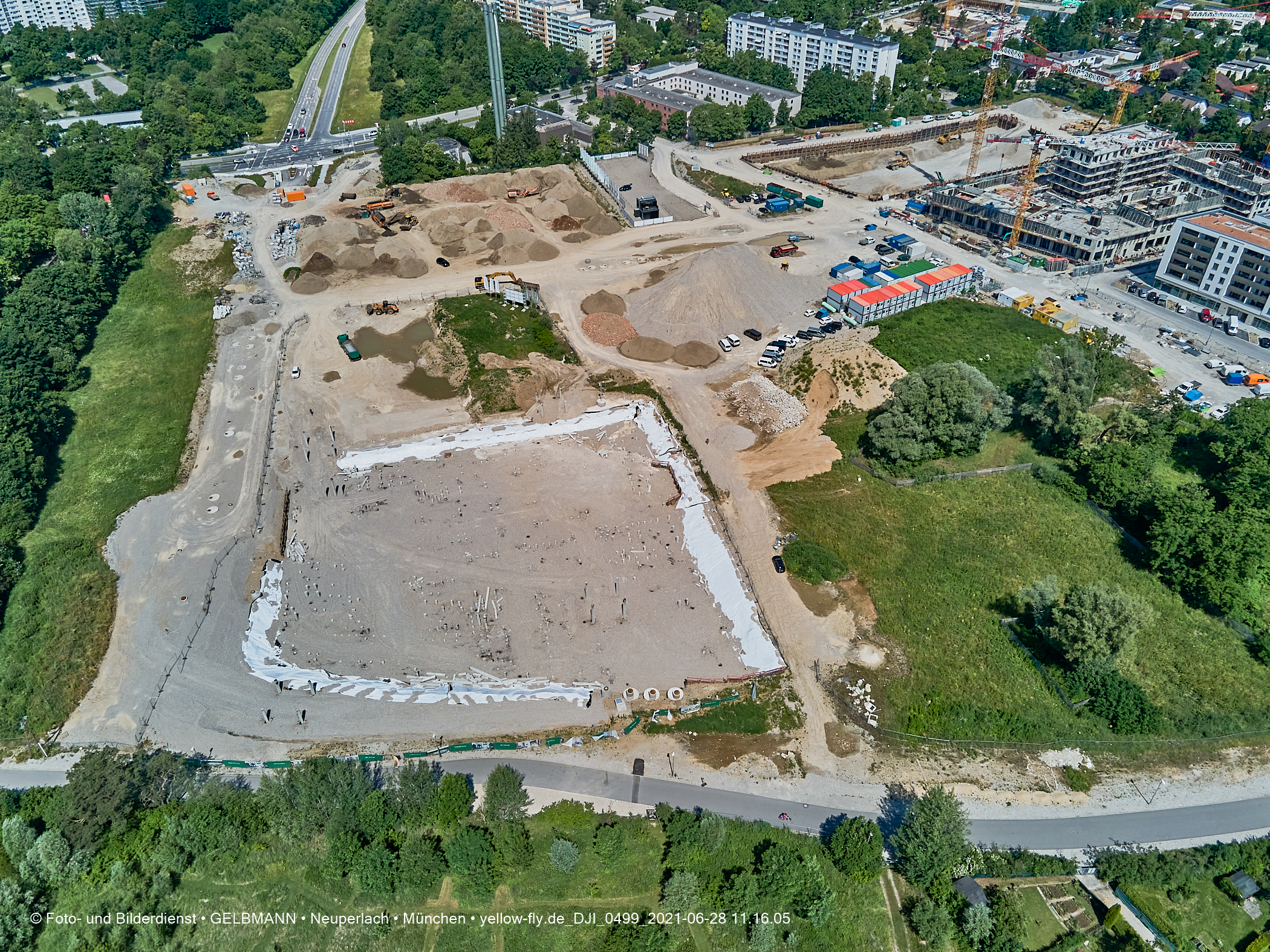 das laute Hämmern, mit dem die Pfähle für die Pfahlgründung indie Erde getrieben werden. Wie schon berichtet,
