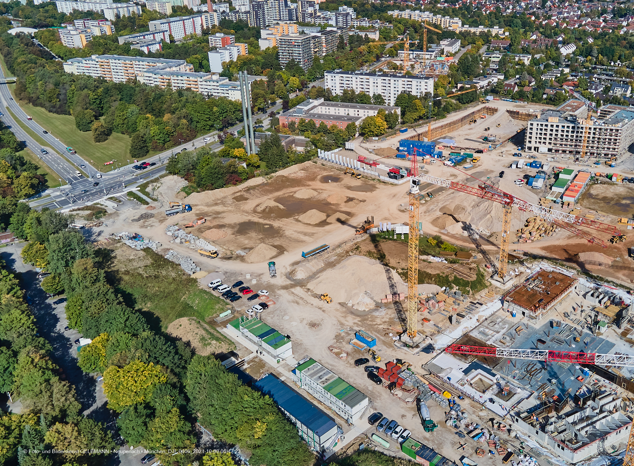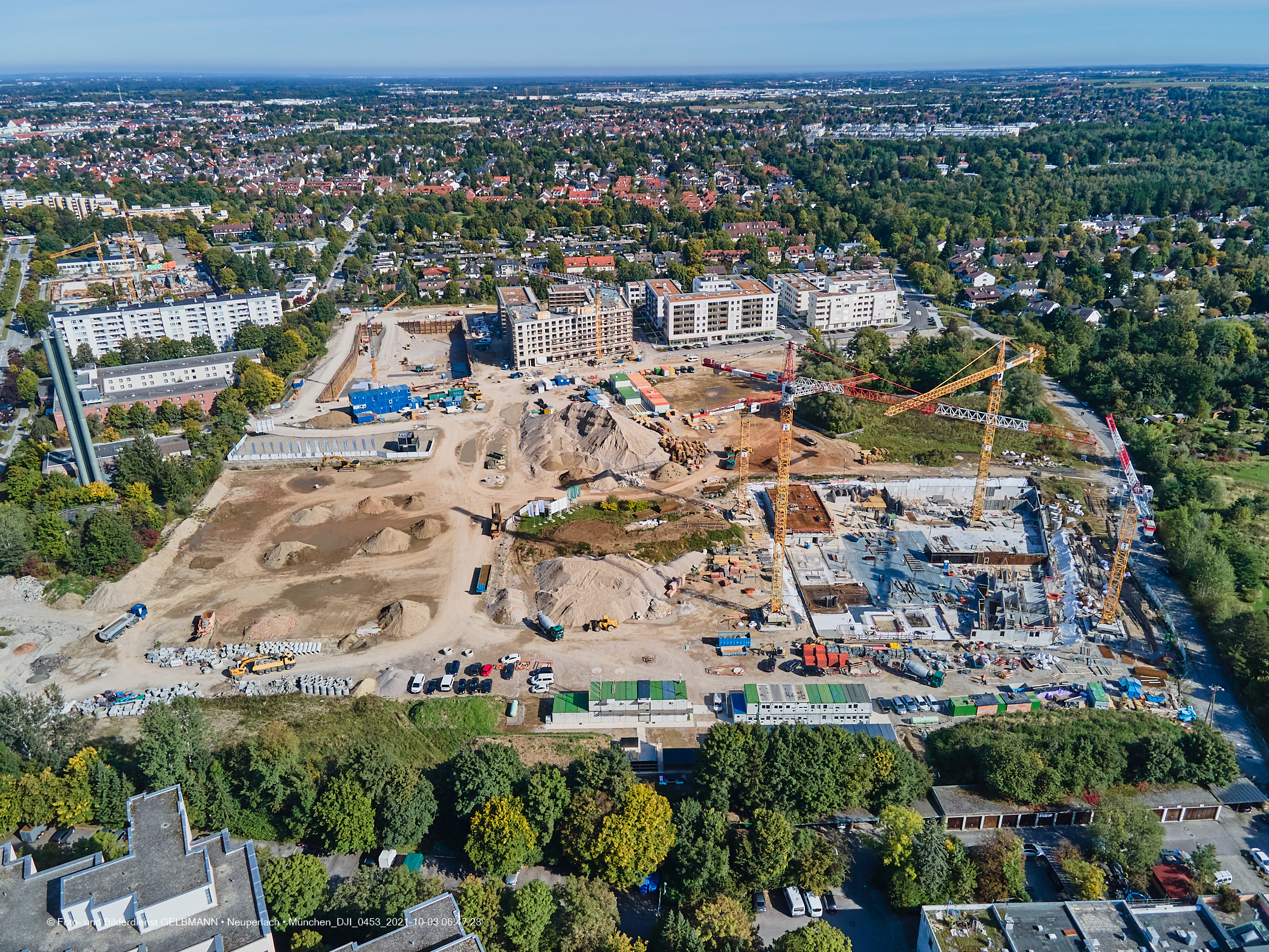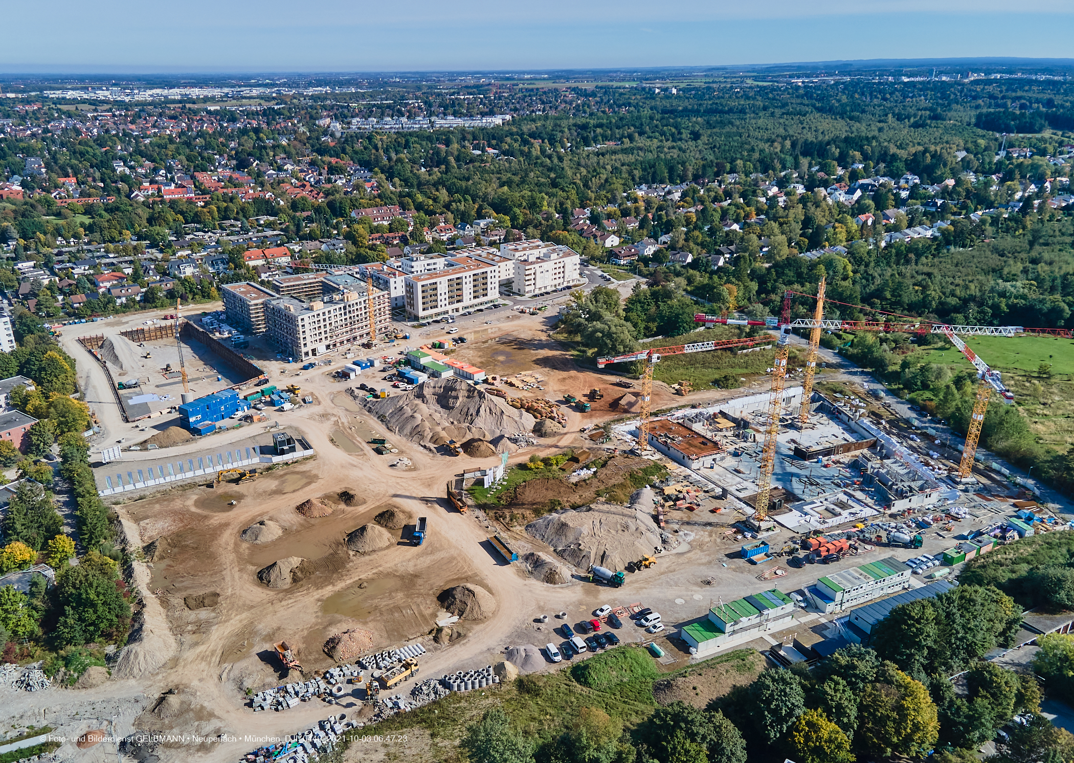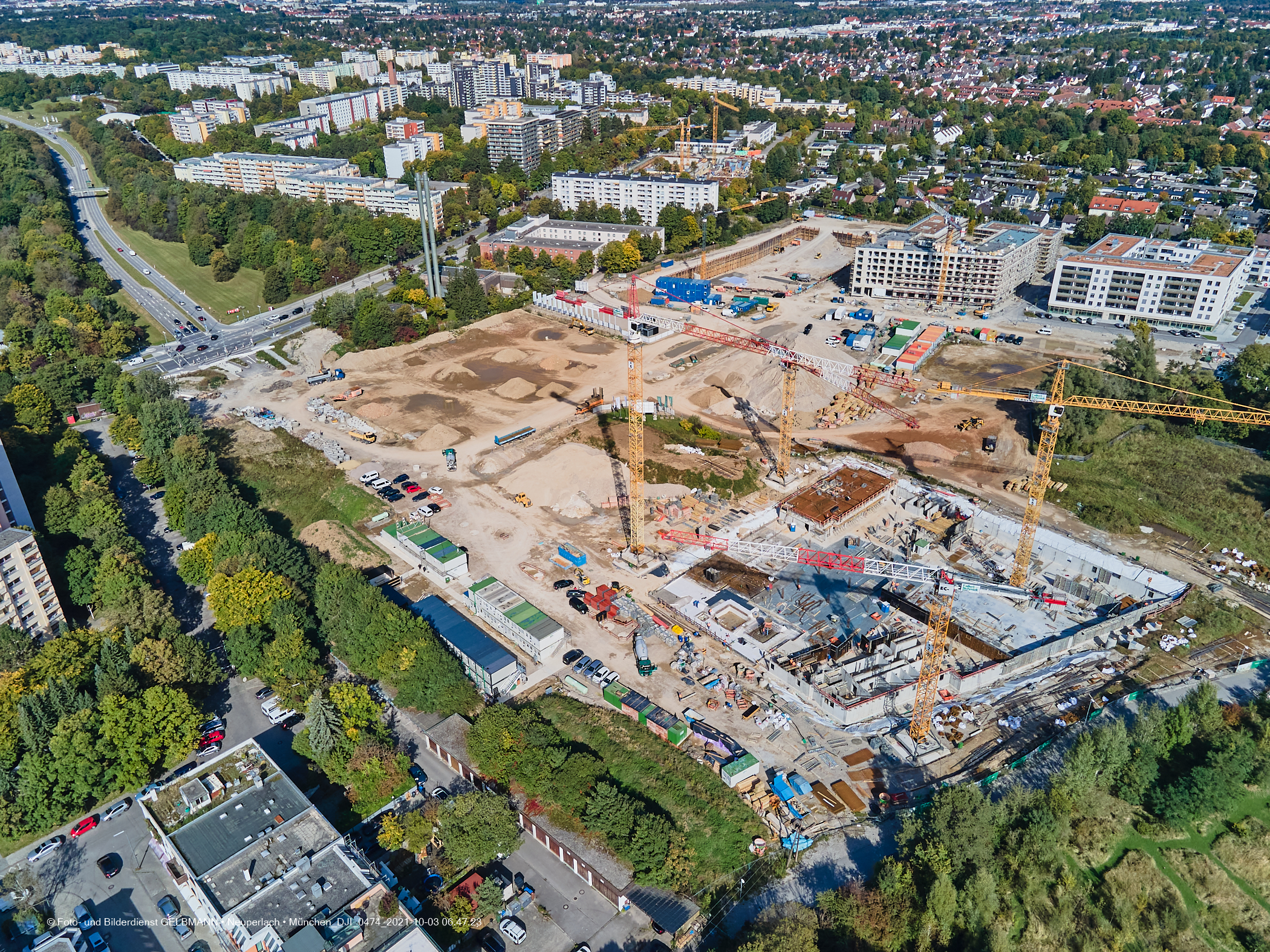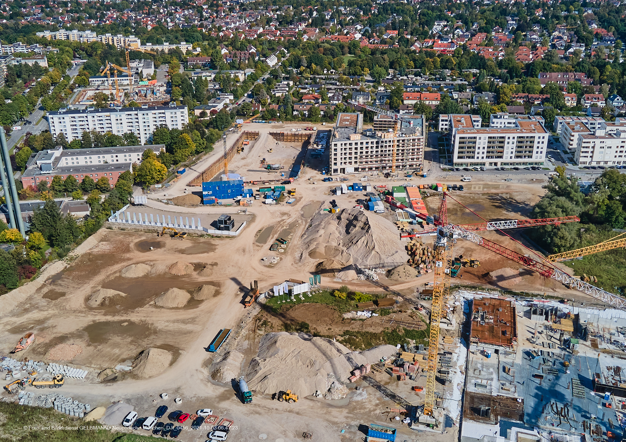 Auf der Baustelle Pandionverde die ersten Wände hochgezogen. So langsam erkennt man, was da entstehen soll. An der Baugrube im Alexisquartier, „Das Duett”, wurde vorerst ein kleiner Kran aufgestellt, der in die Baugrube das notwendie Material gebracht werden kann. Die beiden großen Kräne folgen noch. .