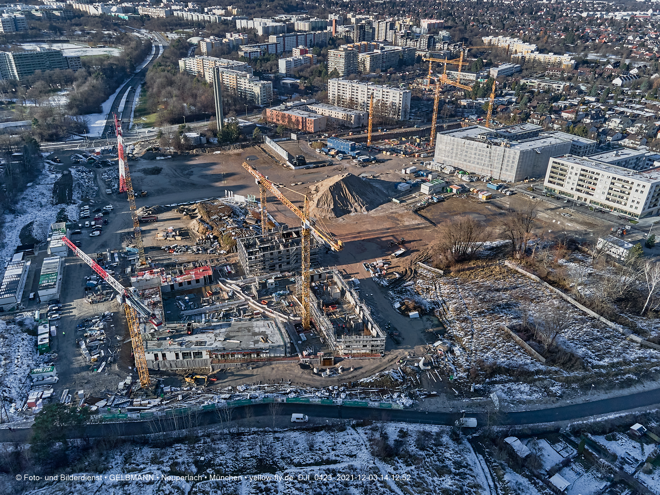 In unwahrscheinlicher Schnelligkeit entstehen auf dem ehemaligen Piederstorfer-Gelände in Neuperlach, neue Wohnungen. Besonders auf der Baustelle Pandionverde ist dies zu beobachten. Nach Tagen mit Schnee, Regen und viel Wind, war heute ein Tag, wieder mit dem Copter in die Luft zu gehen. Nur von obenaus, kann man den Baufortschritt am besten erkennen und liefert nicht Tag täglich, immer wieder hunderte von langweiligen und nichtssagende Suppenkasper-Fotos, die niemanden interessieren (Zitat: Hanns Edel).