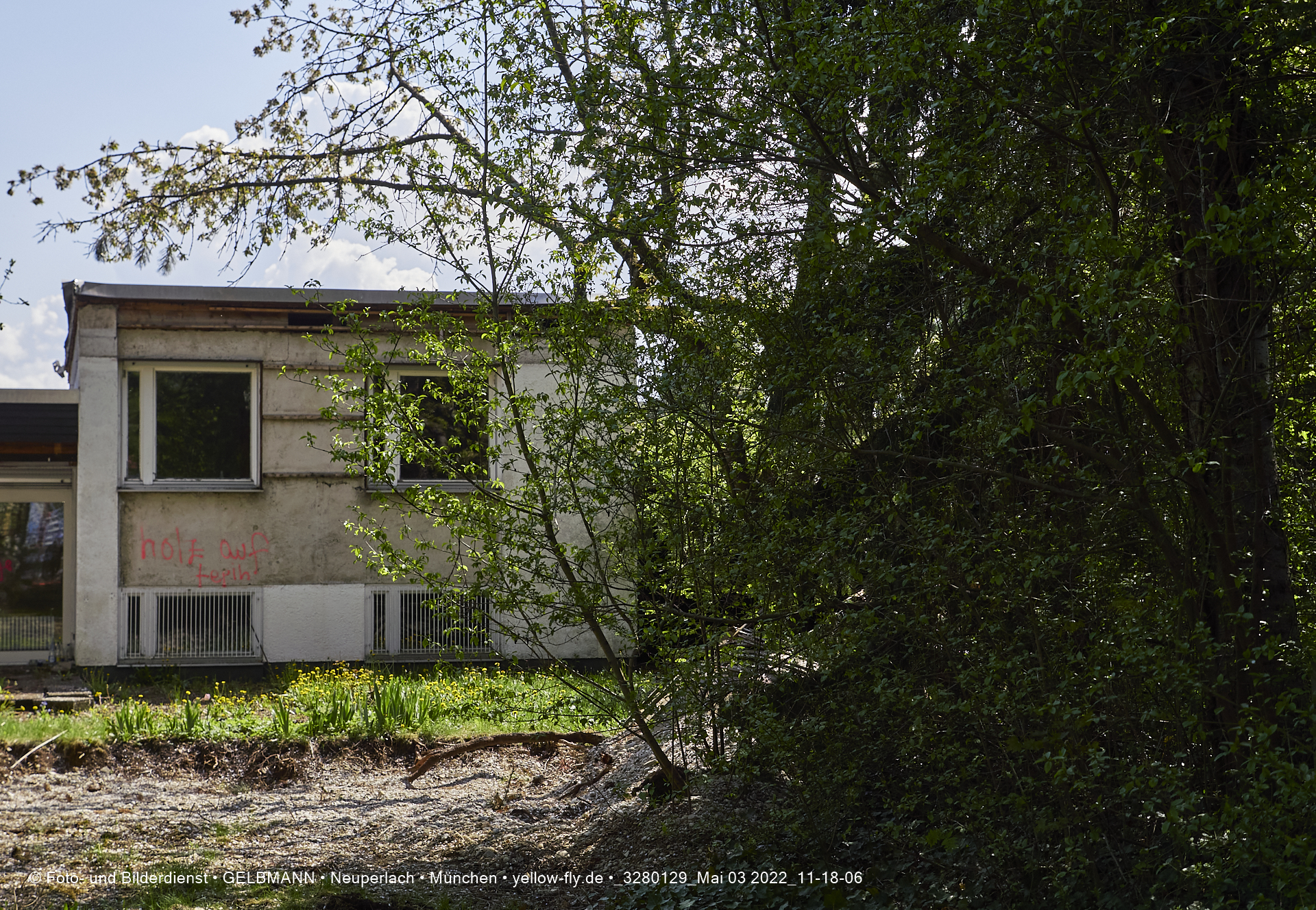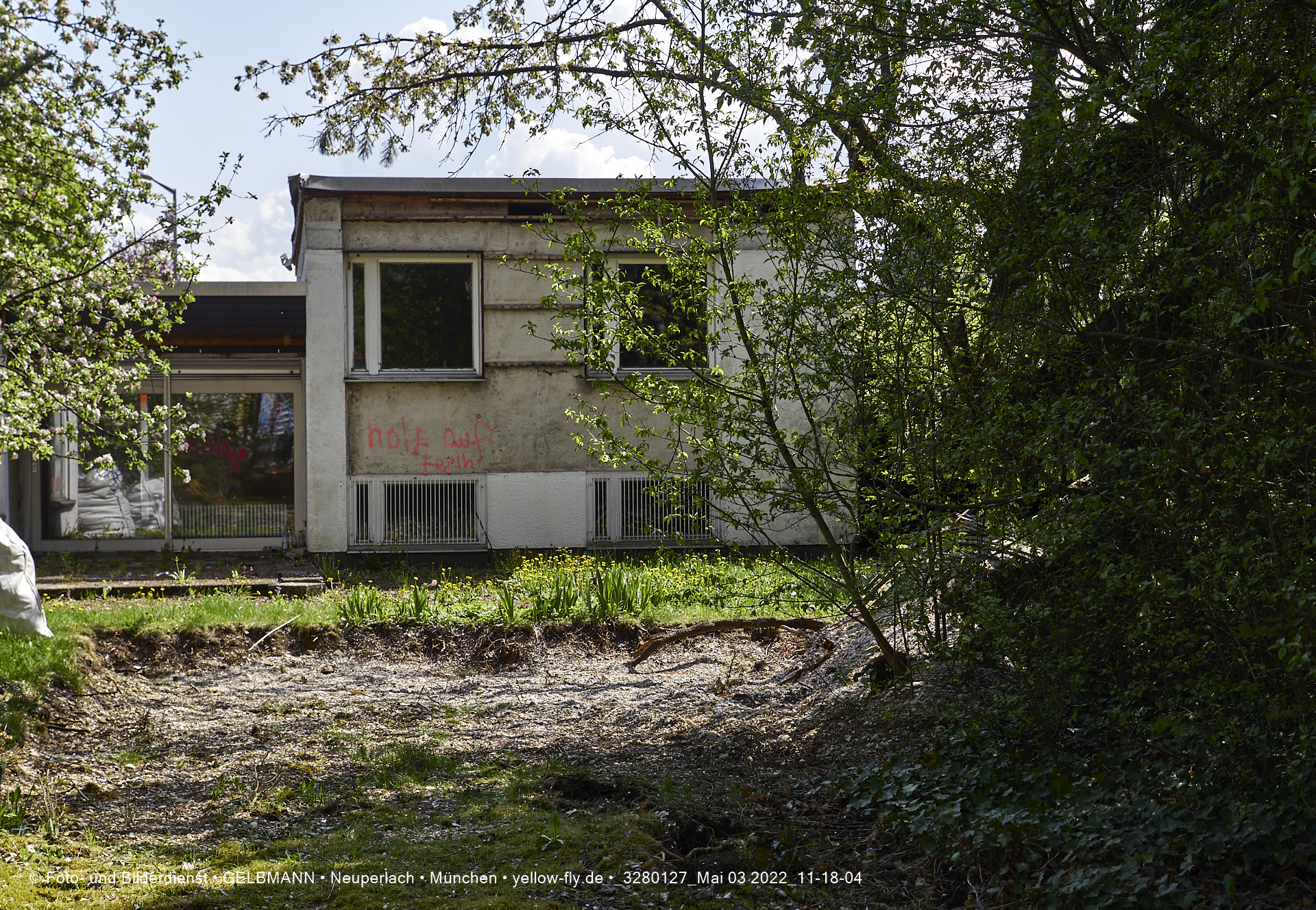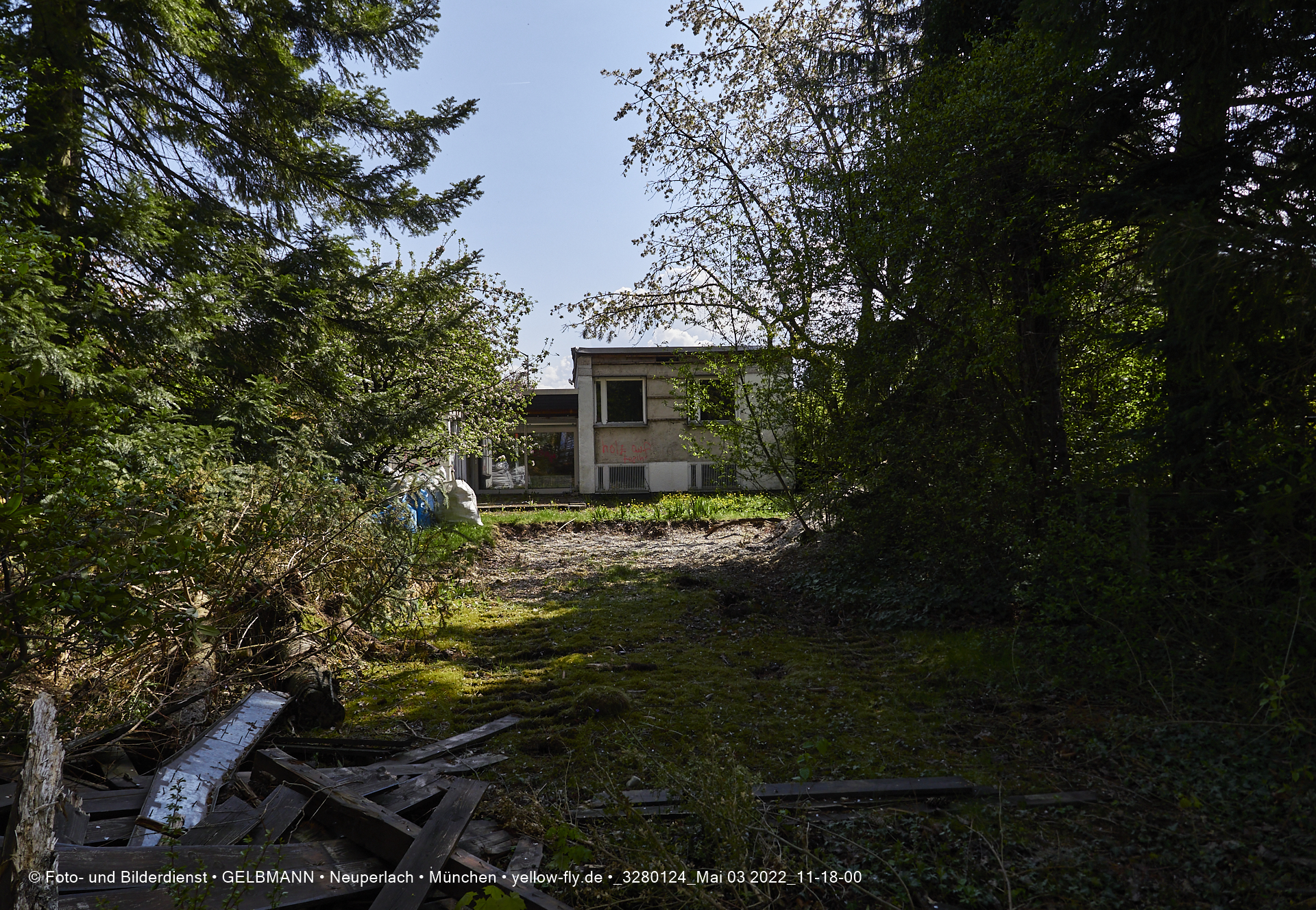 Vo der Rückseite her, ist die alte verfaulte Villa HUGO 13 noch gut zu sehen. Bald werden auch hier ein Bagger die Wände einreisen.
