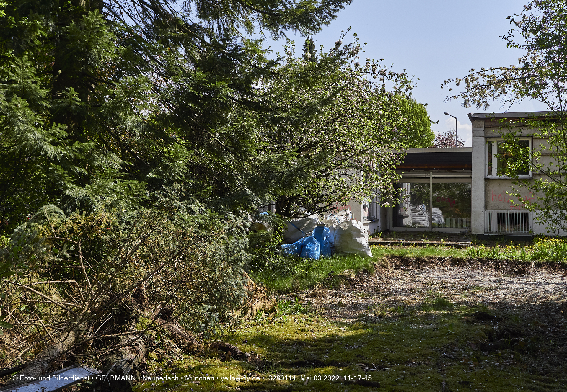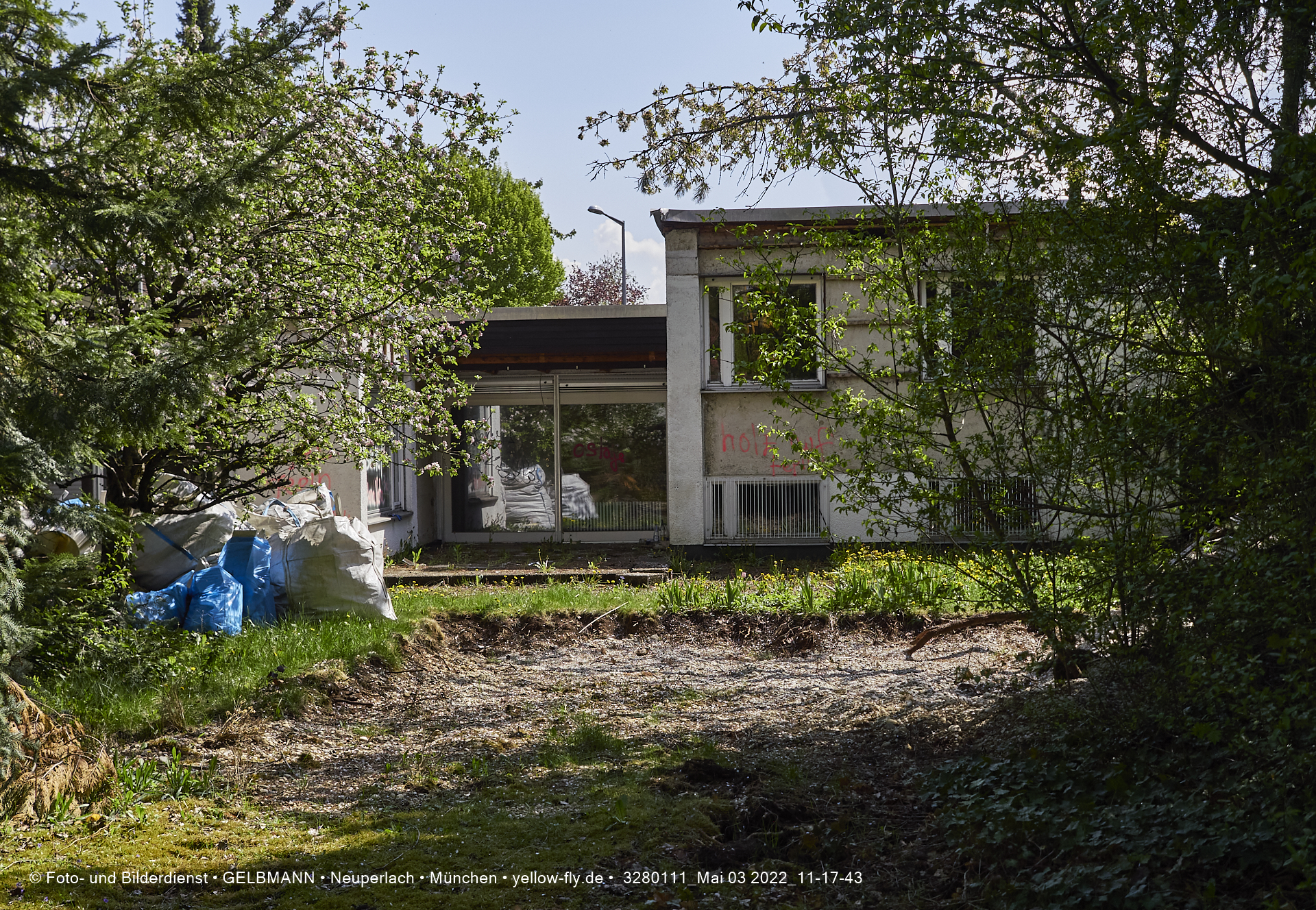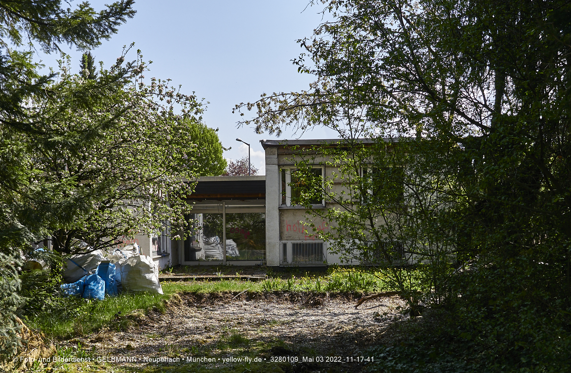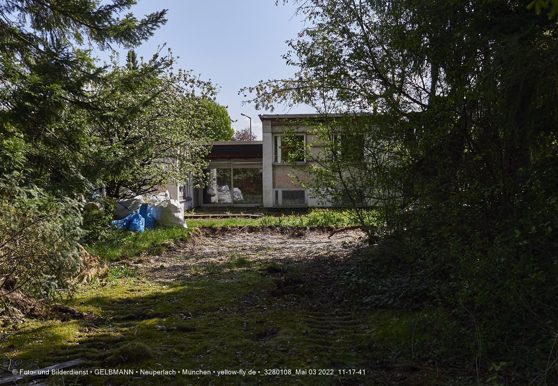 Vo der Rückseite her, ist die alte verfaulte Villa HUGO 13 noch gut zu sehen. Bald werden auch hier ein Bagger die Wände einreisen.